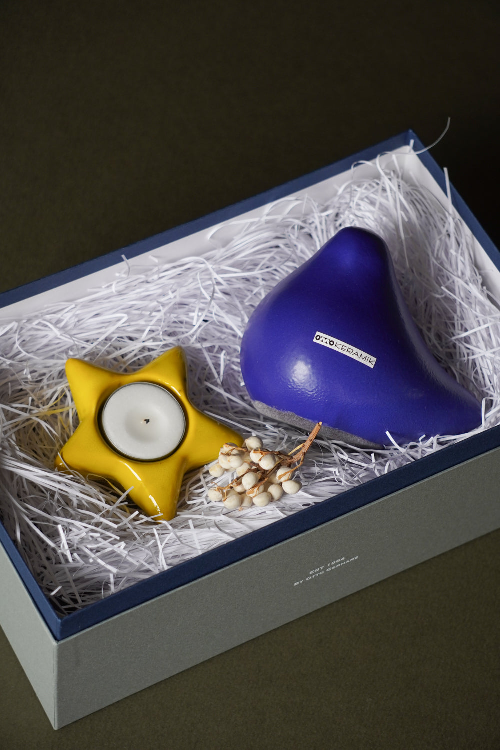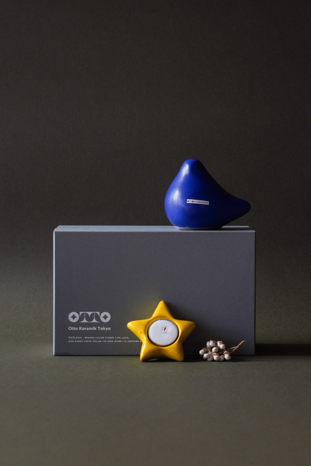 青と黄色が夜空に瞬く星のように調和する、美しいコントラスト。