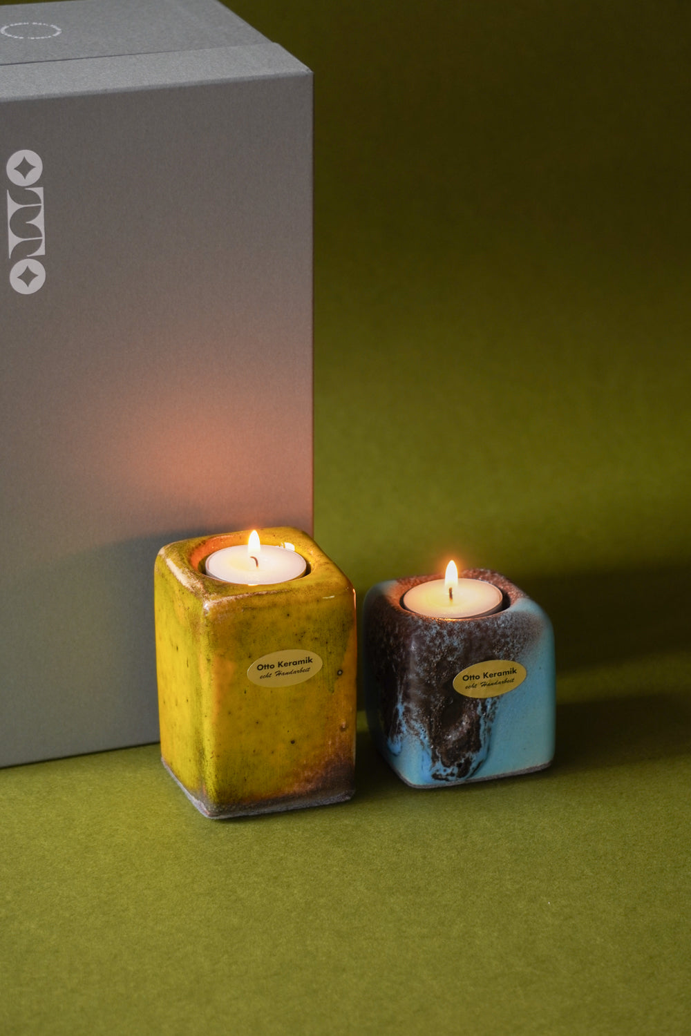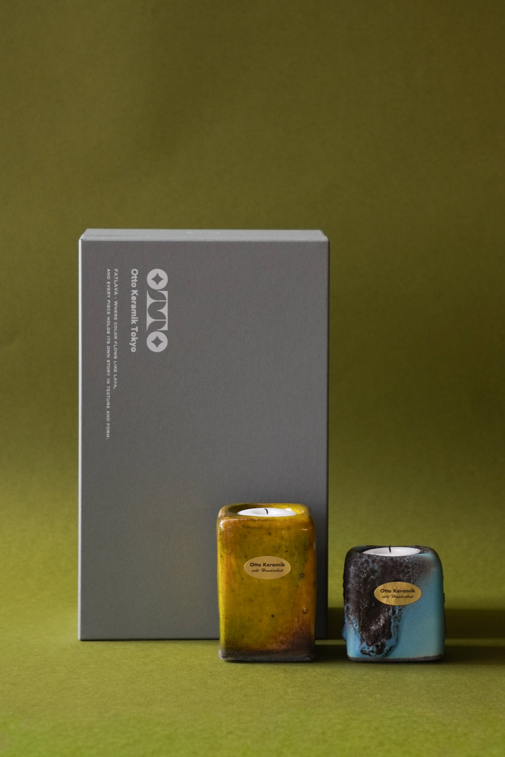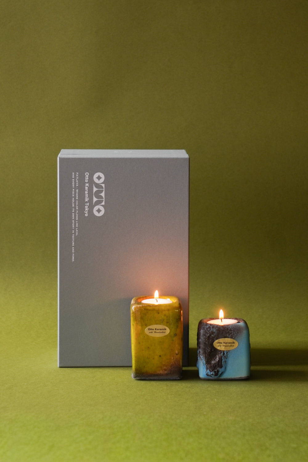 鮮やかな水色とグリーンが、光を受けてきらめく湖面のように華やぐキャンドルホルダーセット。