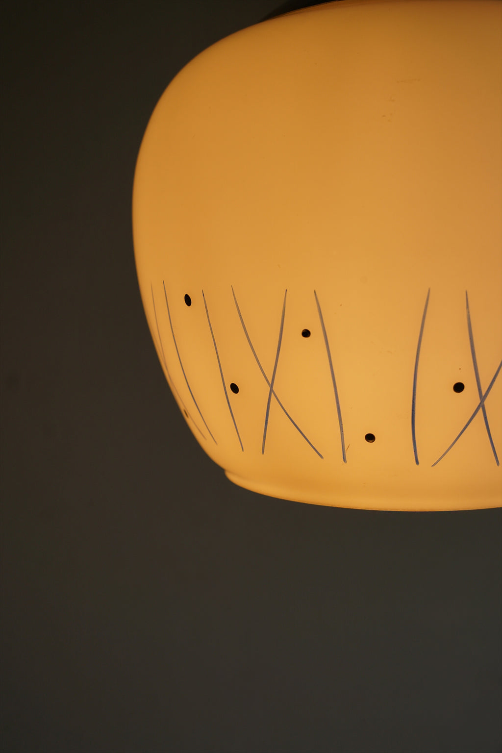 シェード全体に描かれた繊細な模様が、点灯すると温かく浮かび上がり、お部屋に柔らかな表情を与えます。ただ空間を照らすだけでなく、見るたびに心和むような、特別な存在となってくれるでしょう。