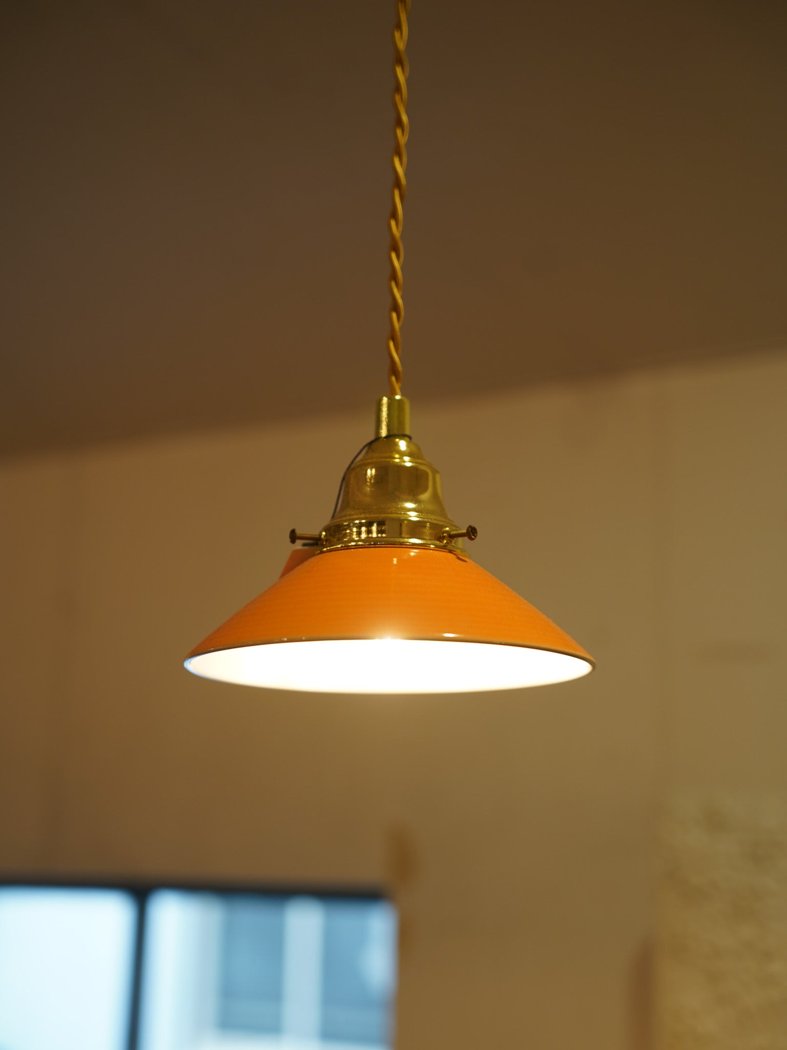 温かみのあるオレンジ色のホーロー(琺瑯)シェードが魅力の、デンマークの老舗メーカーSøholm(スーホルム)が手掛けたヴィンテージペンダントランプです。
