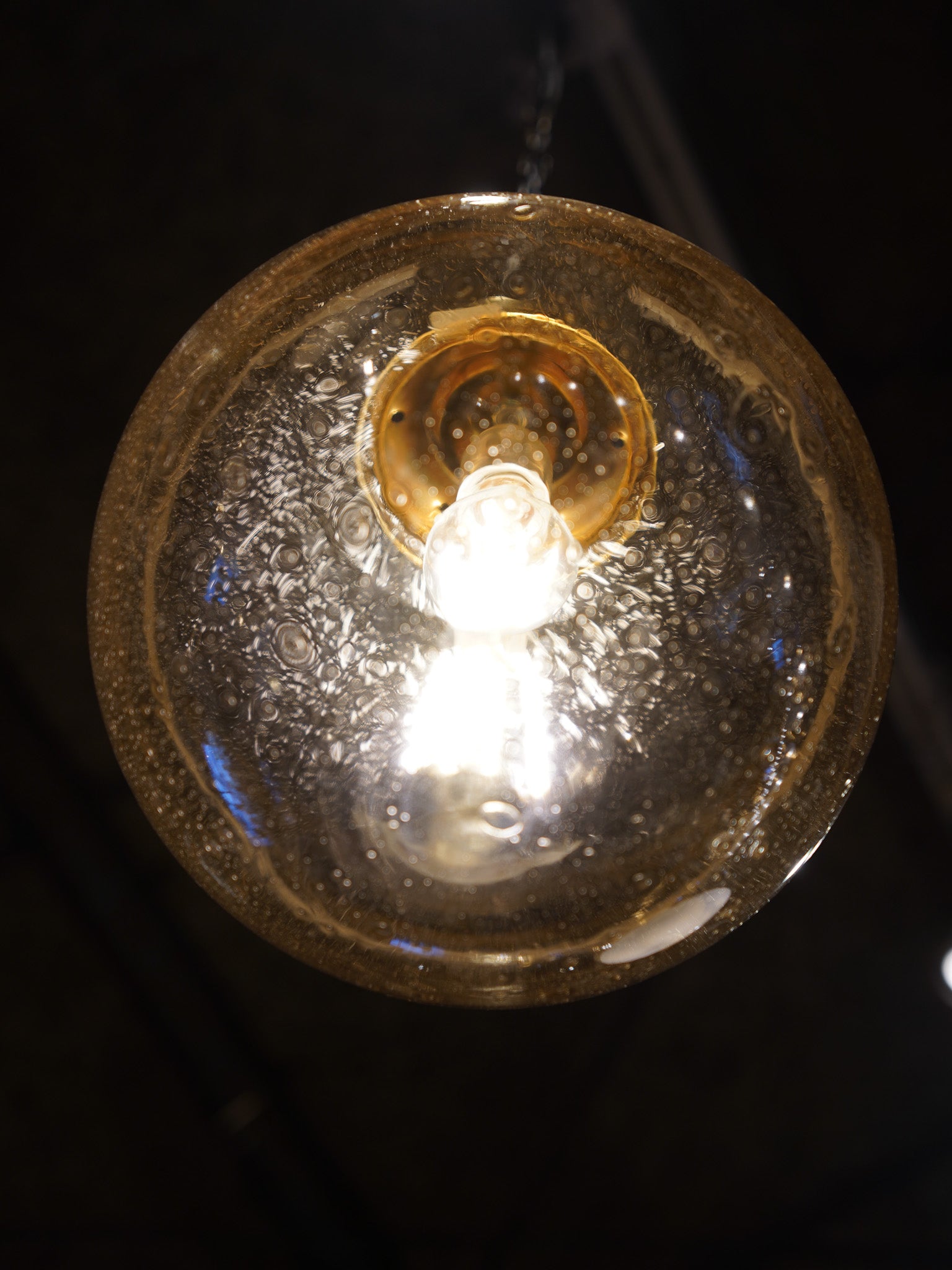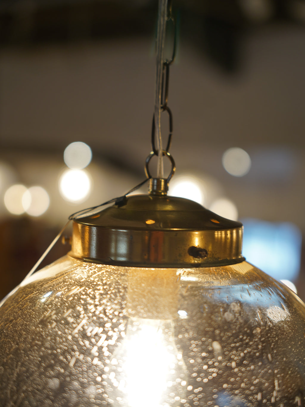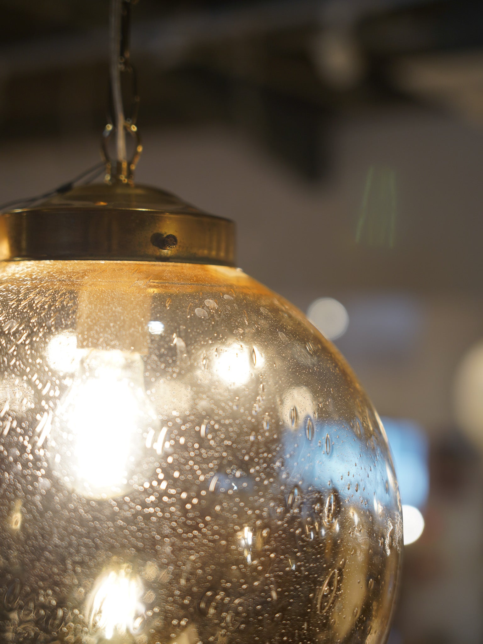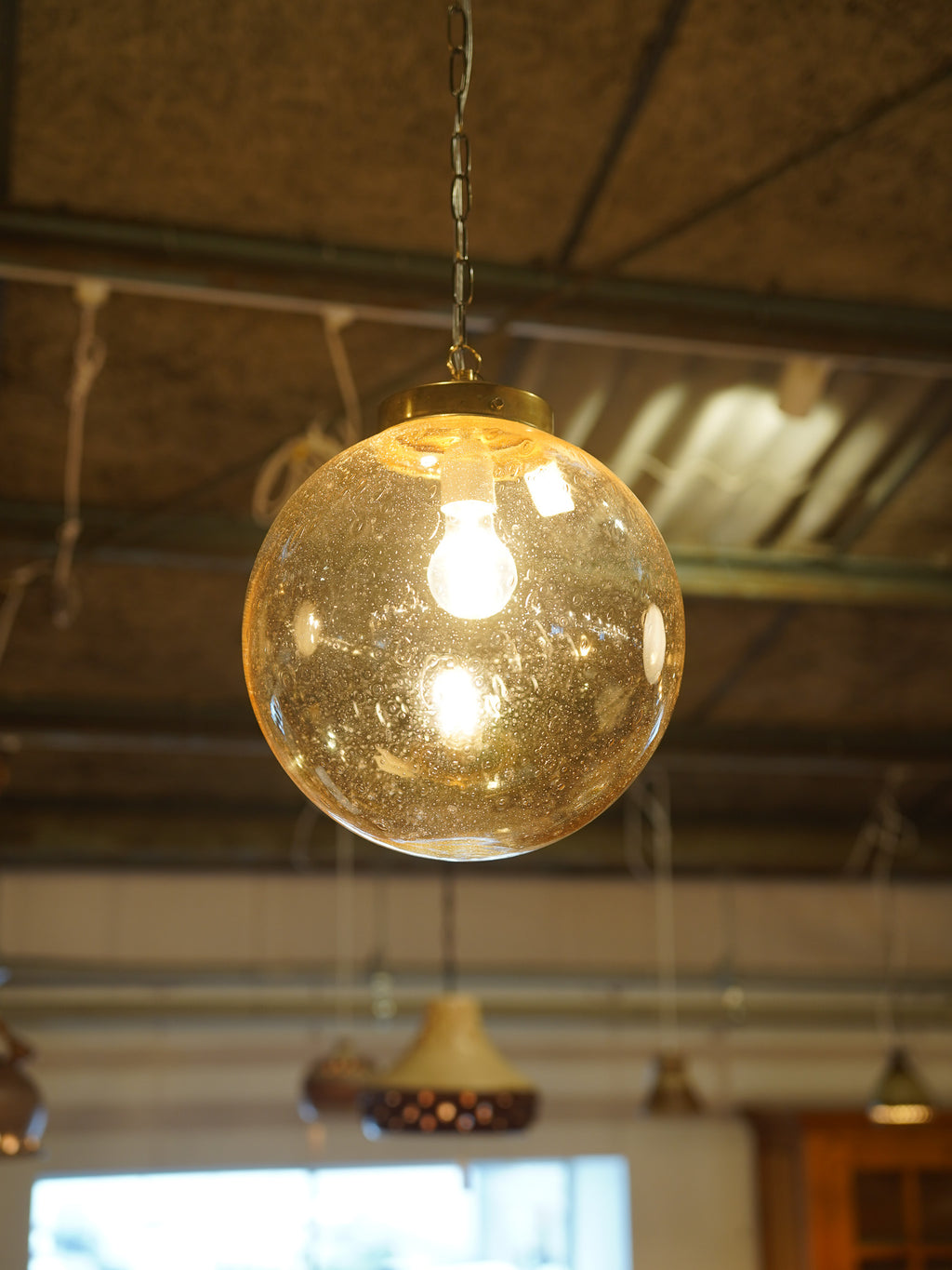 ガラスの揺らぎと気泡がノスタルジックな雰囲気を醸し出す、琥珀色のグローブペンダントライトです。