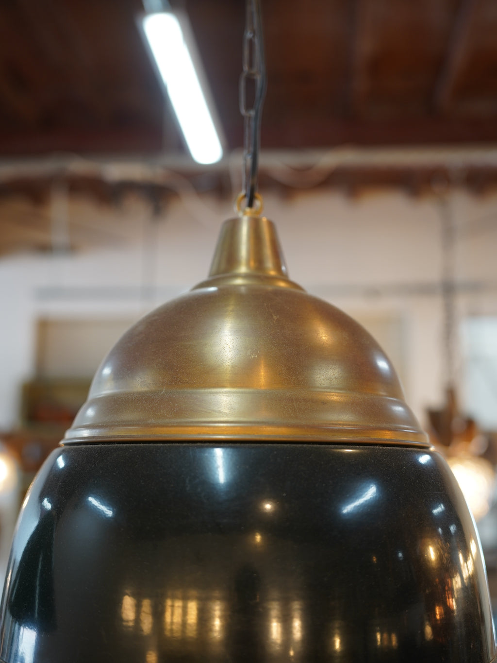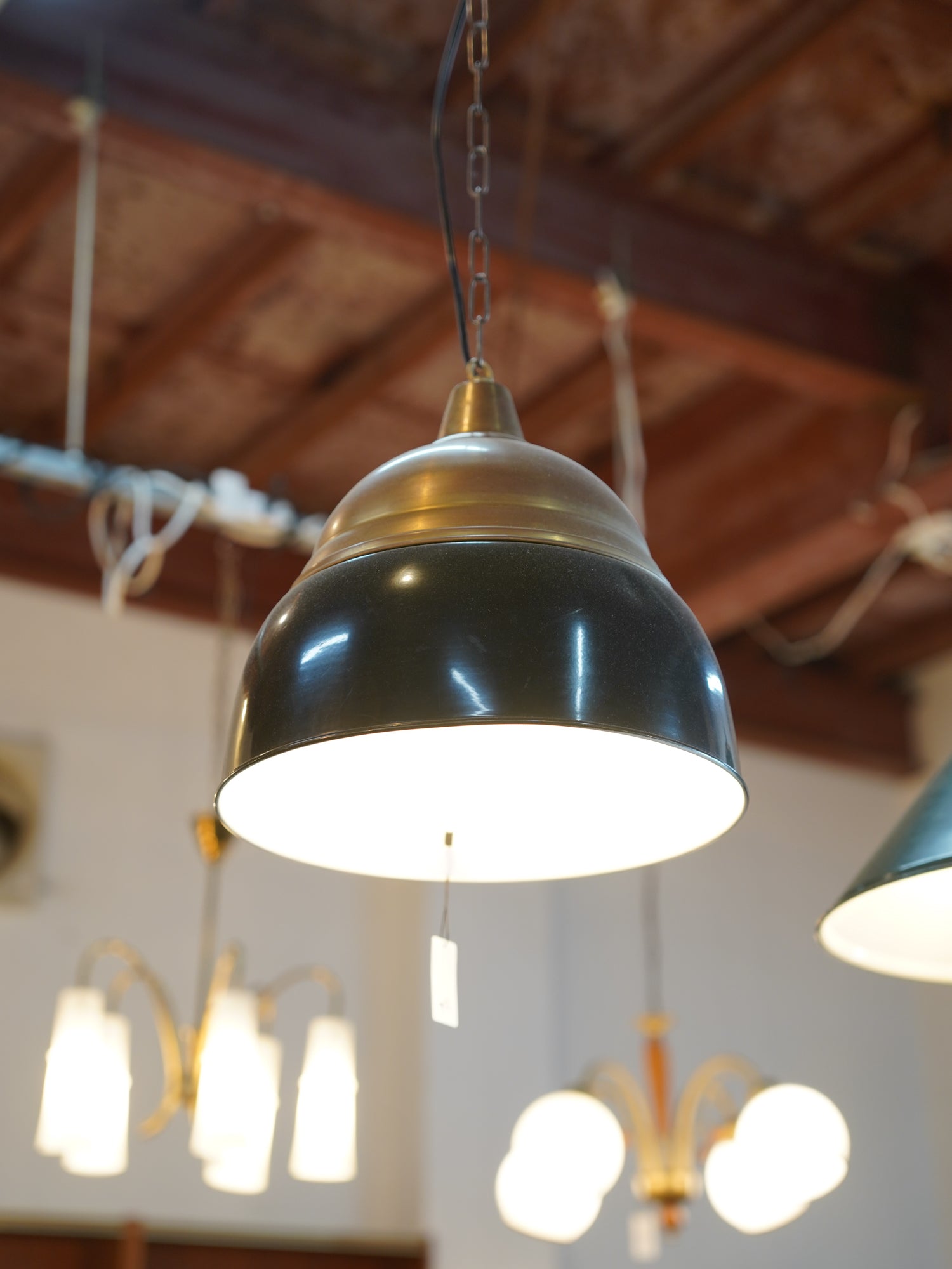 ホーローと真鍮色の組み合わせがインダストリアルな雰囲気のペンダントランプ。