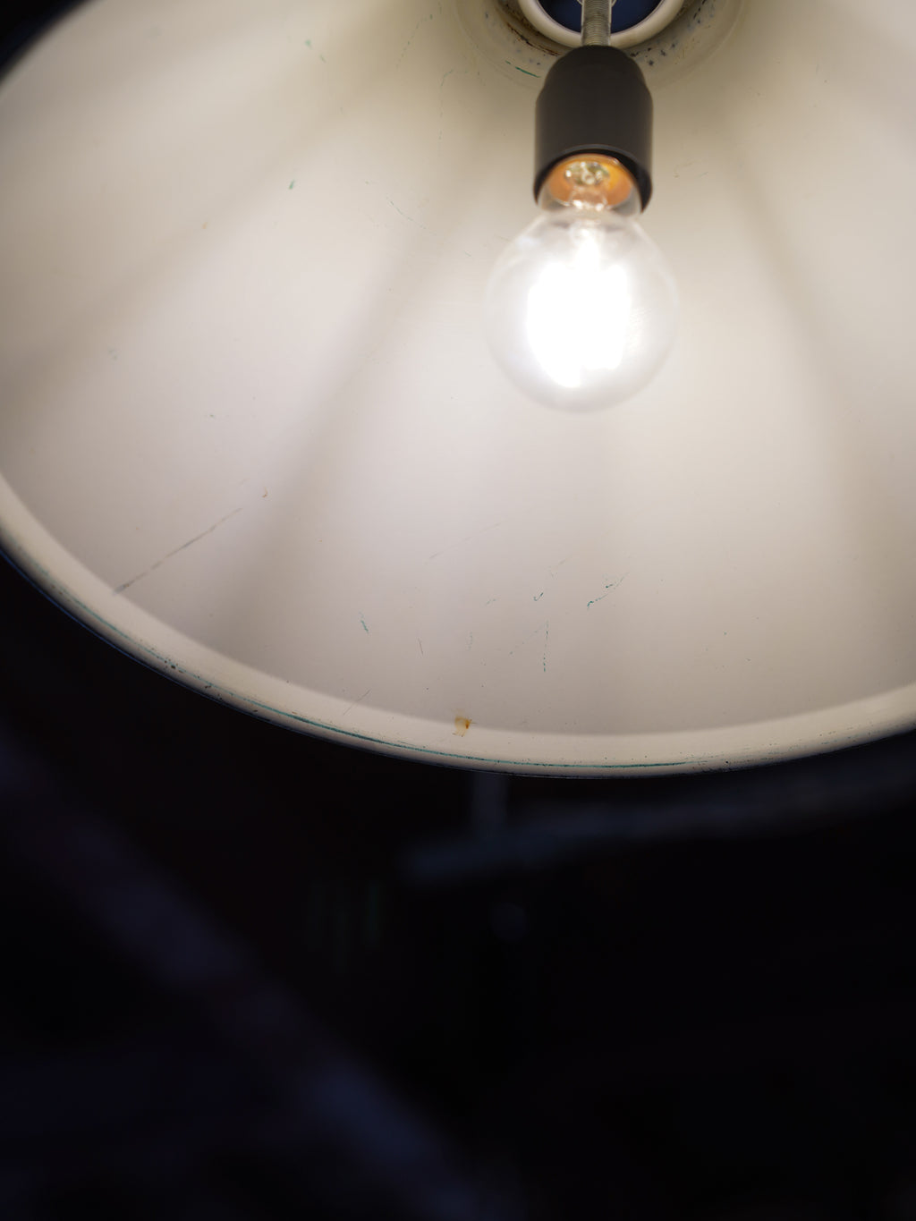 コニカル型のシェードは非常にすっきりとしたシルエットで、光を均一に広げるためダイニングテーブル全体や広い作業面を照らすのに適しています。