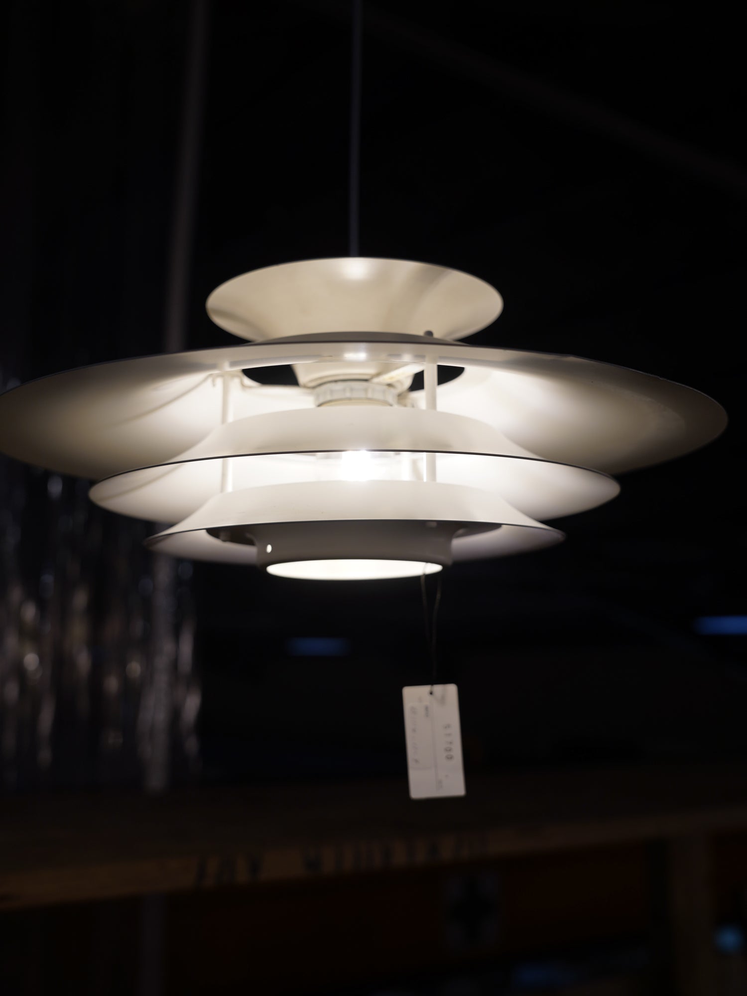 最大の魅力は、グレアフリーを科学的に実現した緻密なシェード構造です。大小異なる五枚のシェードが精密な間隔で重ねられており、光を反射・拡散させることで、光源がどの角度からも直接目に入らないように設計されています。