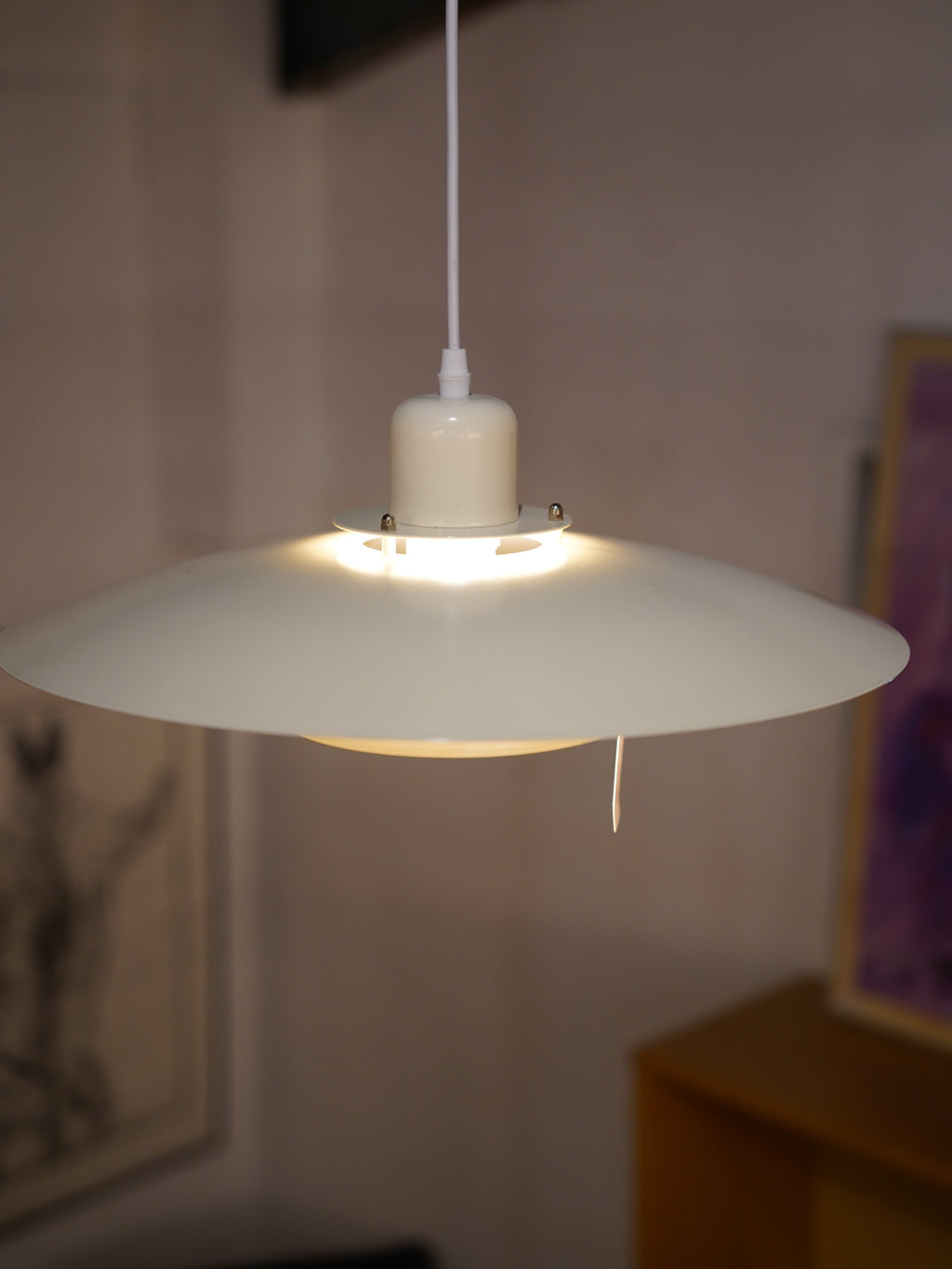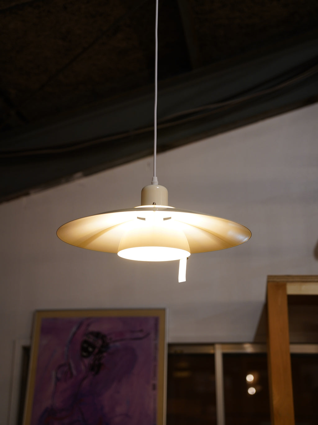 シェードの色はクリームがかったアイボリーで、温白色の光と相まって、安らぎと落ち着きのある雰囲気を作り出します。シンプルな構造でありながら、洗練された造形美は、ダイニングテーブルの上やリビングルームの主役として、上質なモダンインテリアを完成させます。