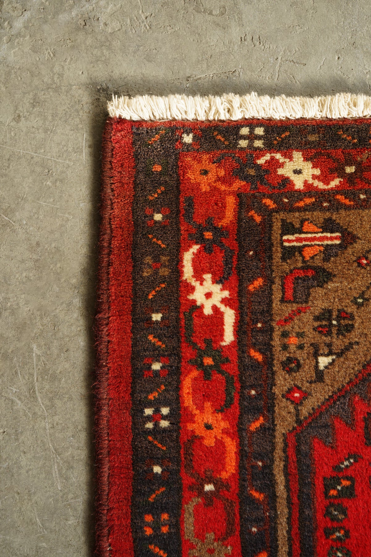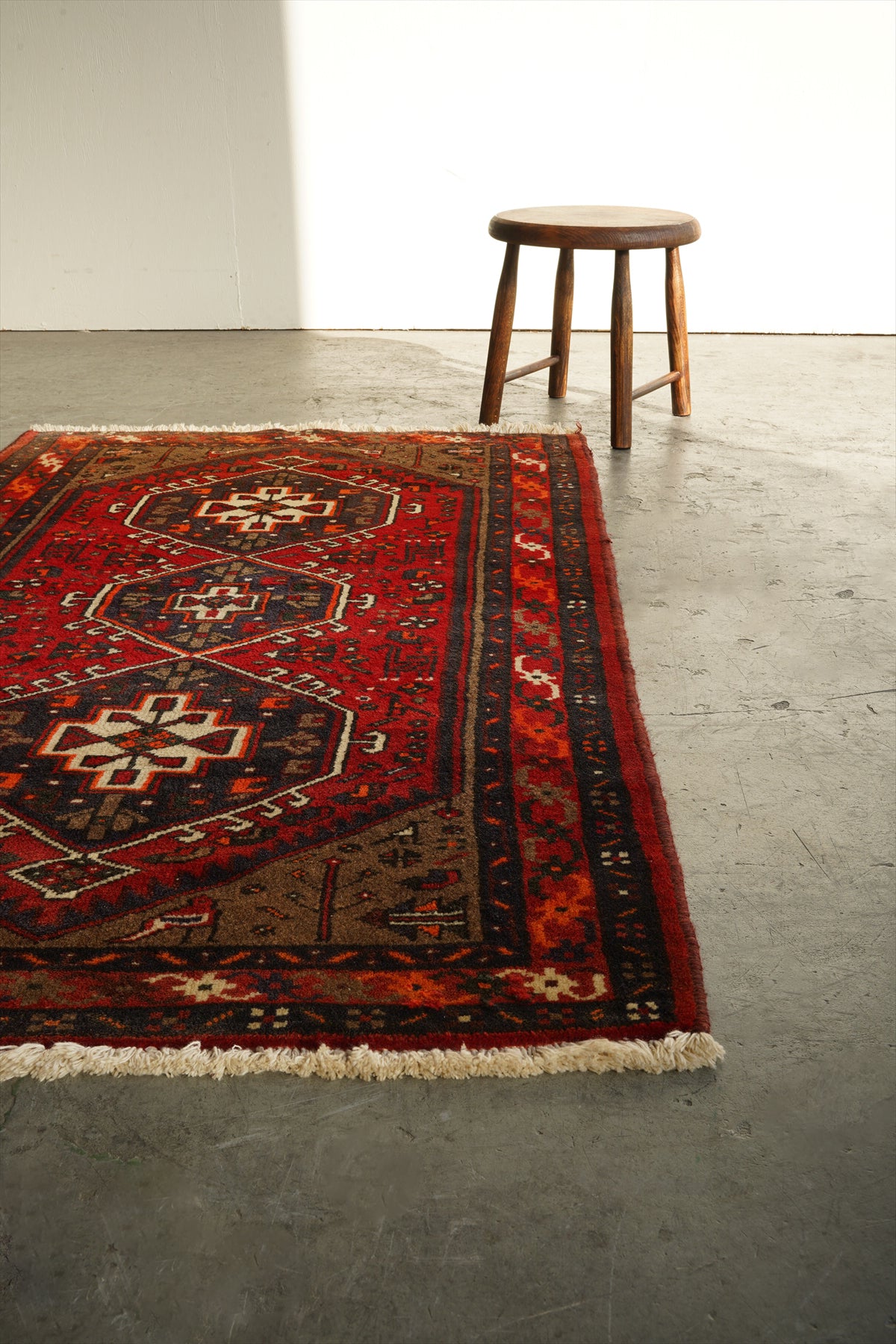 バルーチ族の織物は、深い茜色の赤と、シックな茶色や黒を基調とした落ち着いた色合いが魅力です。
