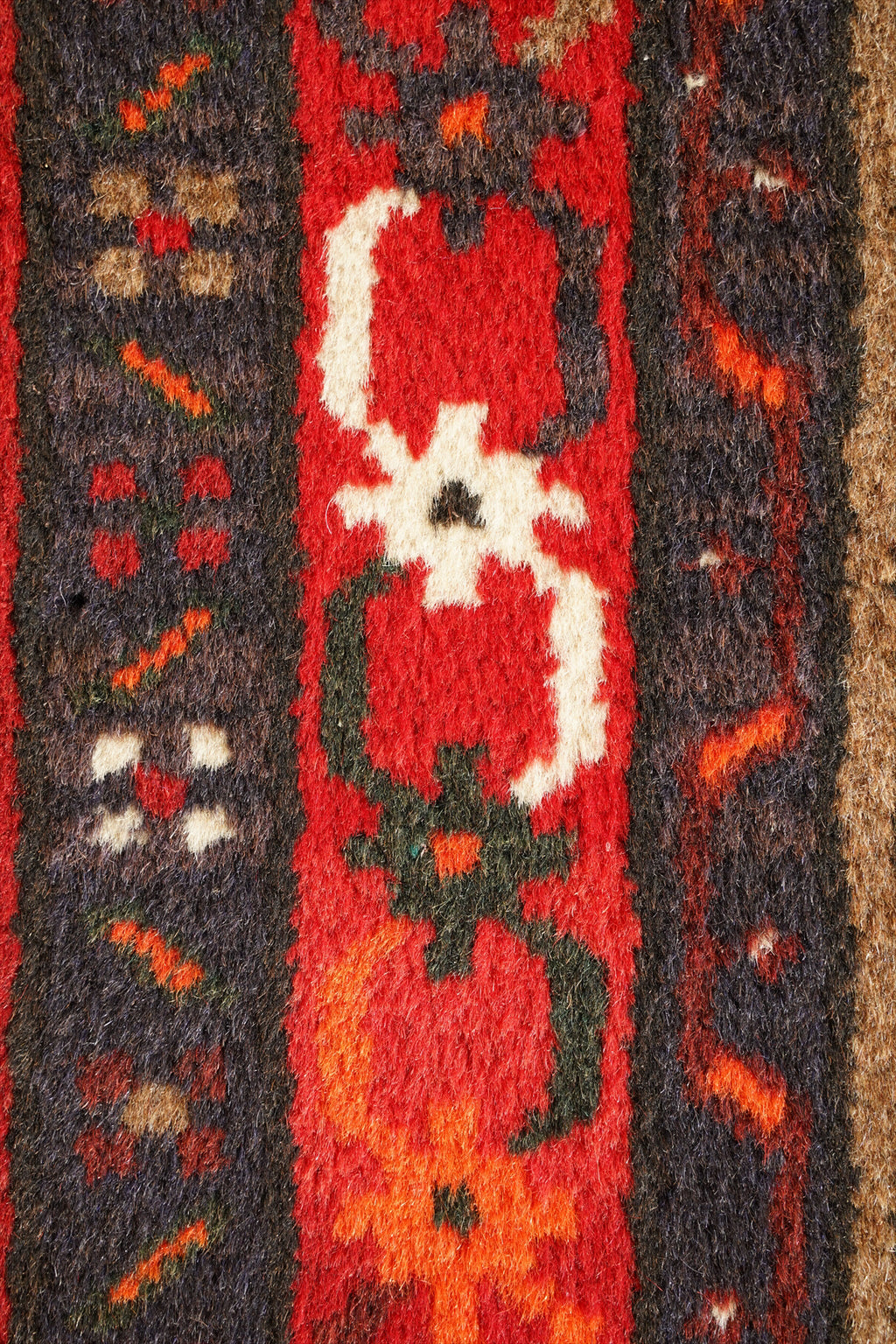 イランとアフガニスタンの国境付近に暮らすバルーチ族によって、手織りされたオールド・トライバルラグと思われます。