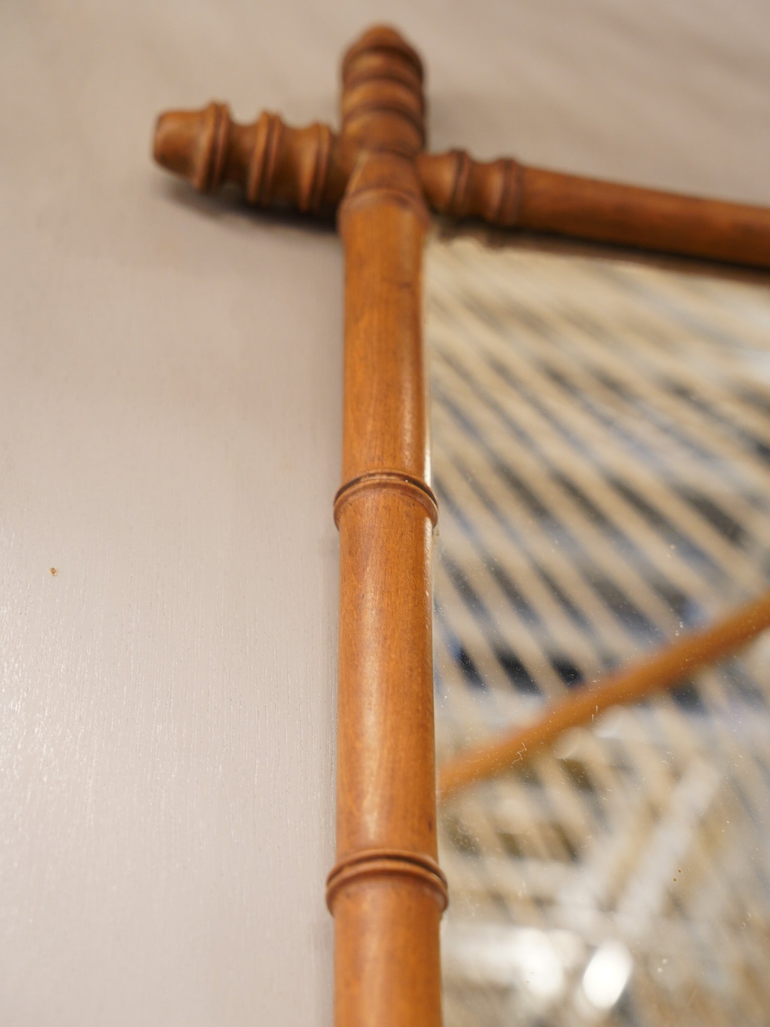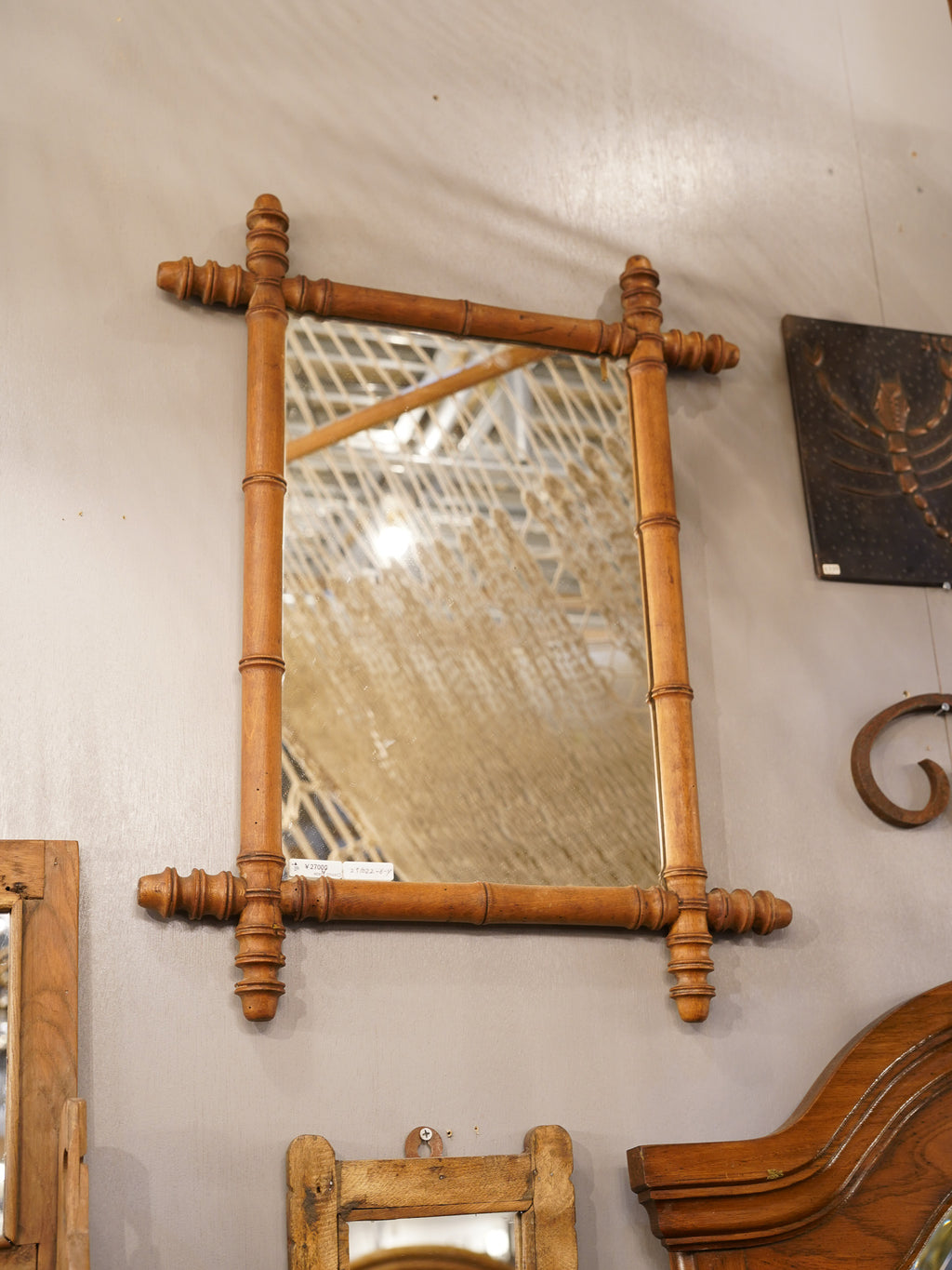 こちらのミラーは、フレーム全体が竹で作られた、非常にユニークな木製フレームミラーです。明るいブラウンの竹を使用し、オリエンタルな雰囲気を醸し出しています。