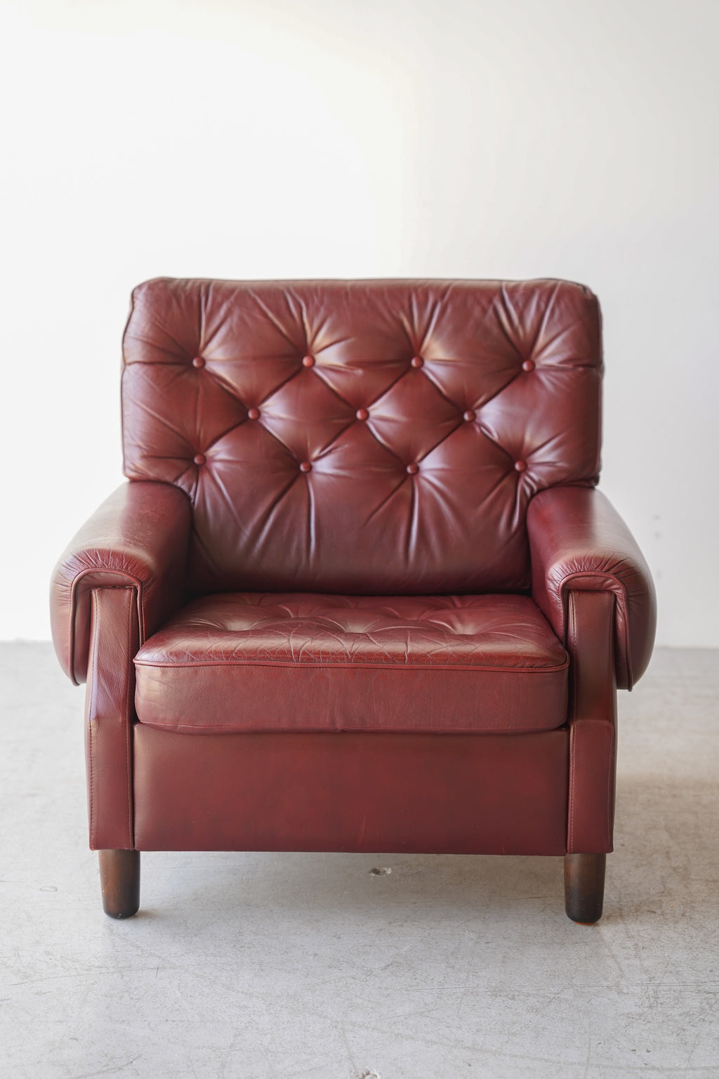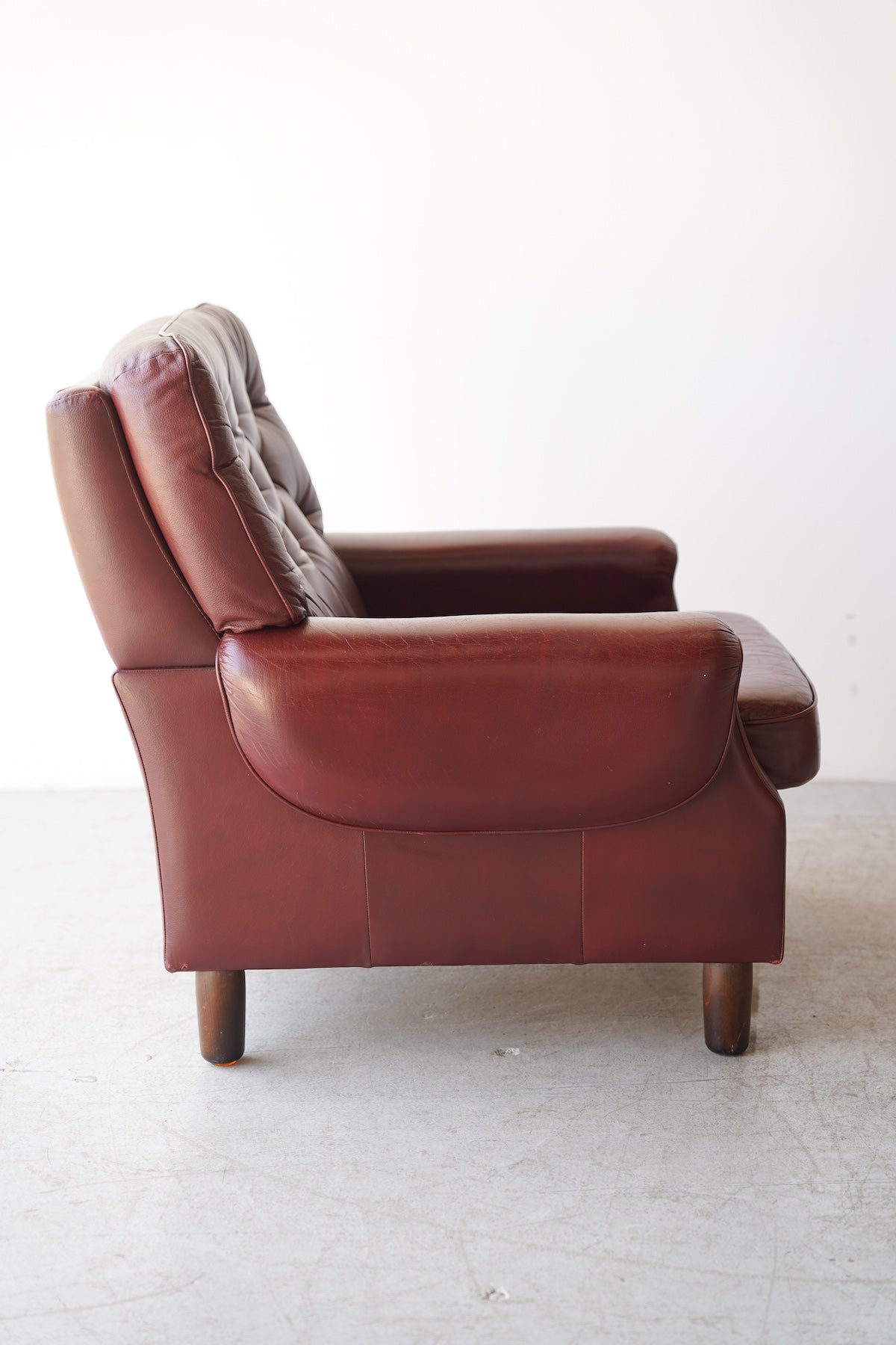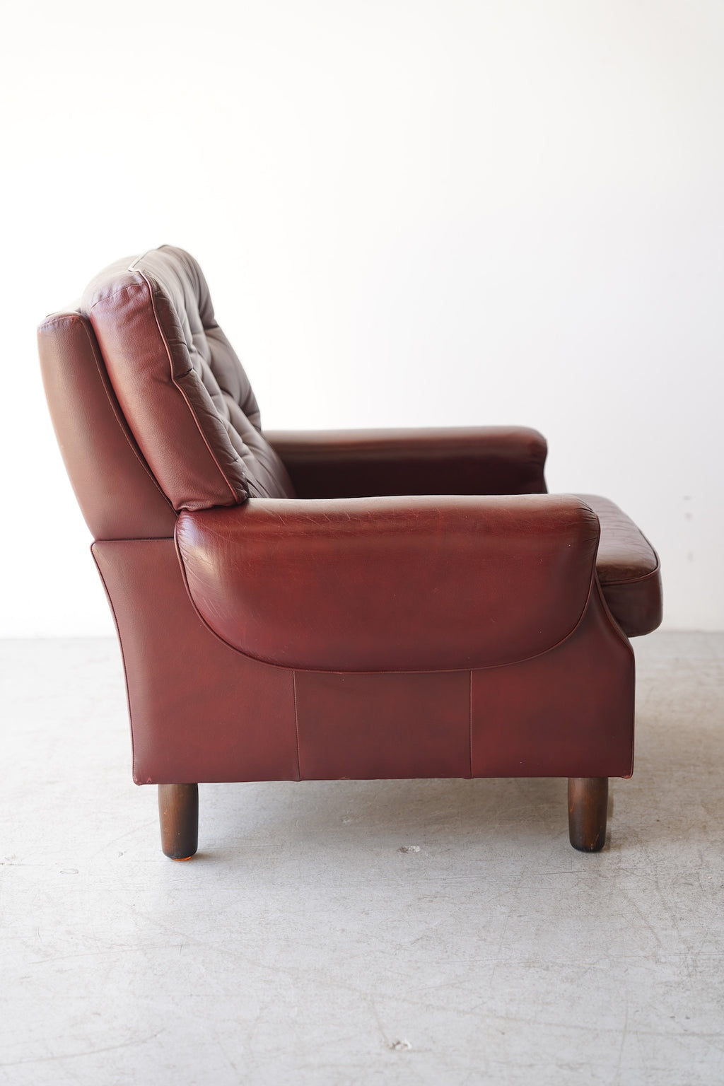 こちらは、1950年代から1970年代頃にデンマークで製造されたとみられる、ヴィンテージのレザーアームチェアです。