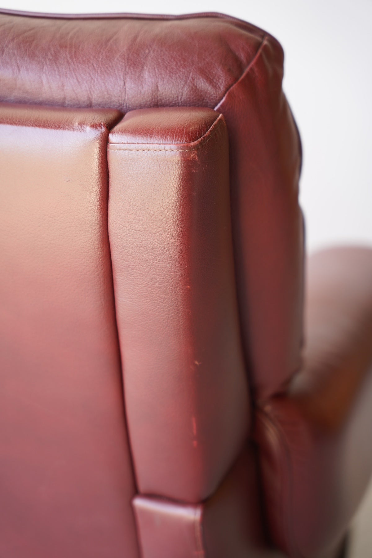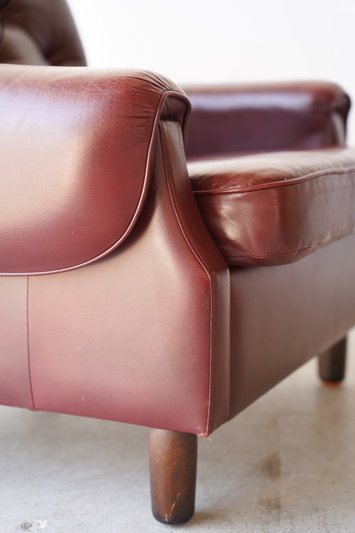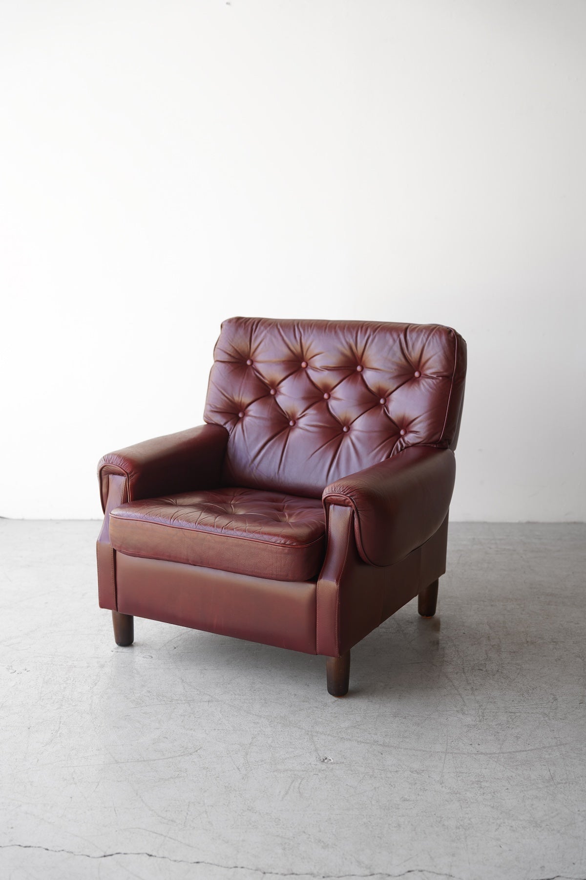 こちらは、1950年代から1970年代頃にデンマークで製造されたとみられる、ヴィンテージのレザーアームチェアです。