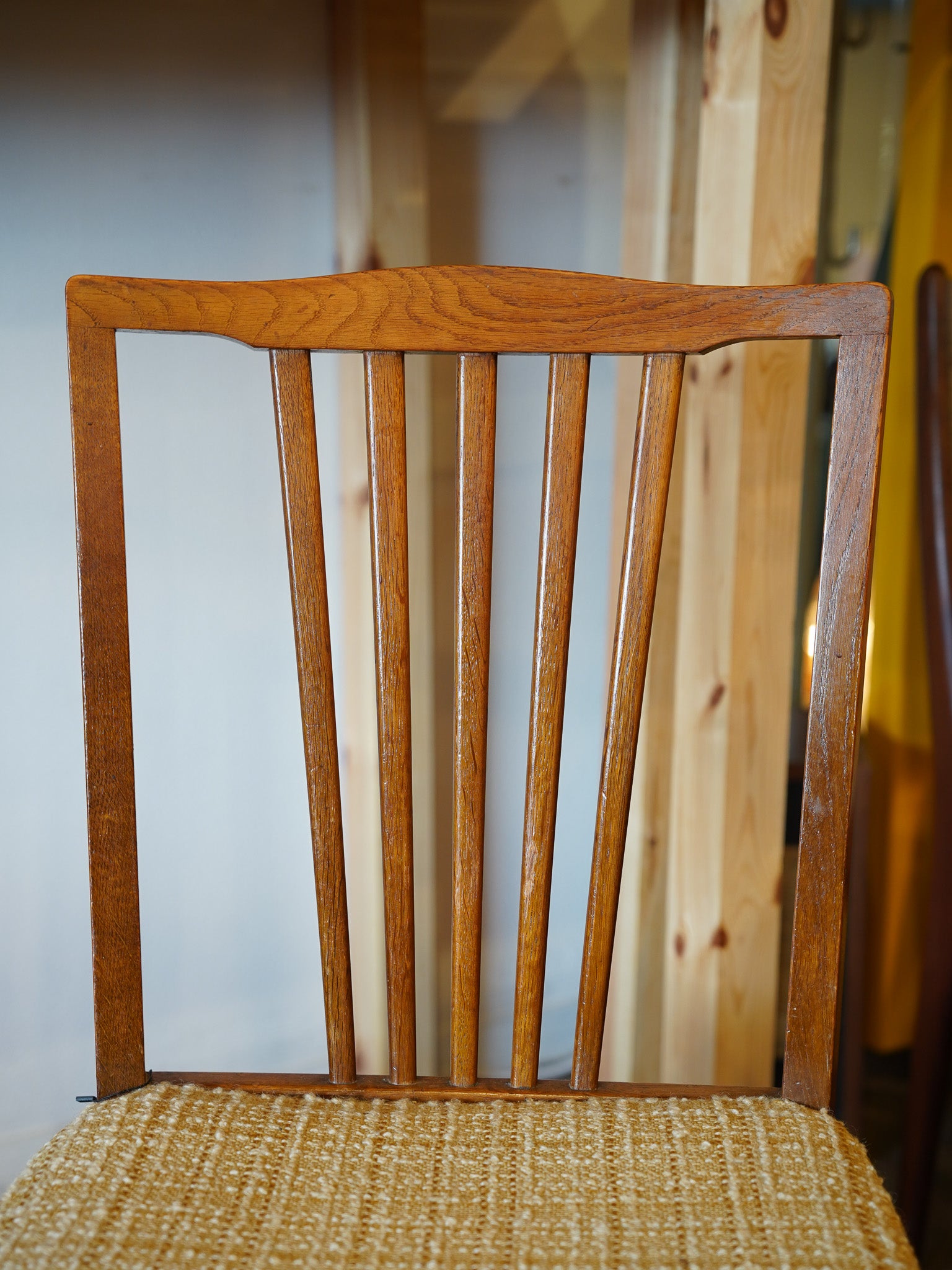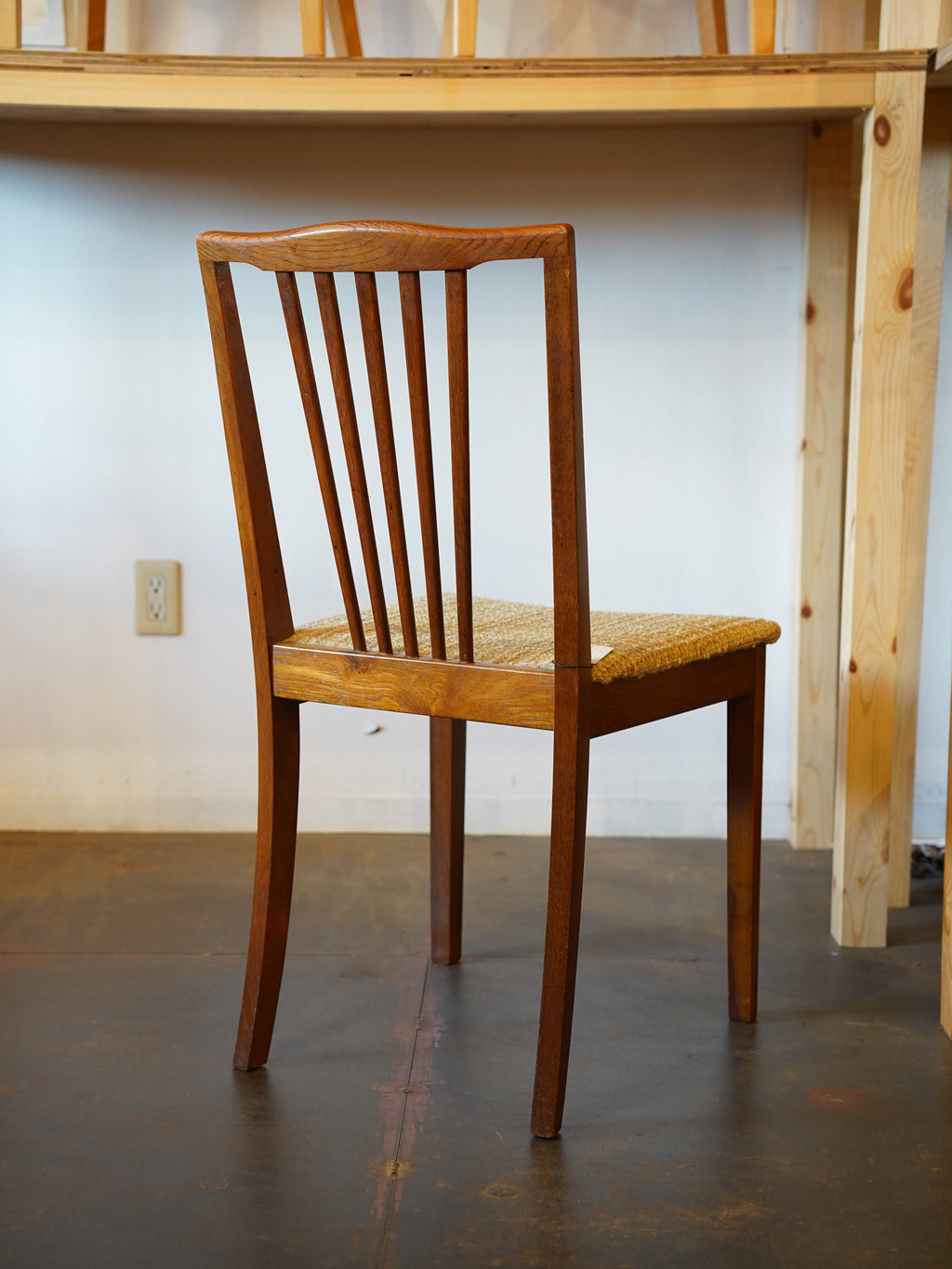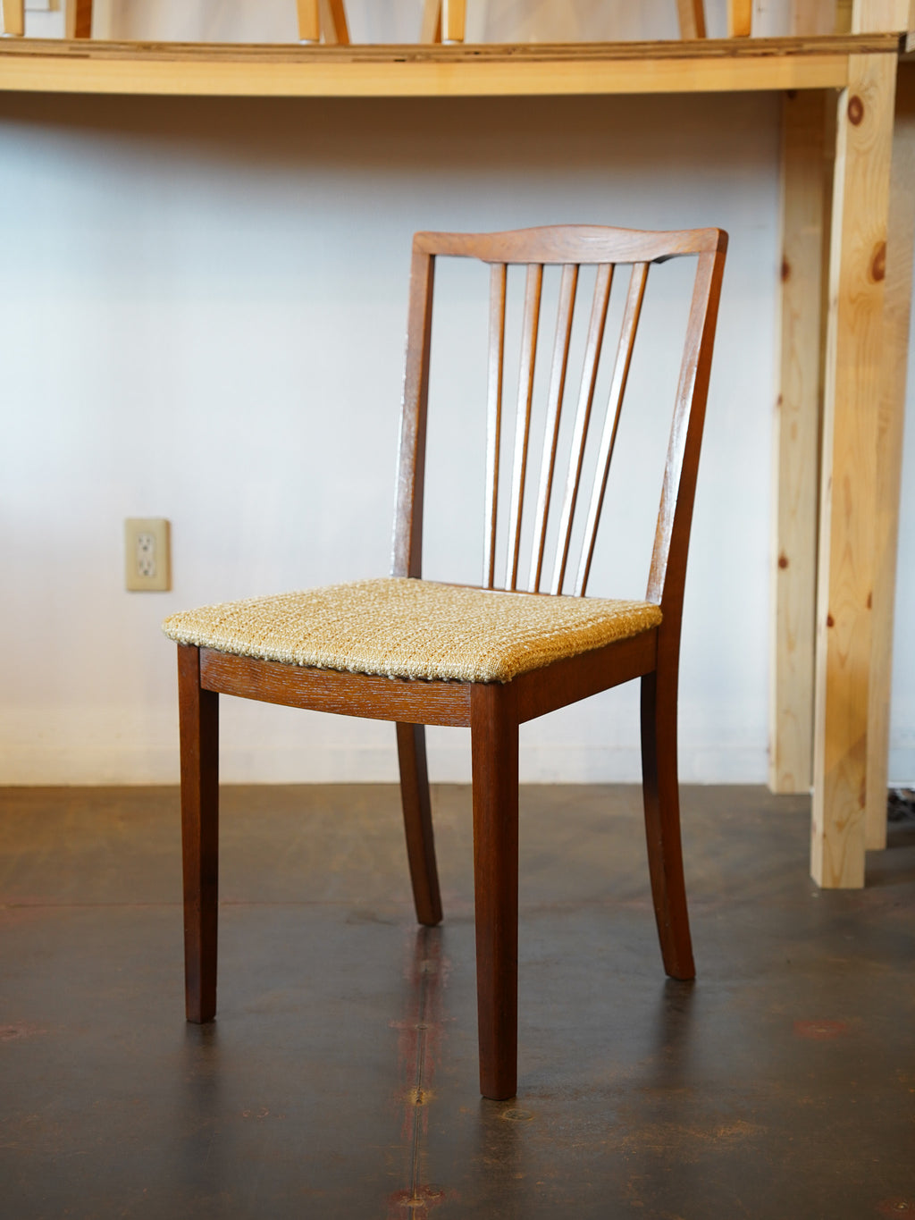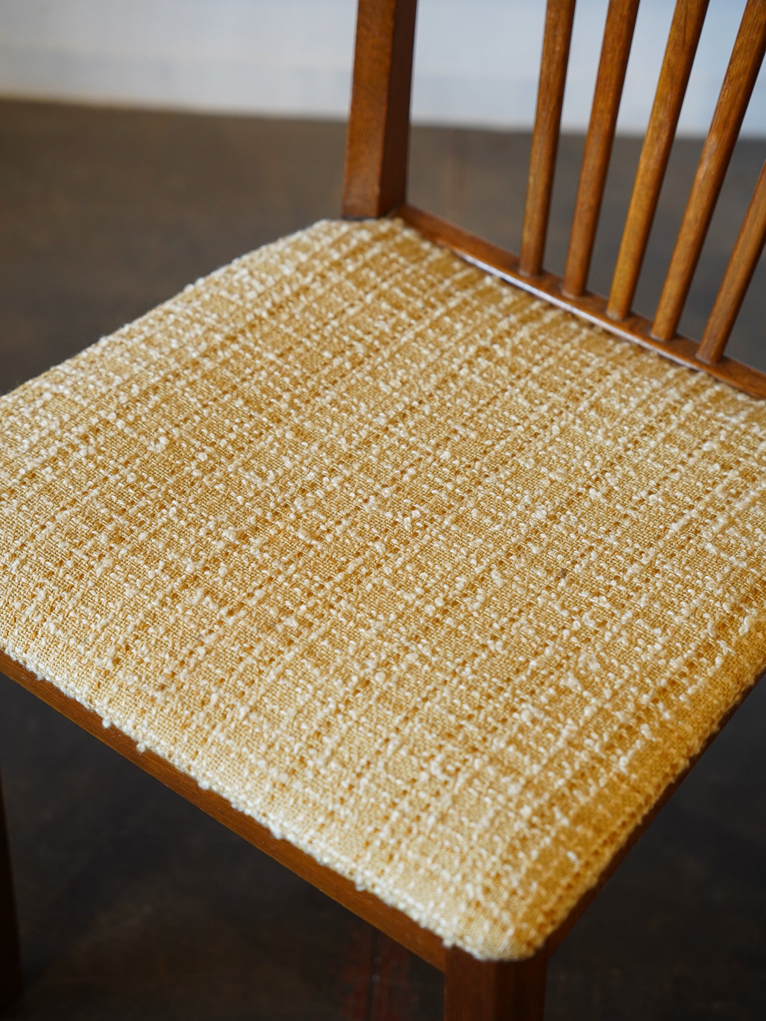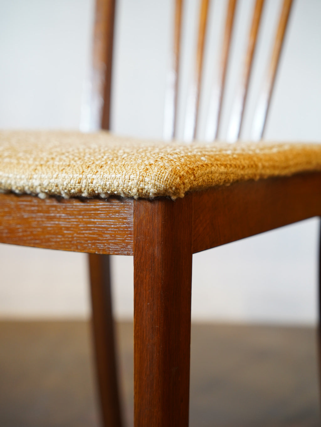 背もたれが縦の細いスピンドルで構成されており、伝統的なウィンザーチェアの要素を持ちながらも、全体的にすっきりとモダンなデザインのダイニングチェア。