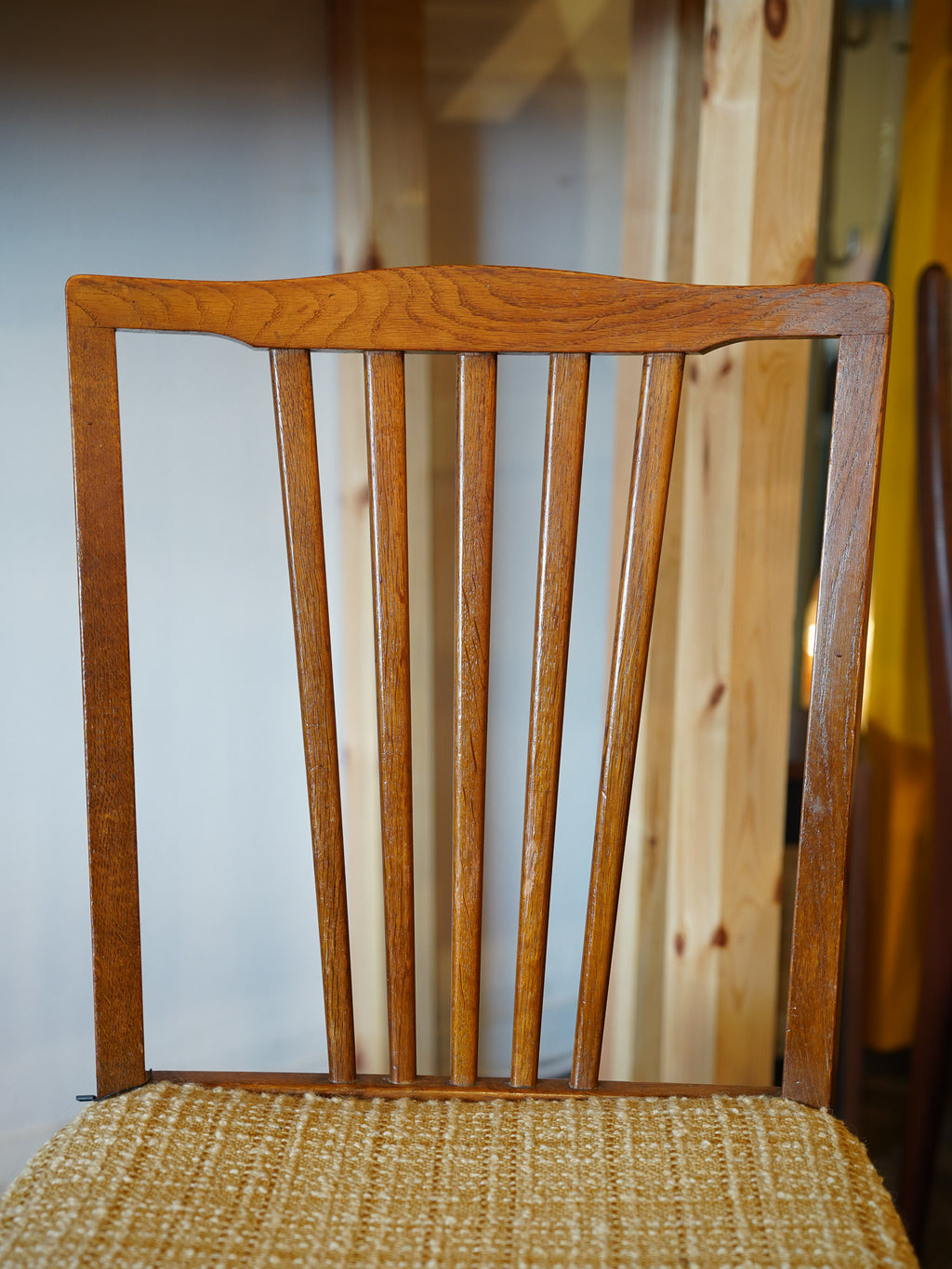 洗練されたデザインのウッドフレームに温かみのあるファブリックが映えるダイニングチェア