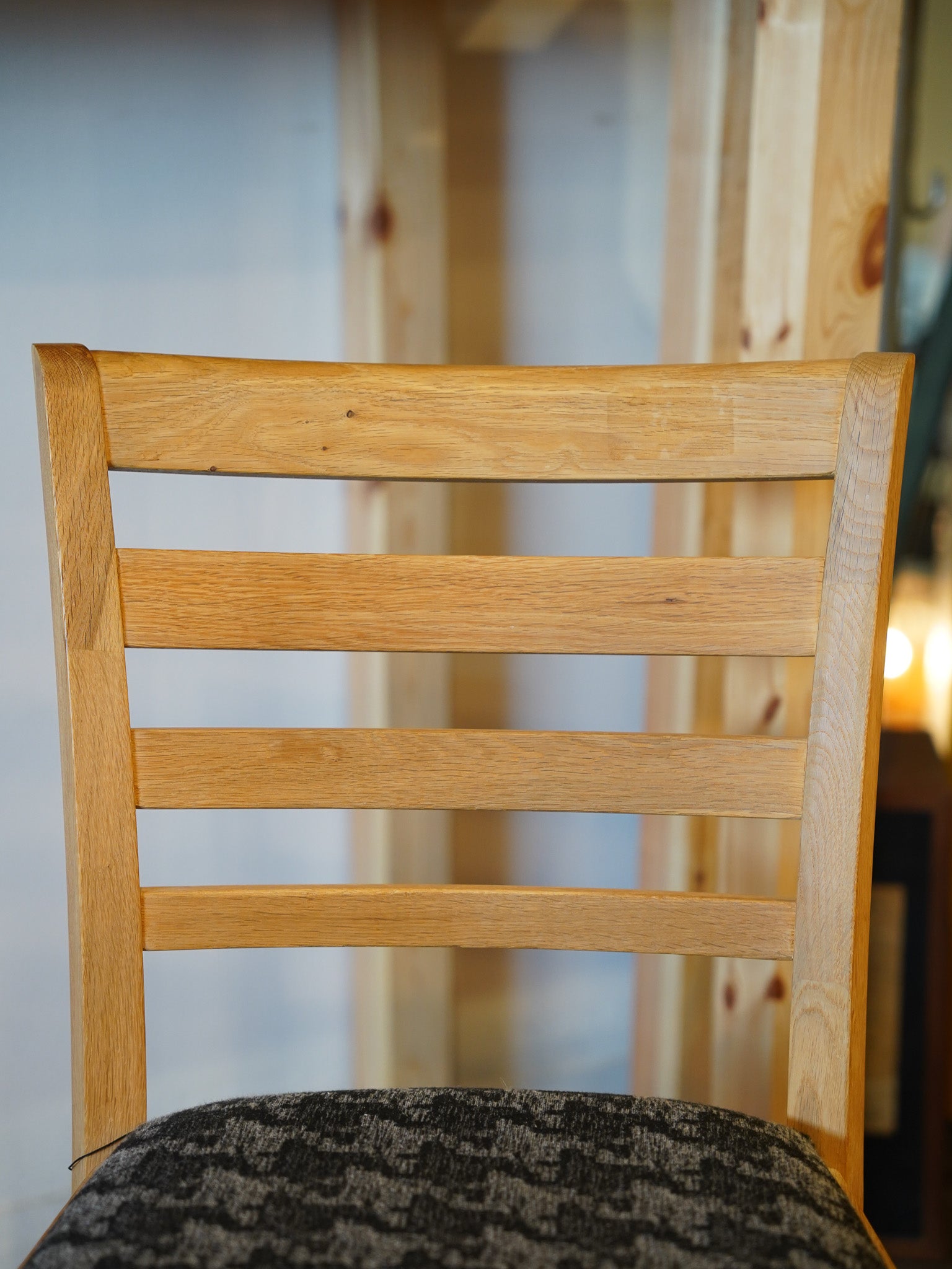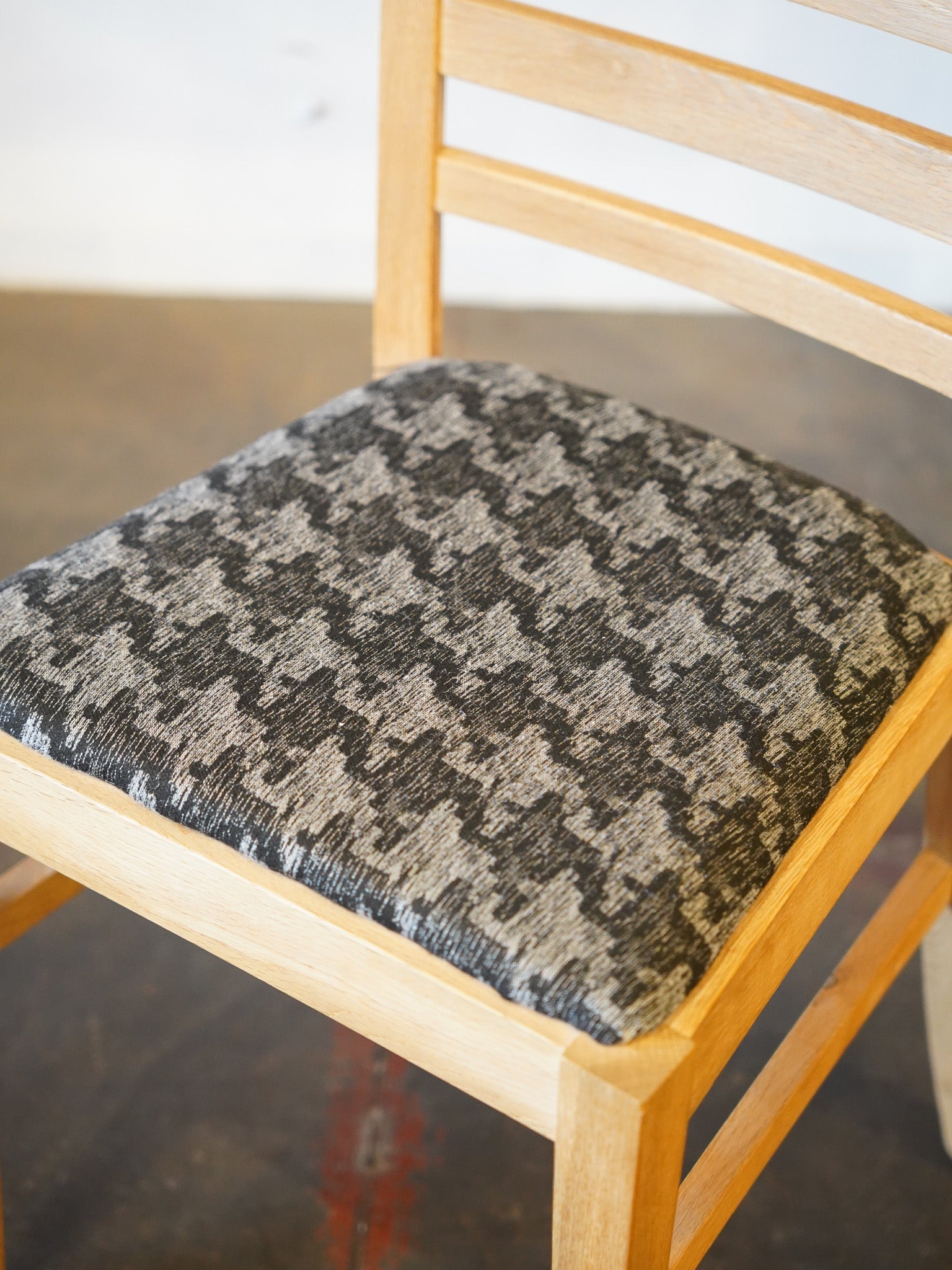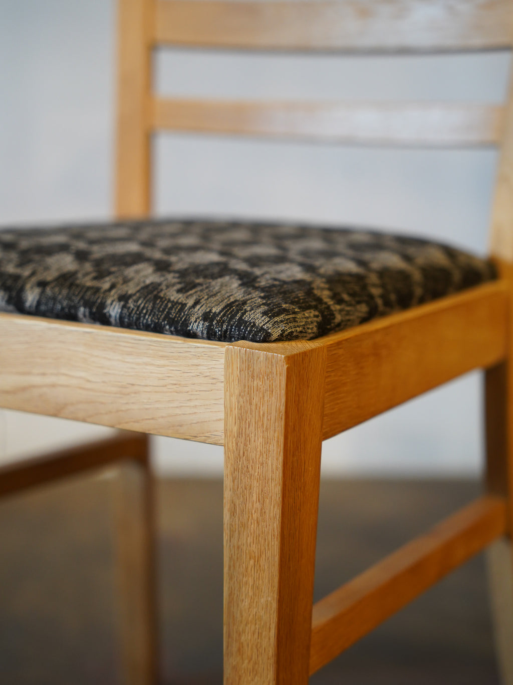 オークウッドのフレームにモダンな柄のファブリックが映えるダイニングチェア
