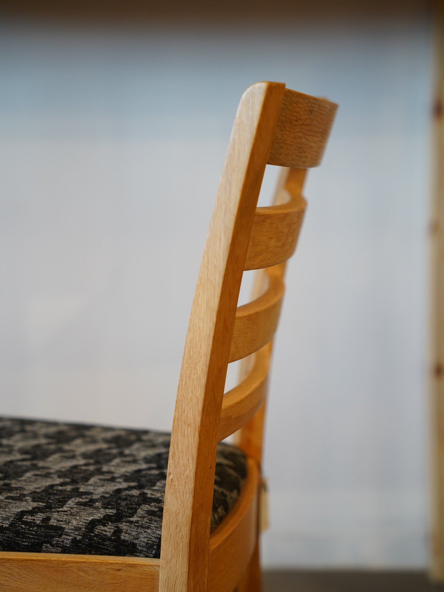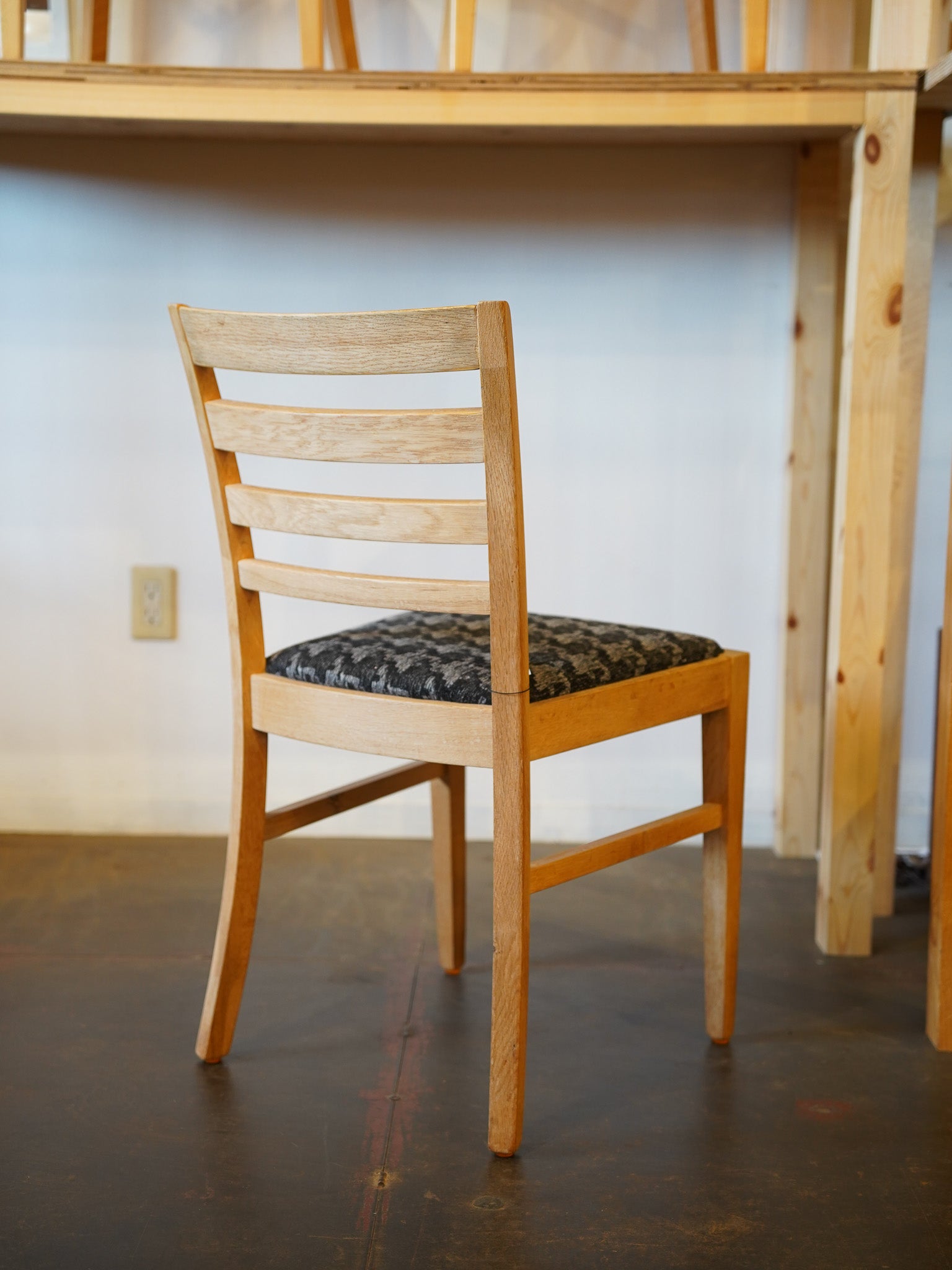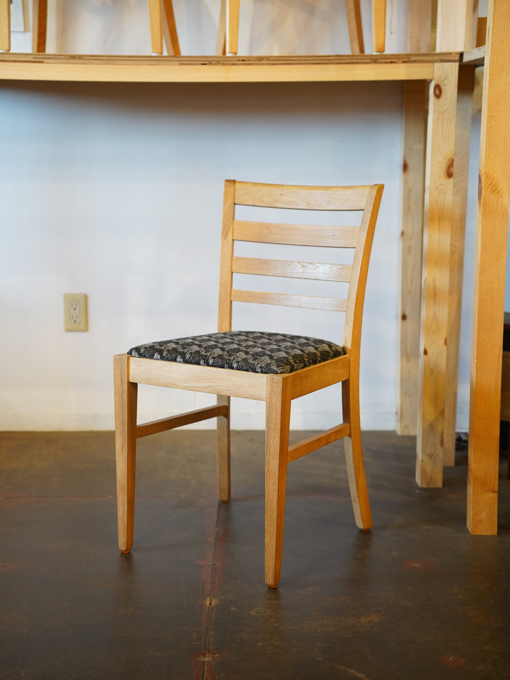 オークウッドのフレームにモダンな柄のファブリックが映えるダイニングチェア