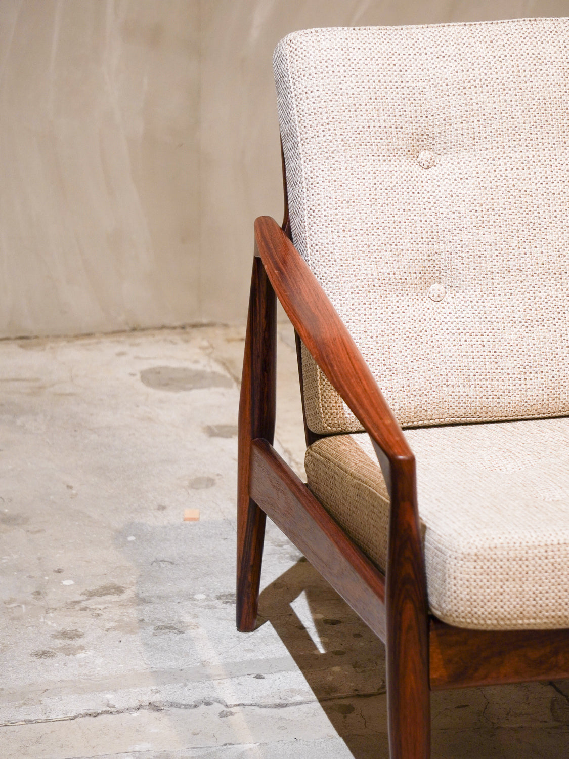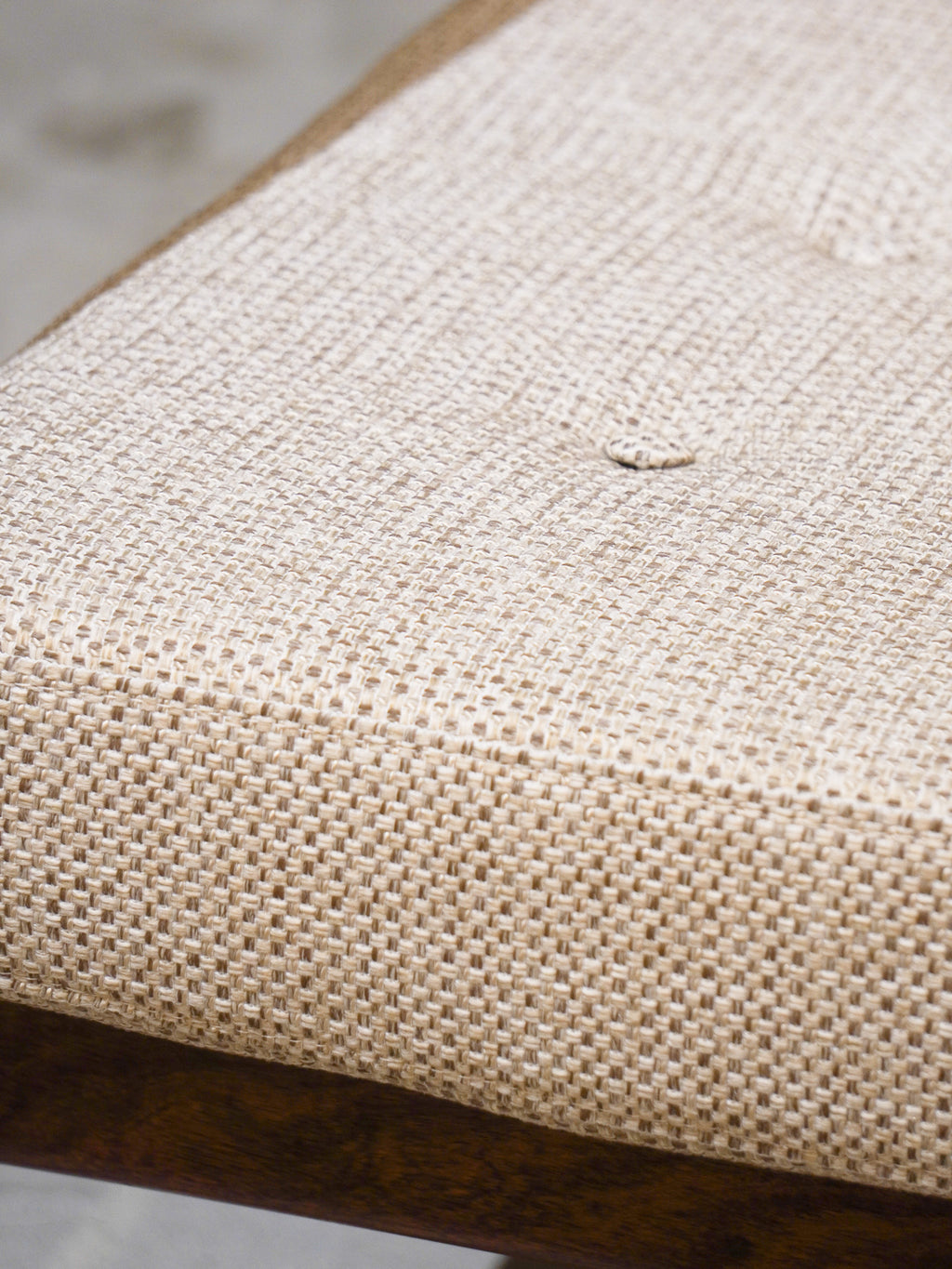 クッション生地はデンマーク製生地メーカー"KVADRAT"によって、オリジナルへの敬意を払いながら、高い審美眼で選ばれたデンマーク製生地に丁寧に張り替えられています。