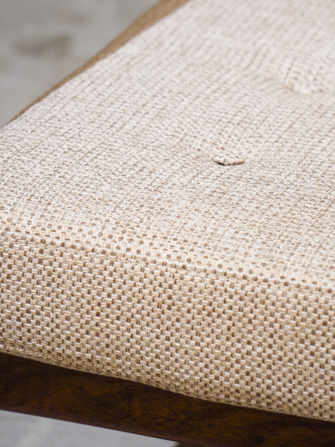 温かみのあるベージュ系のミックスファブリックは、ローズウッドの深みのある色合いと見事に調和しています。