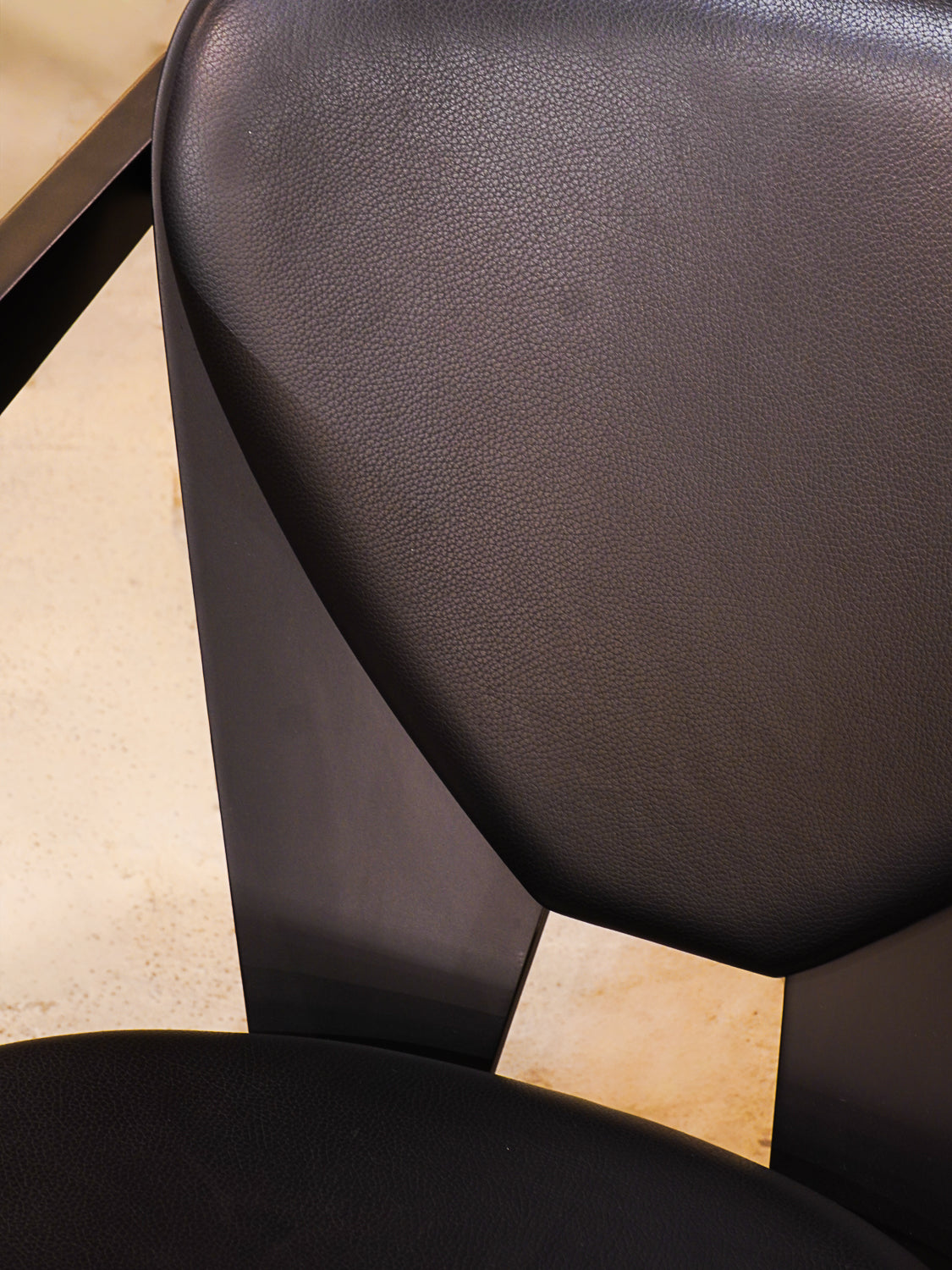 ブラックラッカー仕上げのフレームとブラックレザーの張地が特徴です。