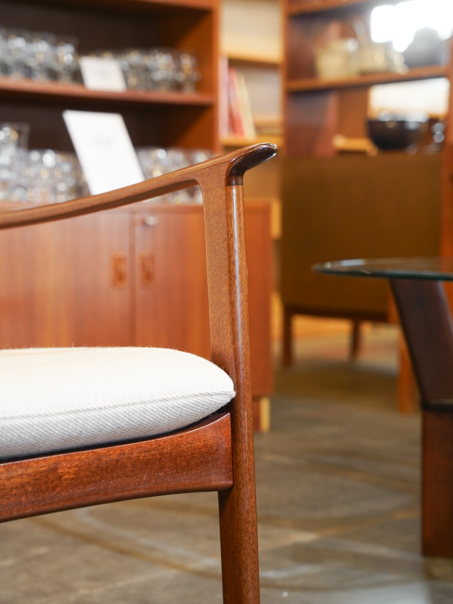 時を重ねることでより深みを増したマホガニーの赤褐色が、空間に温もりと格別の気品をもたらします。北欧家具の黄金期が生んだ「用の美」の結晶ともいえるこの一脚で、至福のひとときをお過ごしください。
