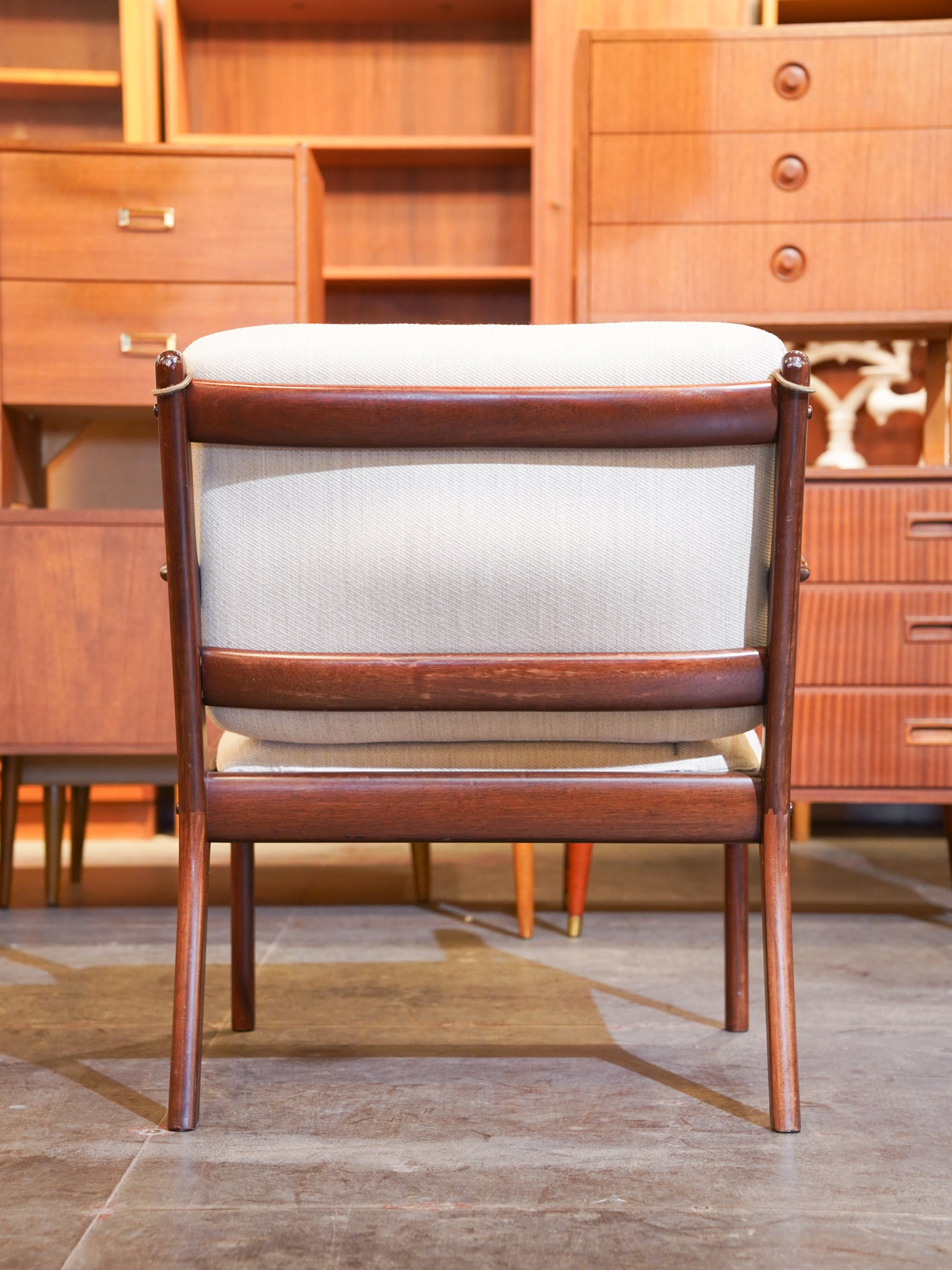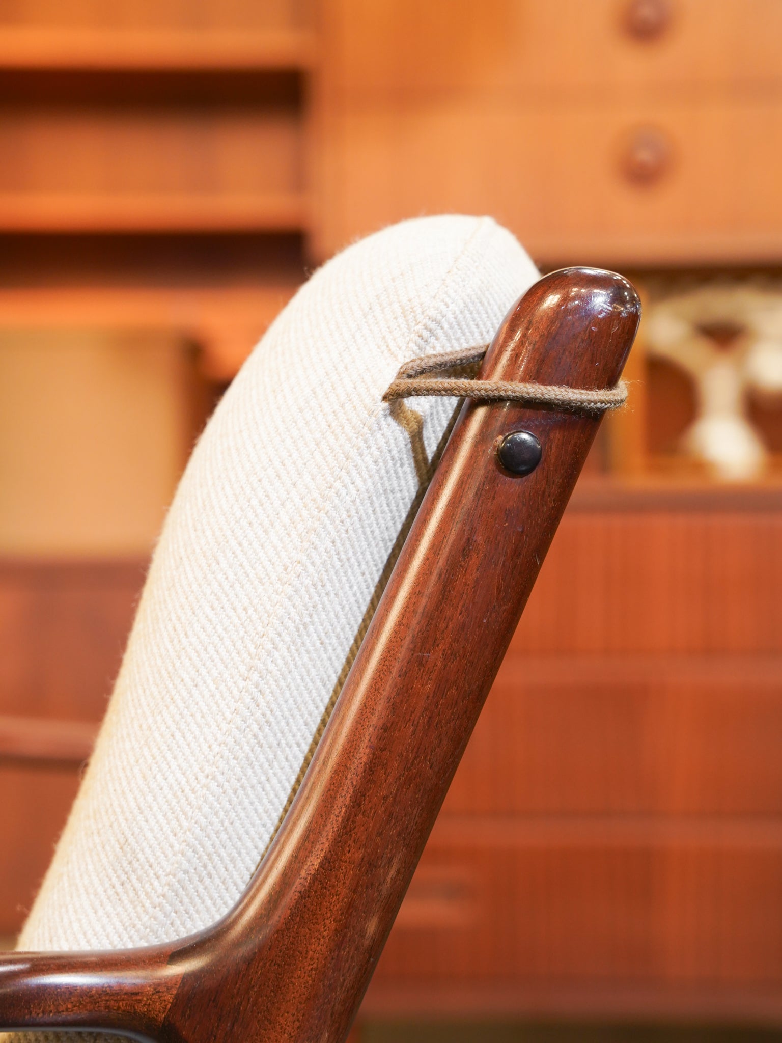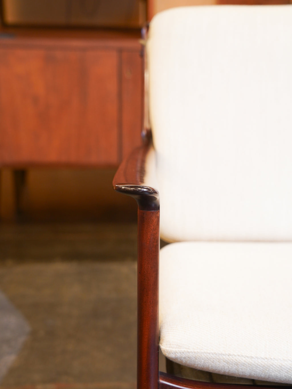 時を重ねることでより深みを増したマホガニーの赤褐色が、空間に温もりと格別の気品をもたらします。北欧家具の黄金期が生んだ「用の美」の結晶ともいえるこの一脚で、至福のひとときをお過ごしください。