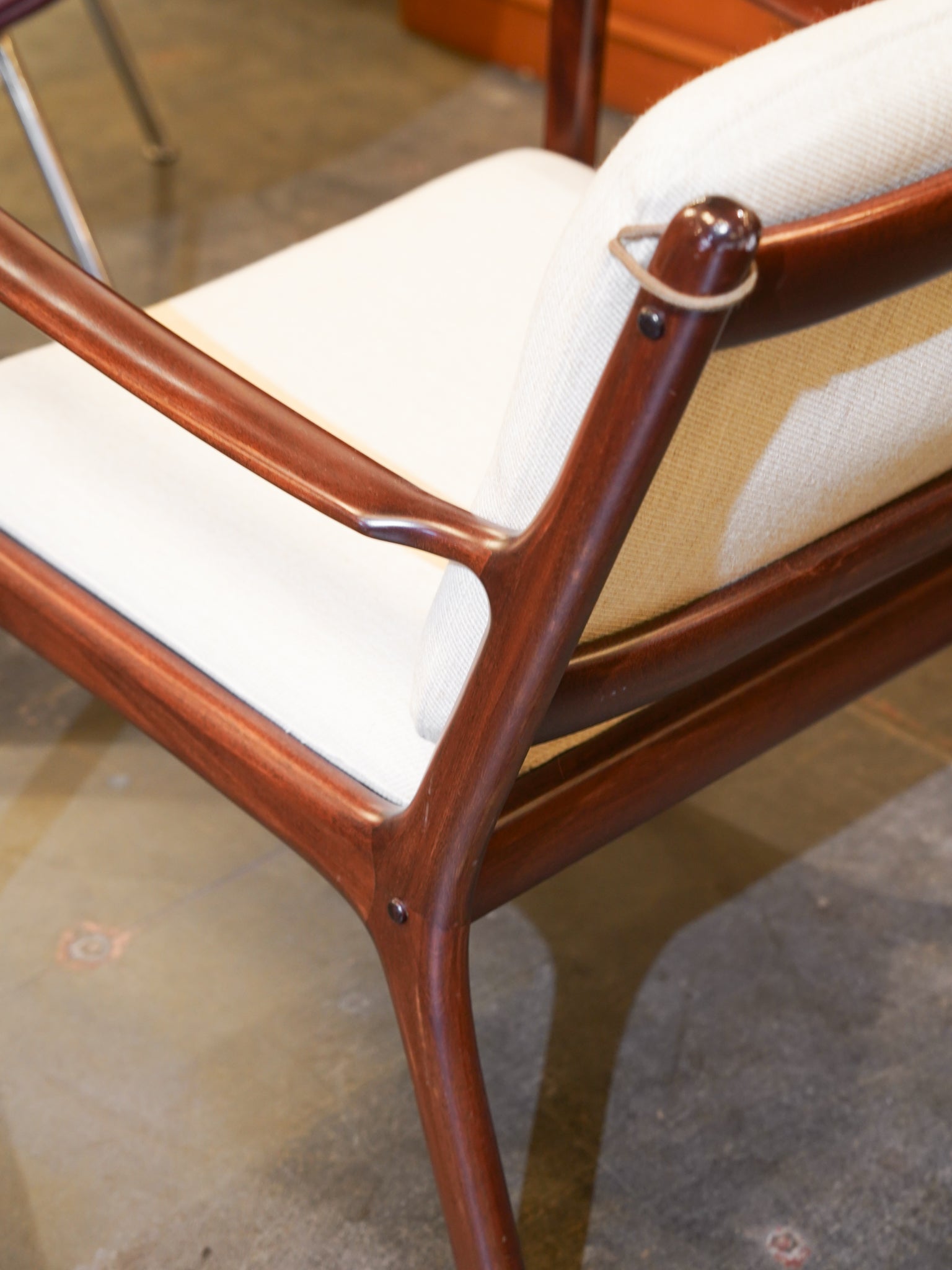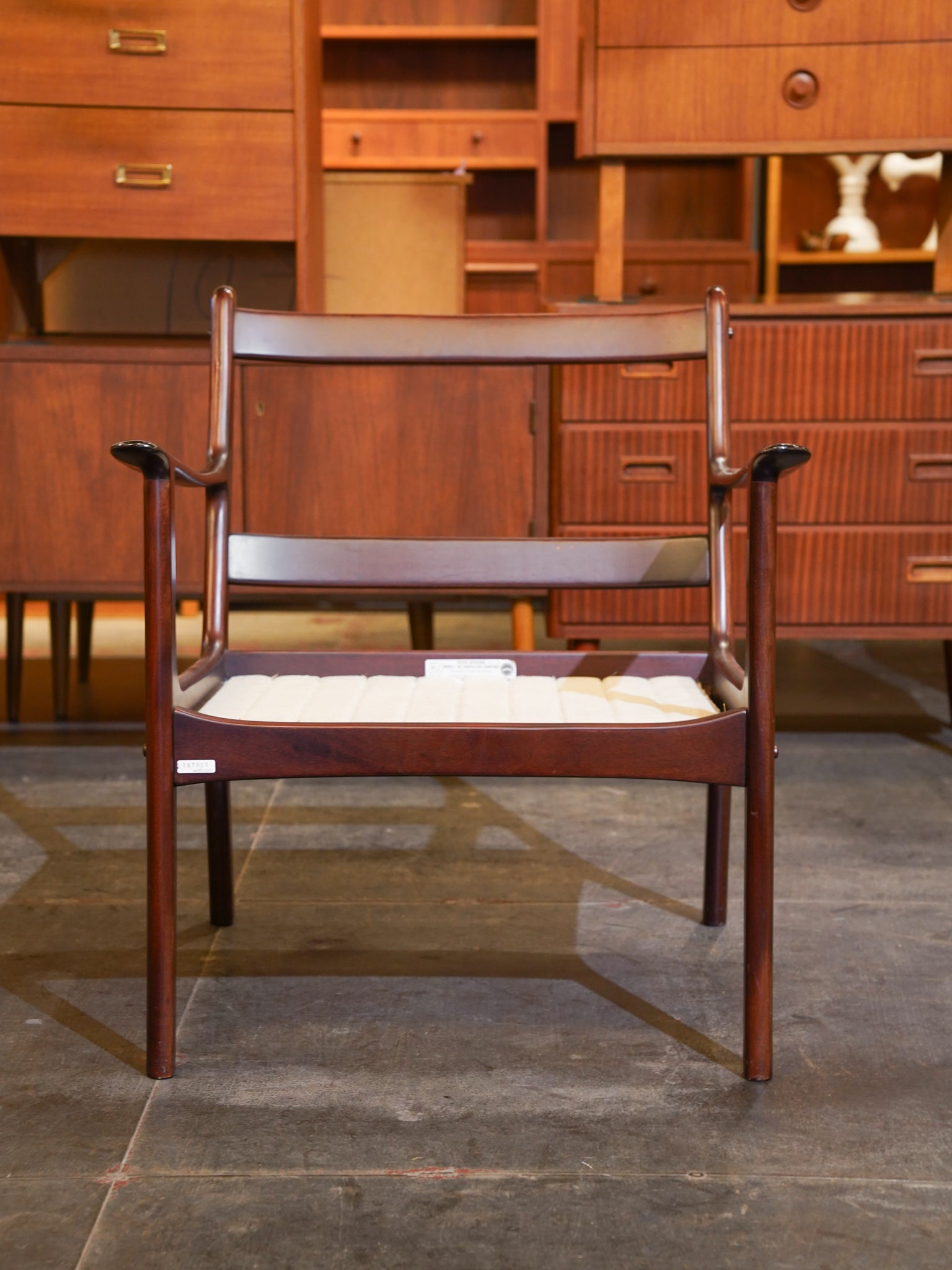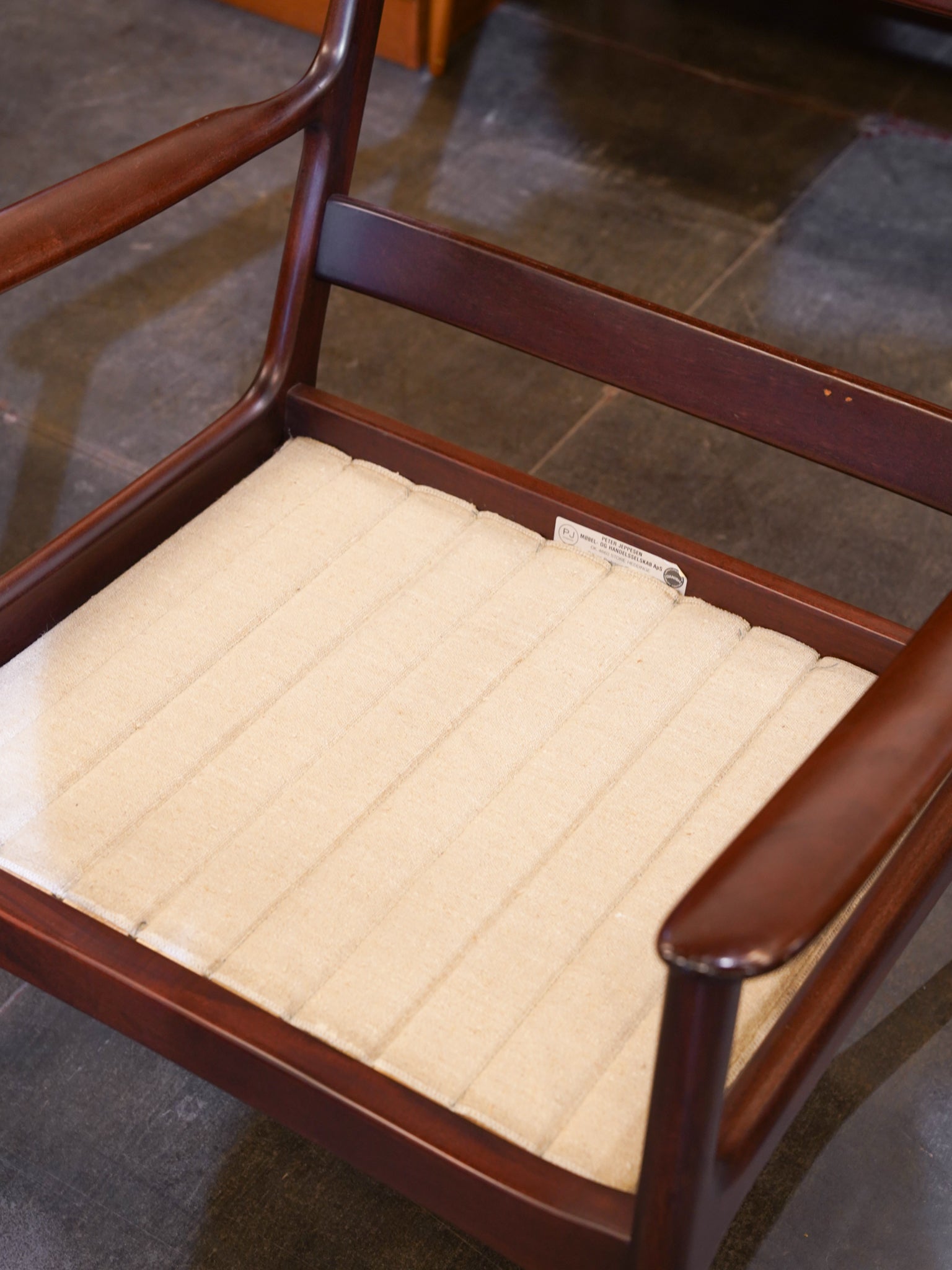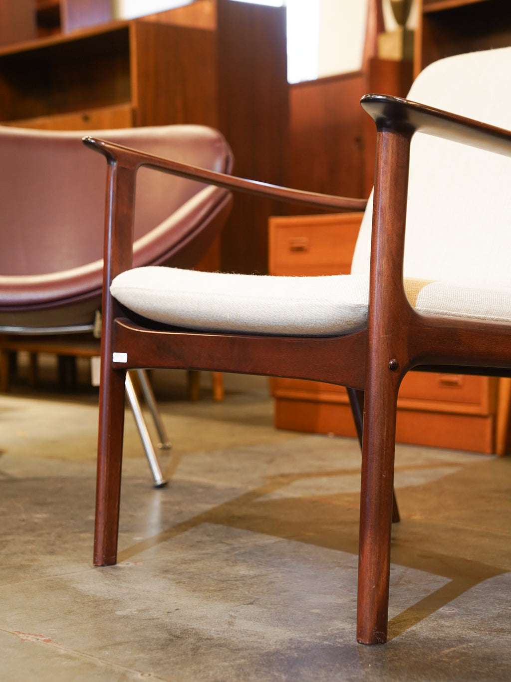 時を重ねることでより深みを増したマホガニーの赤褐色が、空間に温もりと格別の気品をもたらします。北欧家具の黄金期が生んだ「用の美」の結晶ともいえるこの一脚で、至福のひとときをお過ごしください。