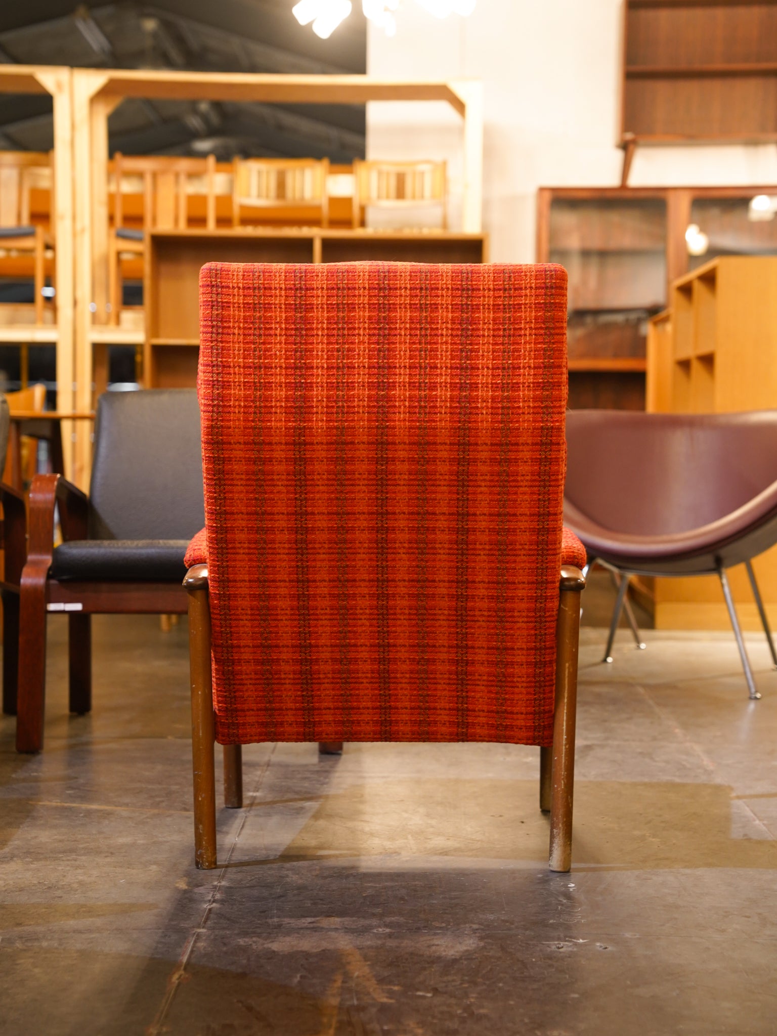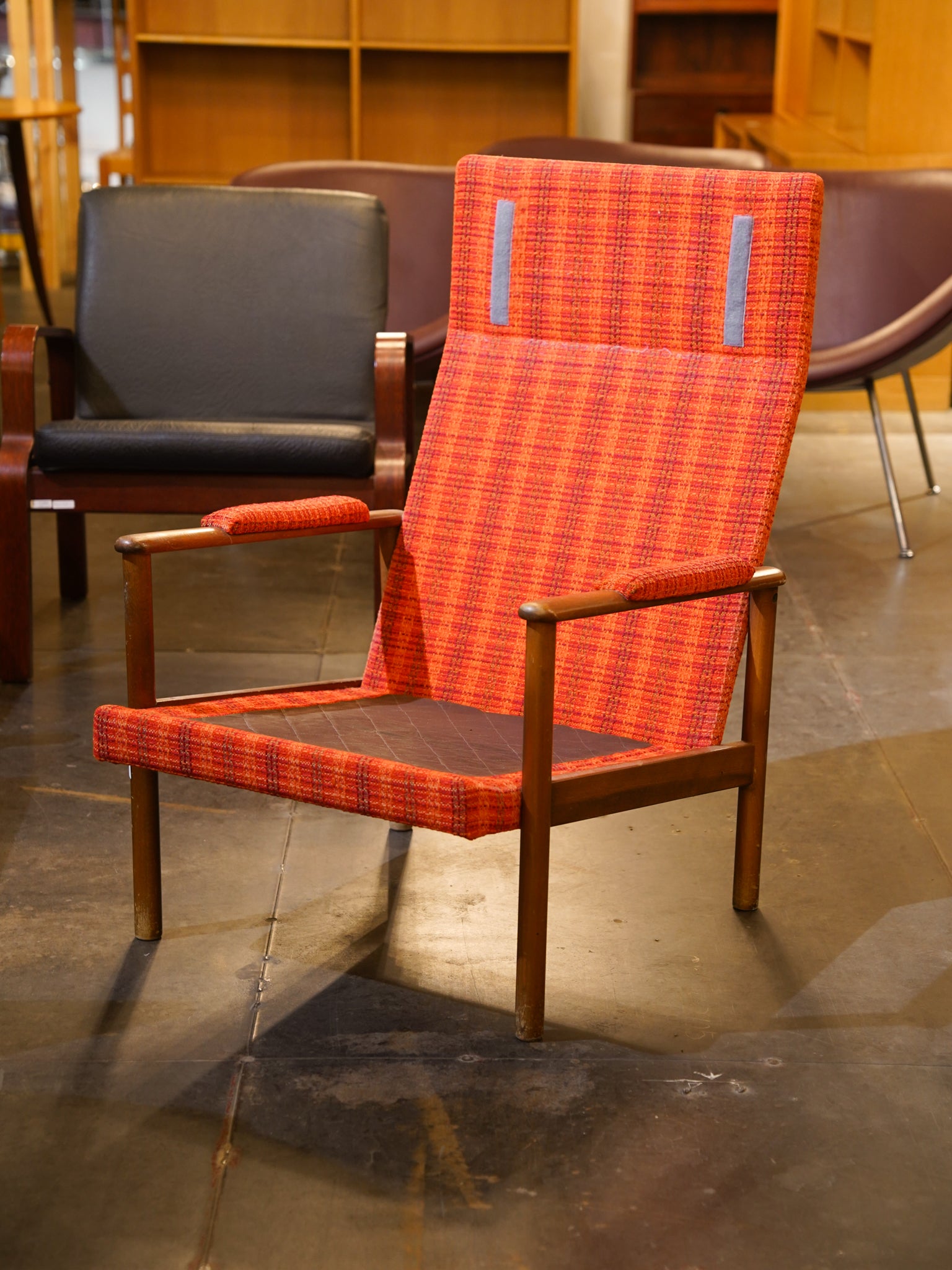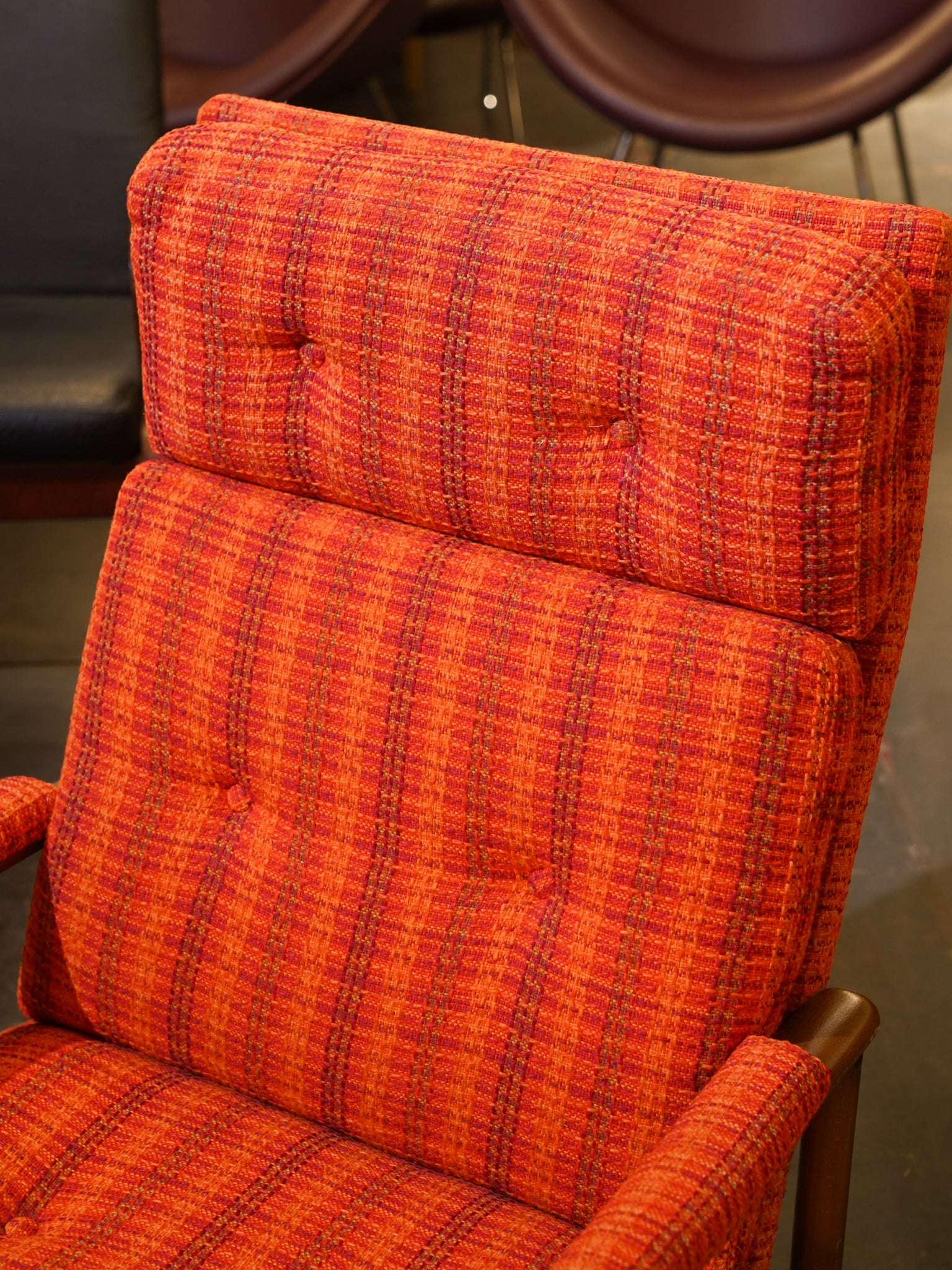 鮮やかなオレンジの織り生地が空間を明るく彩るハイバックイージーチェア