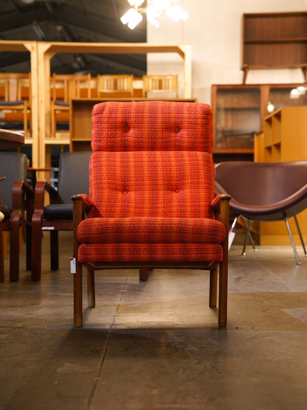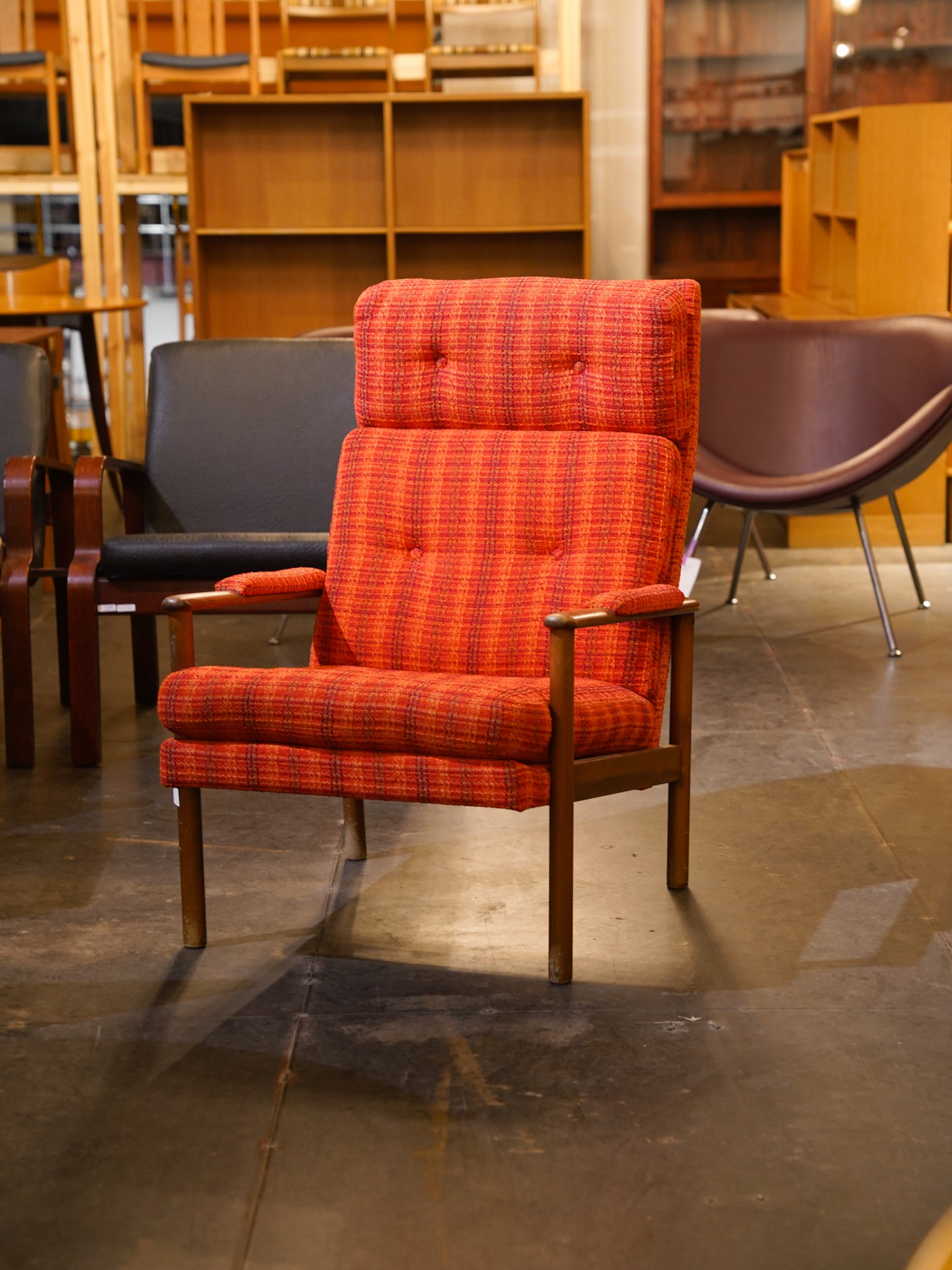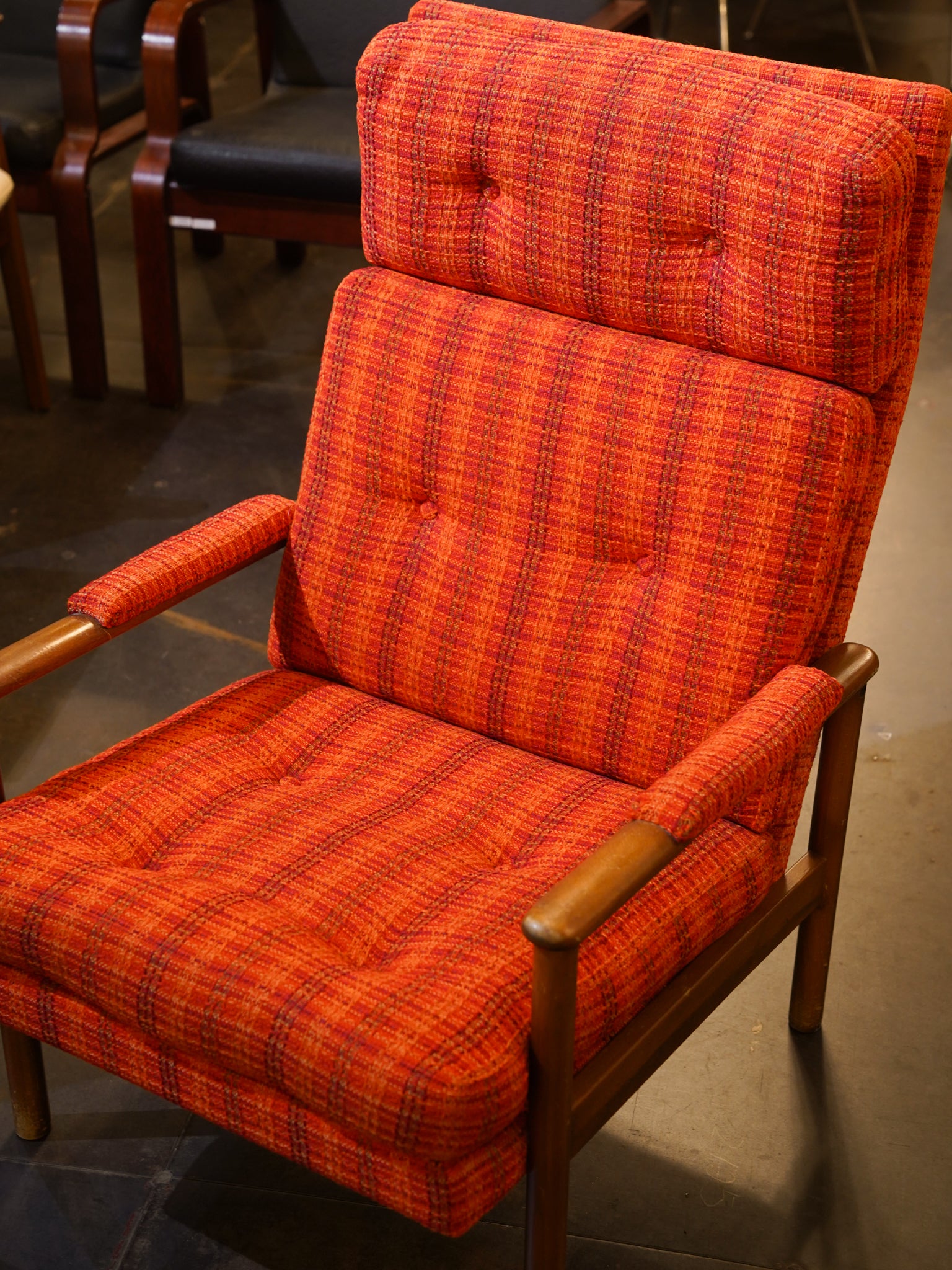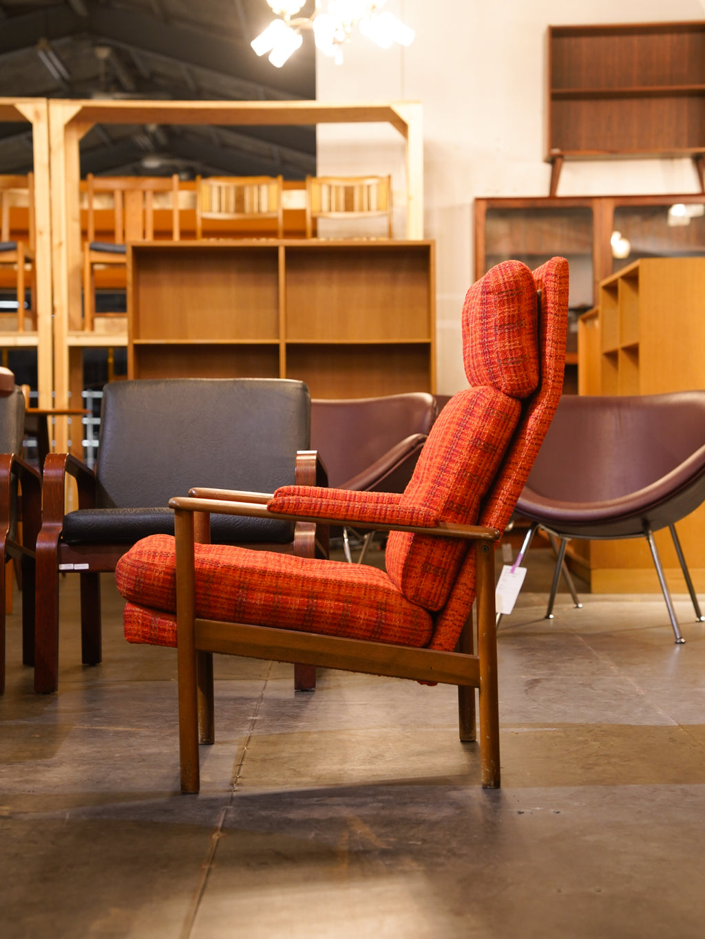 鮮やかなオレンジの織り生地が空間を明るく彩るハイバックイージーチェア