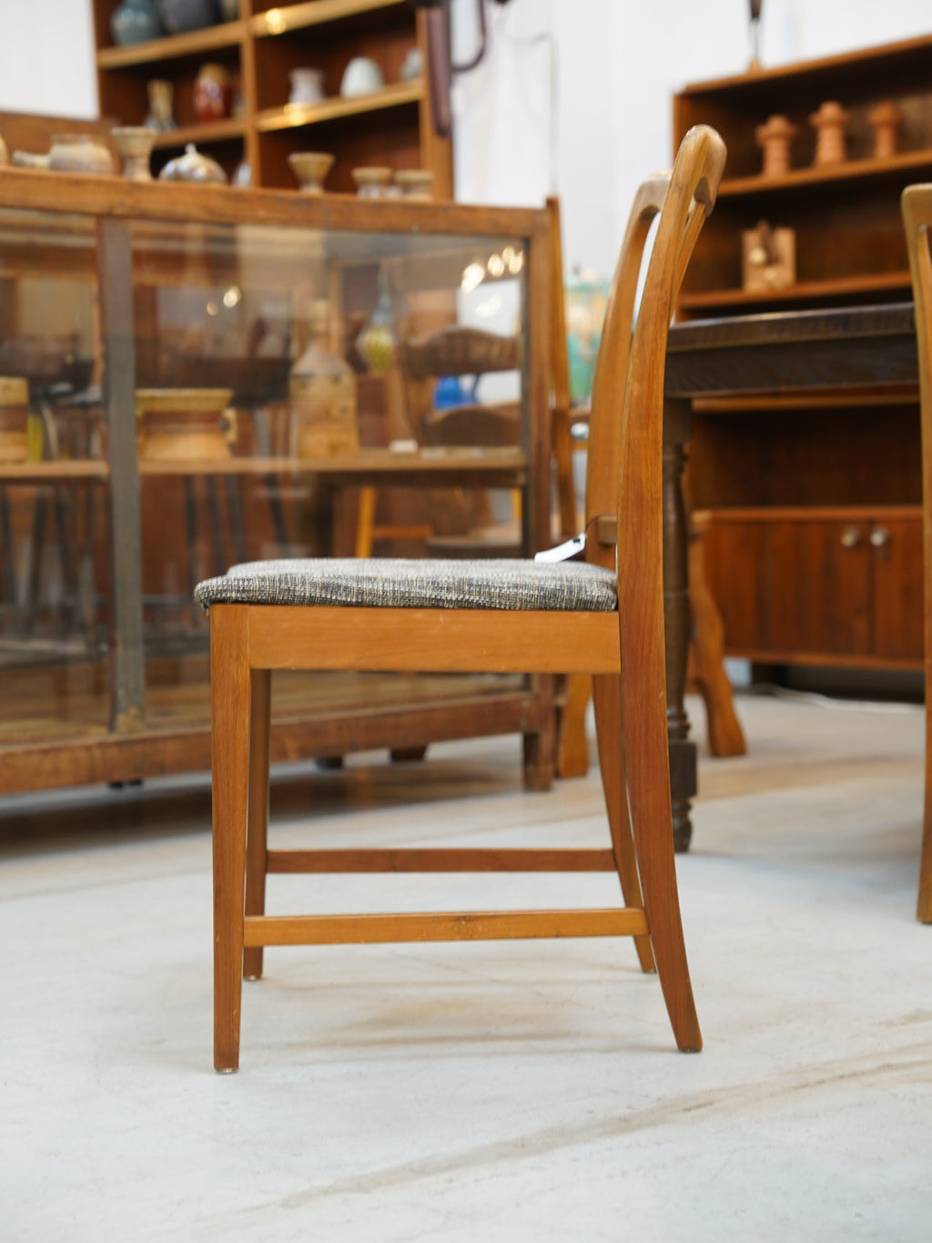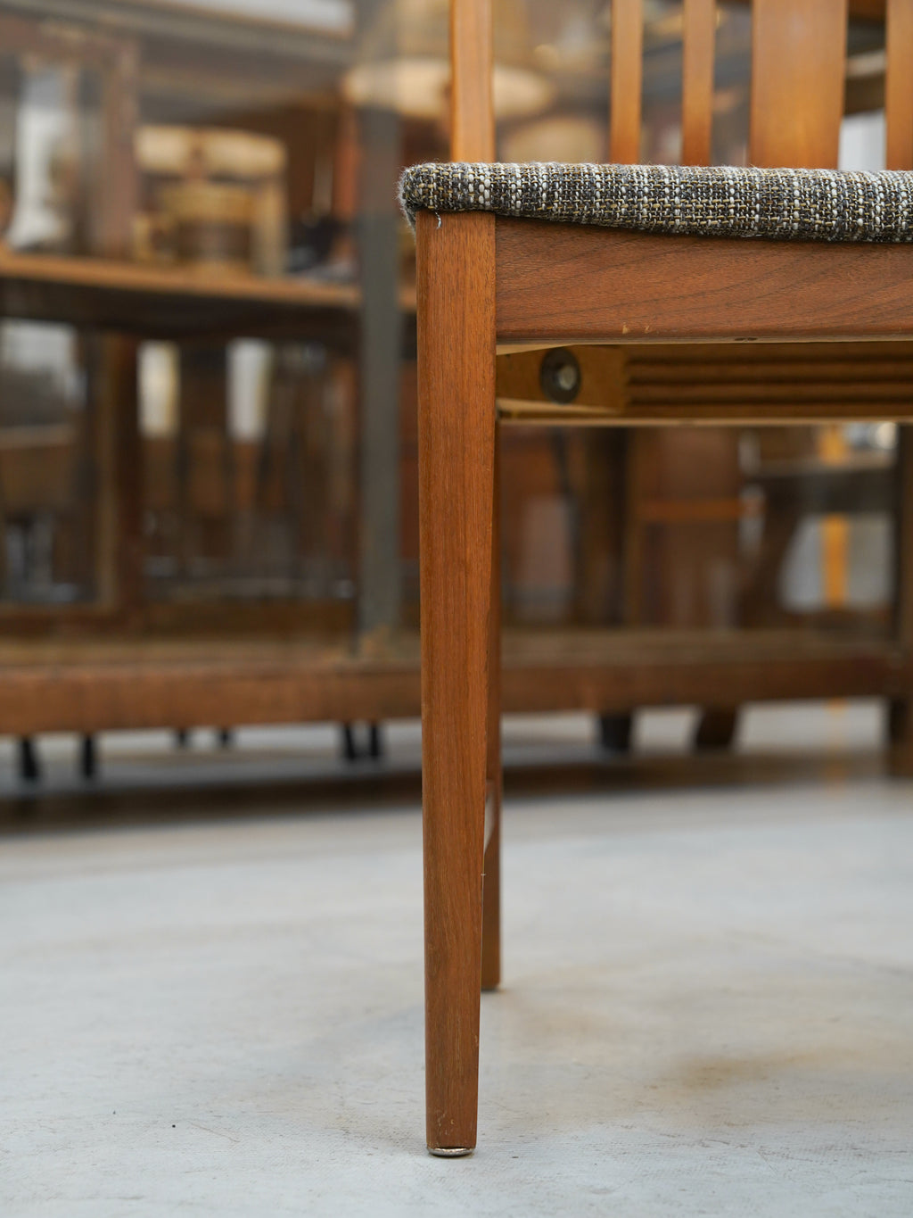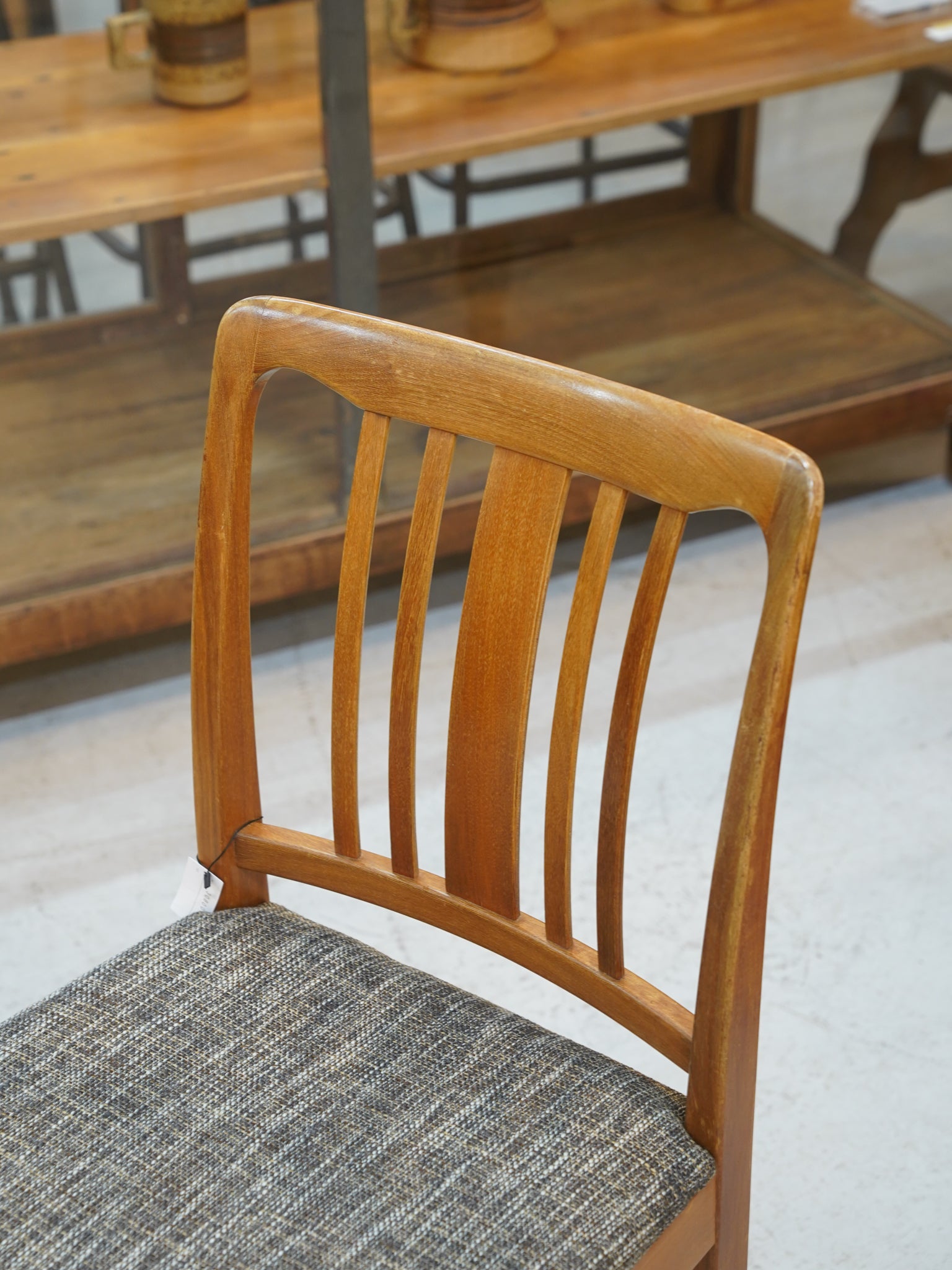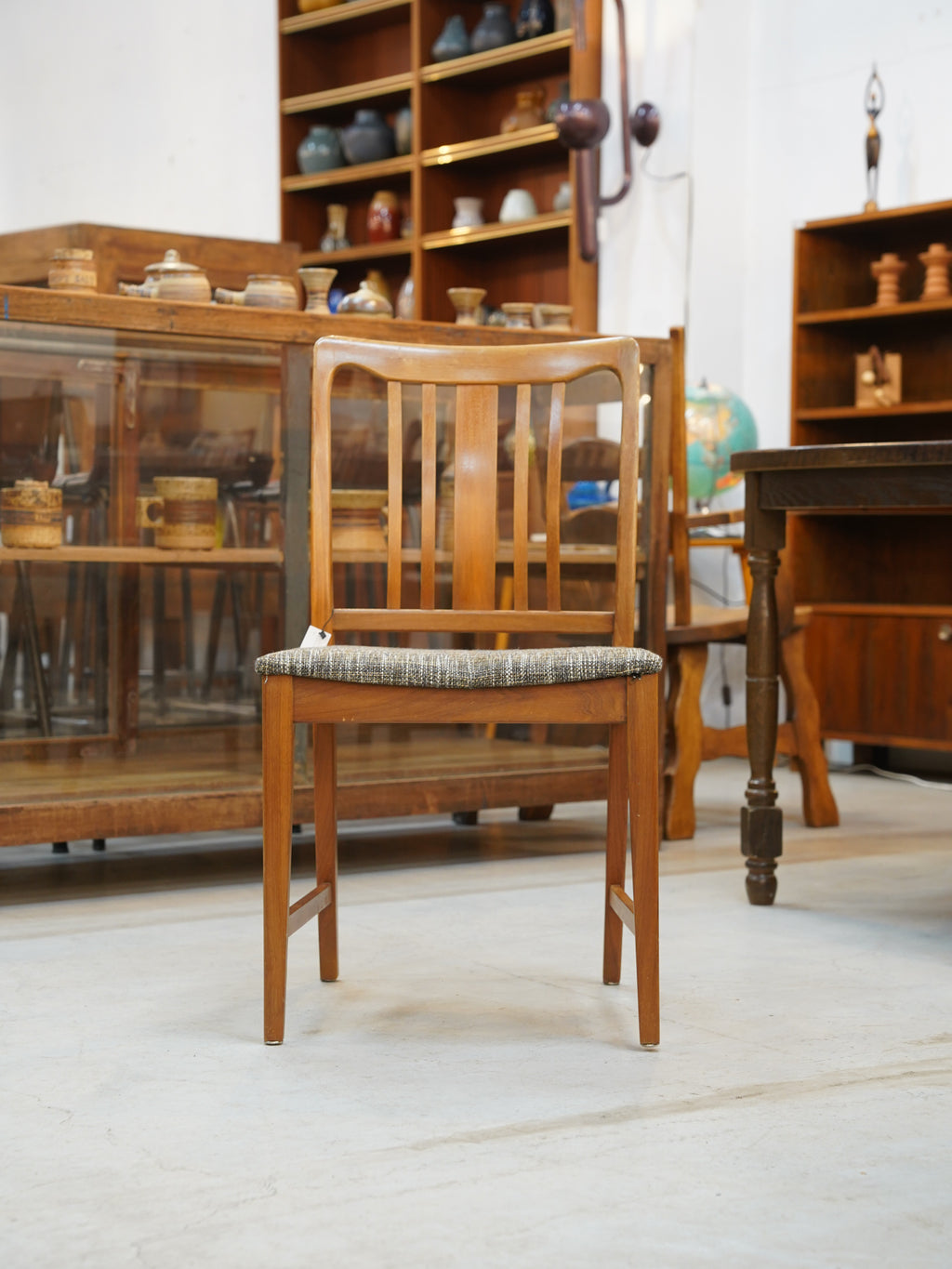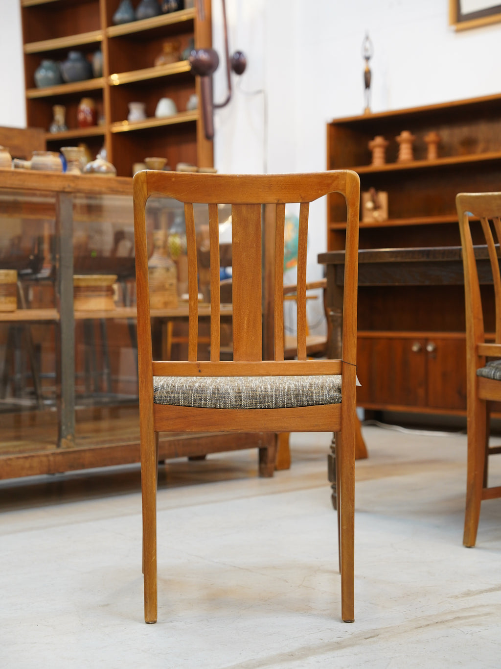 洗練された縦ラインが際立つこの一脚は、モダンな食卓の主役としてはもちろん、壁際に置くだけでも絵になる意匠性の高いヴィンテージ家具です。