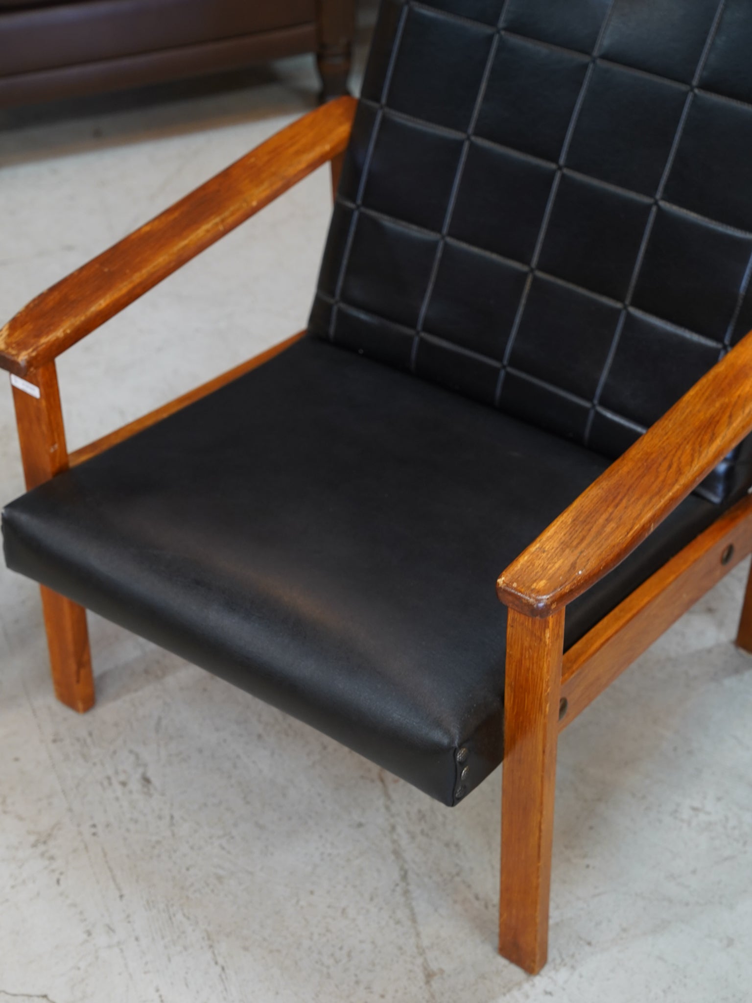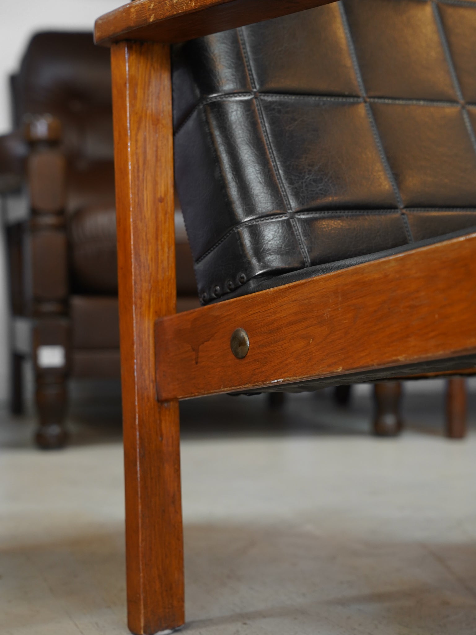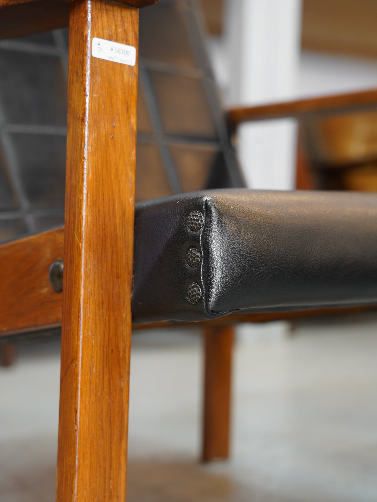 アーム部分は、木の質感をダイレクトに感じられるフラットな仕上げ。経年による小傷や色の変化がヴィンテージならではの「味」として刻まれており、新品にはない奥行きのある表情が魅力です。