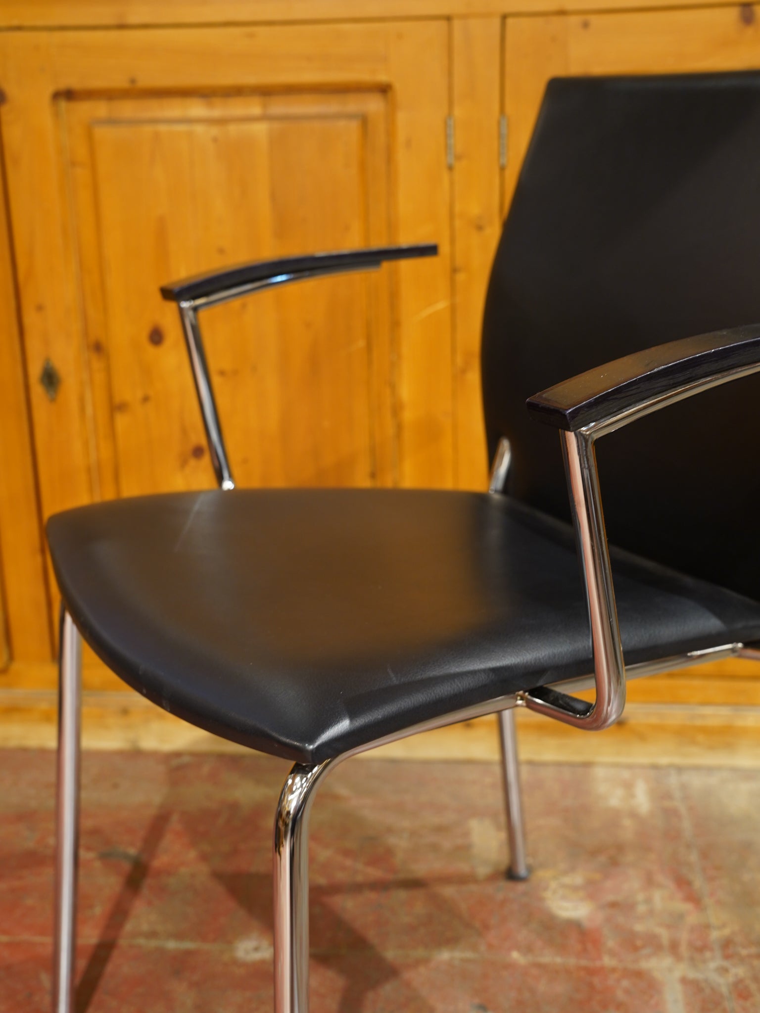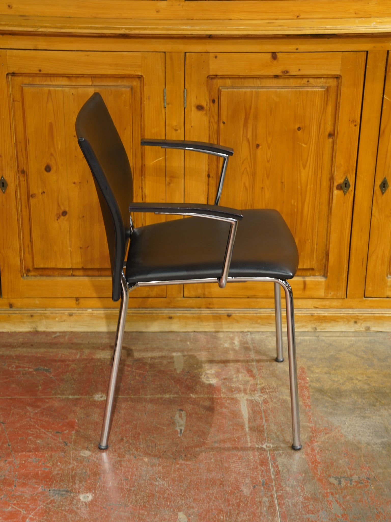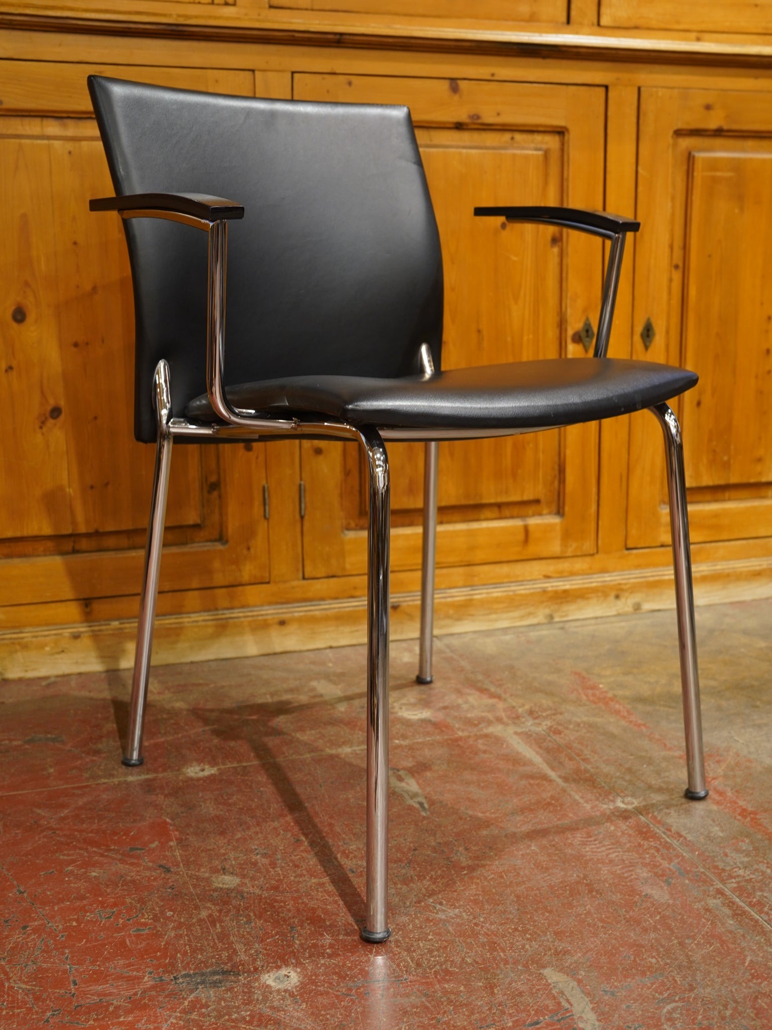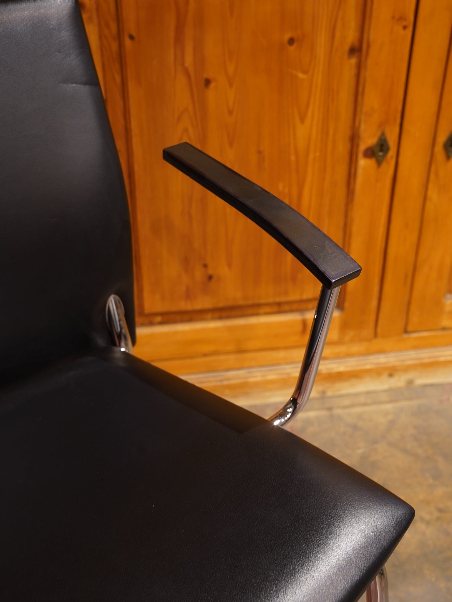 フレームの接合部には、同社の製品であることを証明する「VDS」の刻印が刻まれています。デザイナー Gijs van der Sluis の哲学が反映されたこのモデルは、無駄を削ぎ落とした直線的なクロームフレームと、重厚なブラックの張地が織りなすコントラストが最大の特徴です。