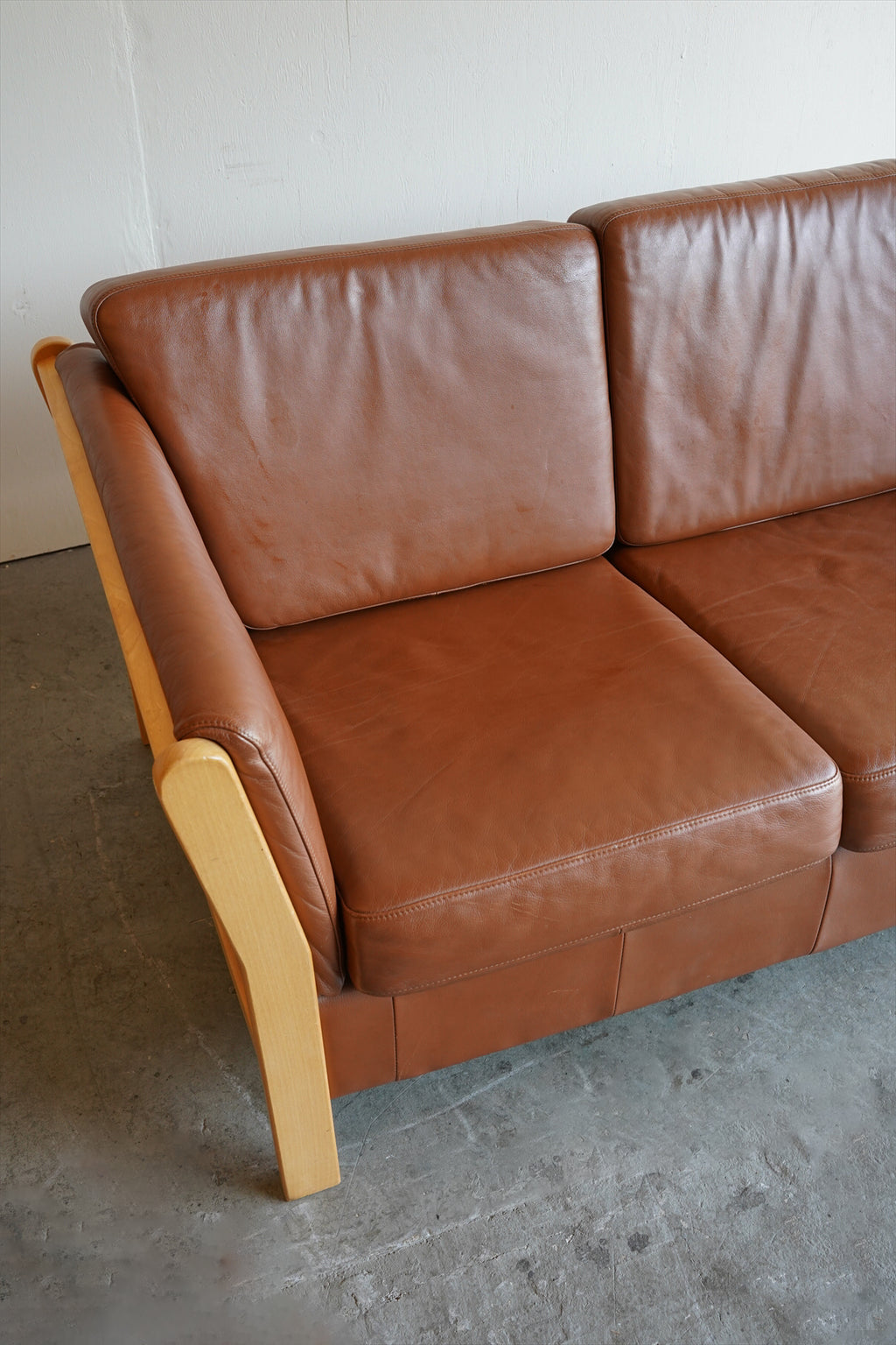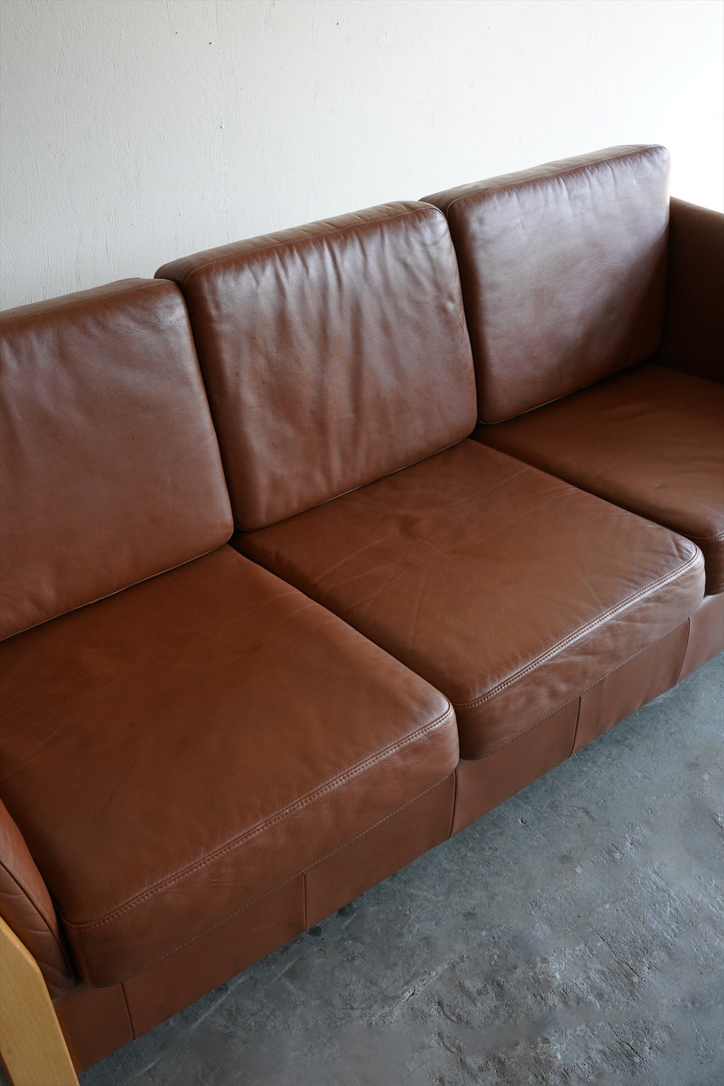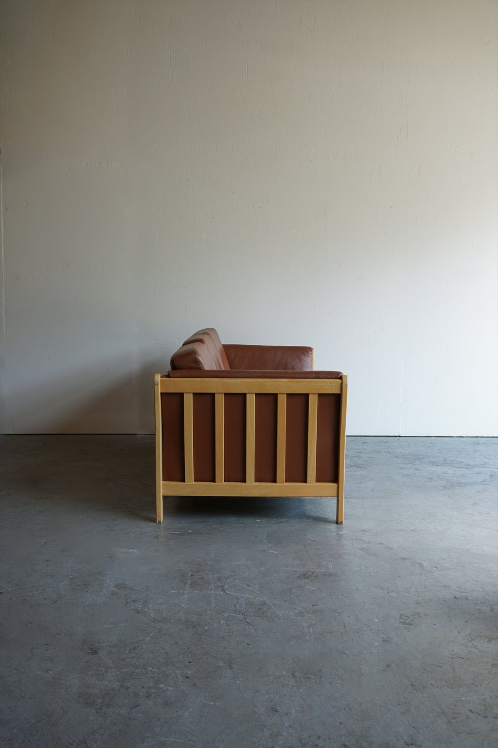 ウッドフレームとレザーの組み合わせが美しい3シーターソファ