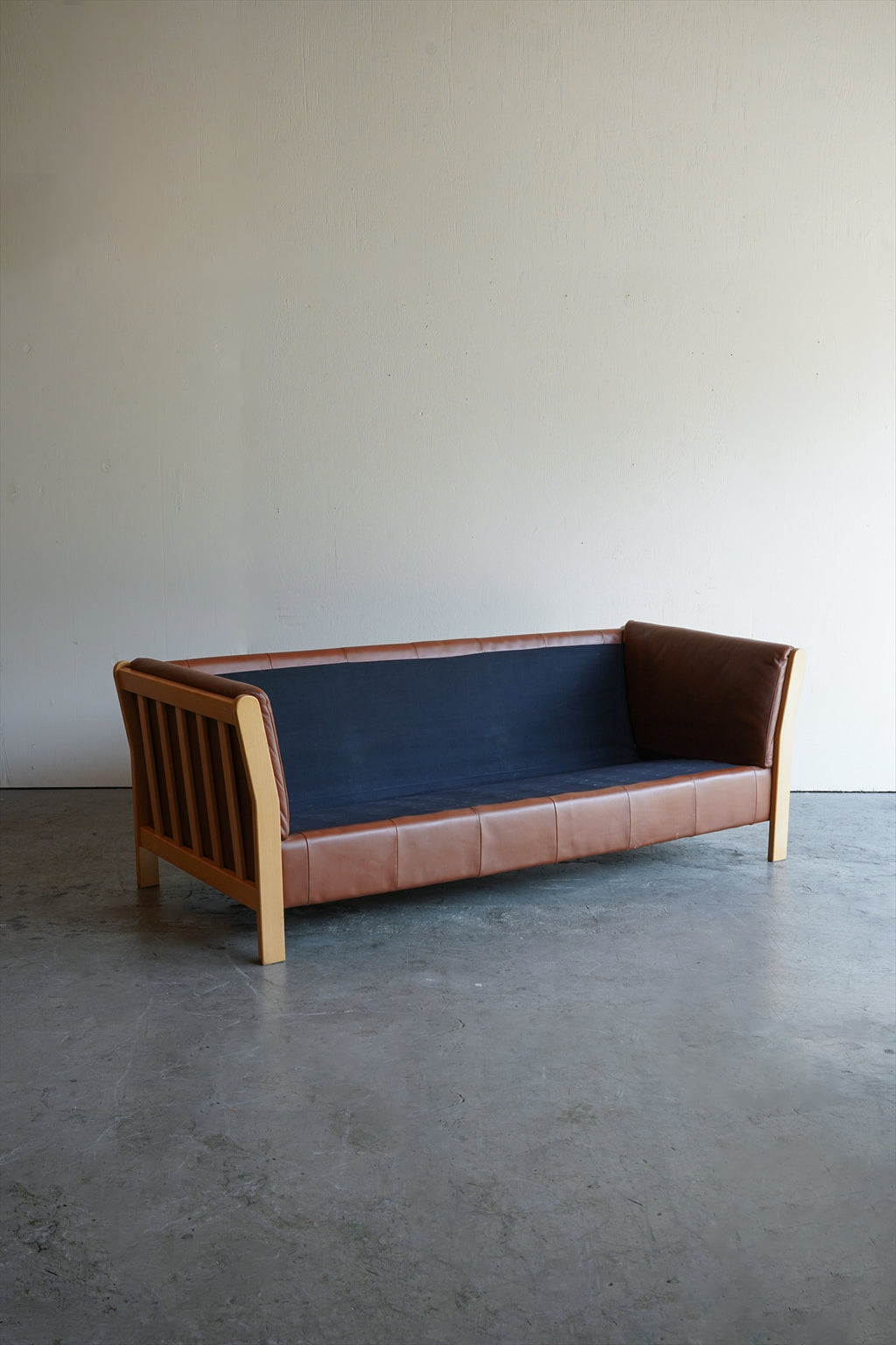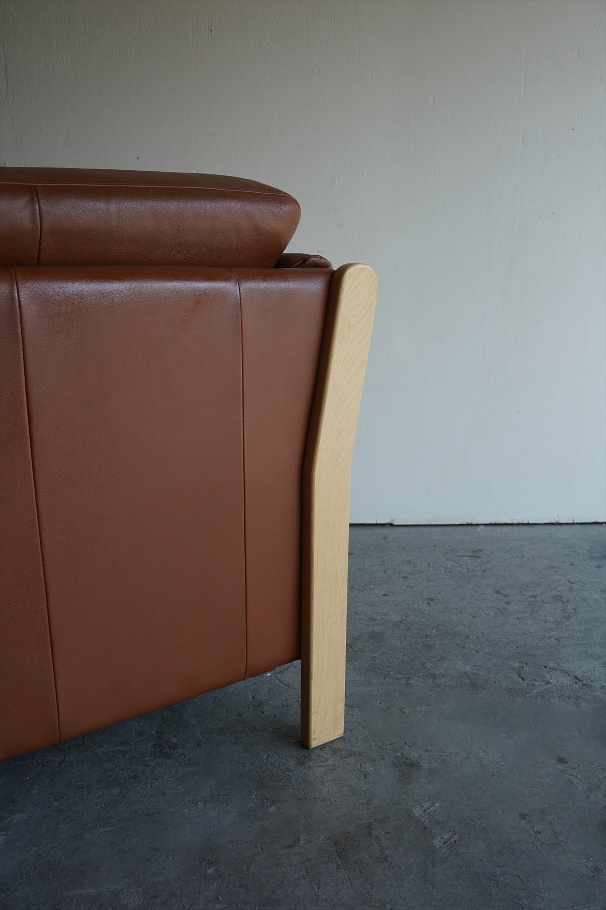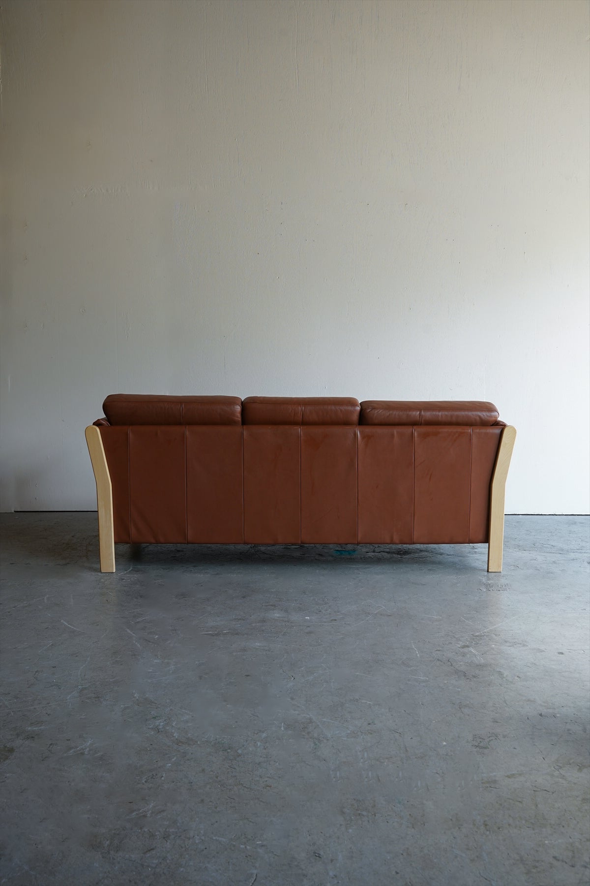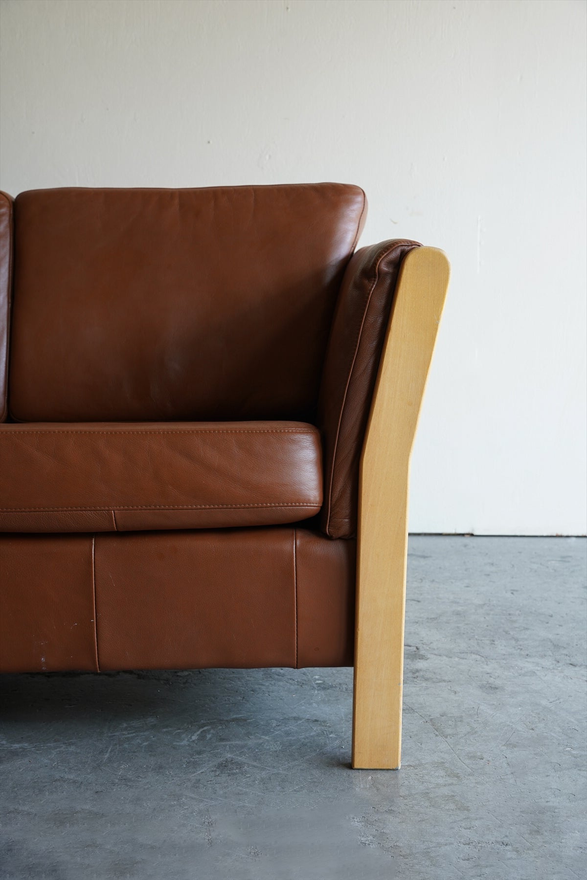 ウッドフレームとレザーの組み合わせが美しい3シーターソファ