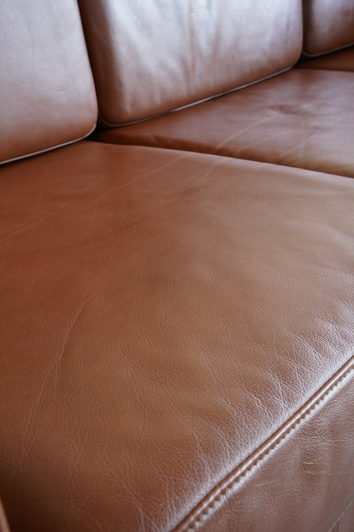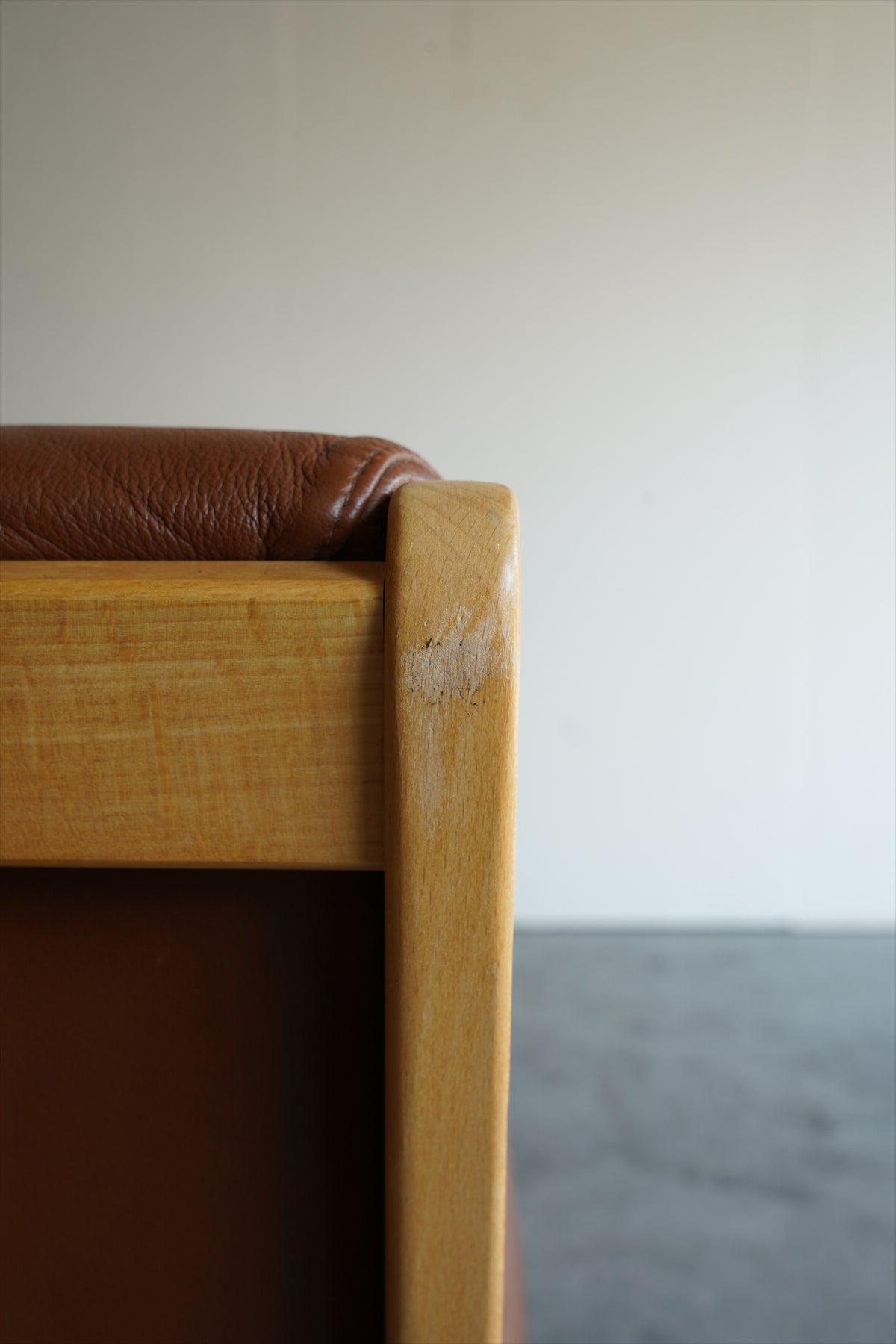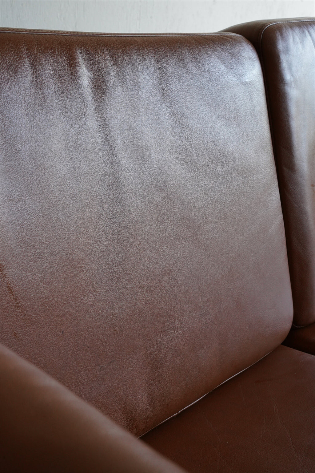 座面と背もたれのクッションには、レザーが使用されています。ほどよい艶とシワが、ヴィンテージならではの味わいを醸し出し、空間に豊かな表情を与えます。