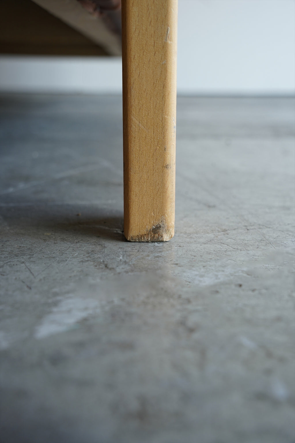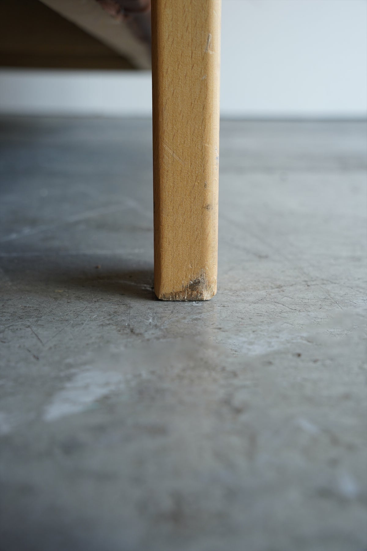 明るい木目のフレームは、すっきりとしながらも温かみのあるデザインで、背もたれ部分のバーが軽やかなアクセントになっています。
