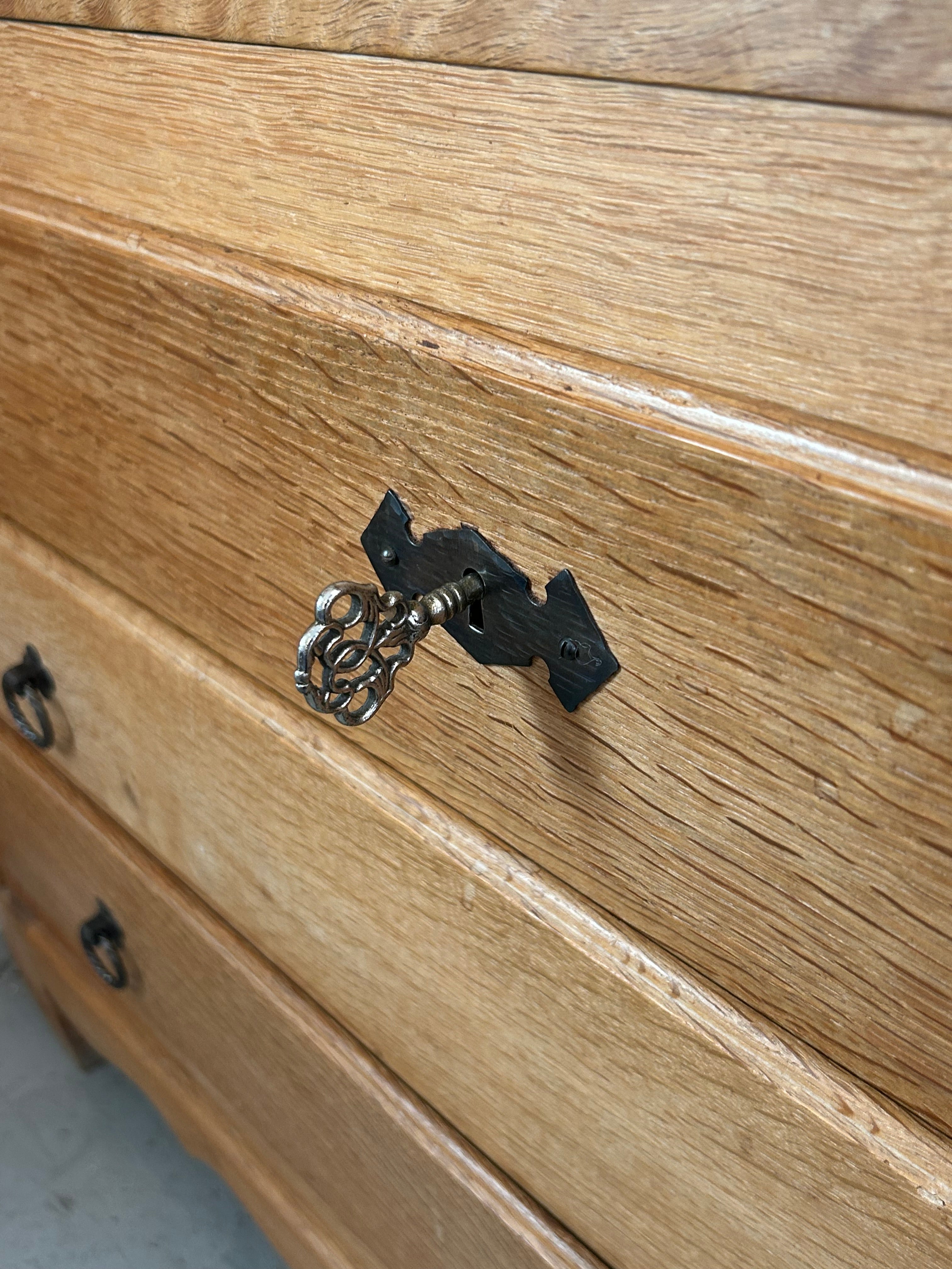 全体のデザインや金具の様式から、おそらくフランスの地方(プロヴァンシャル)で製作されたと推定されます。