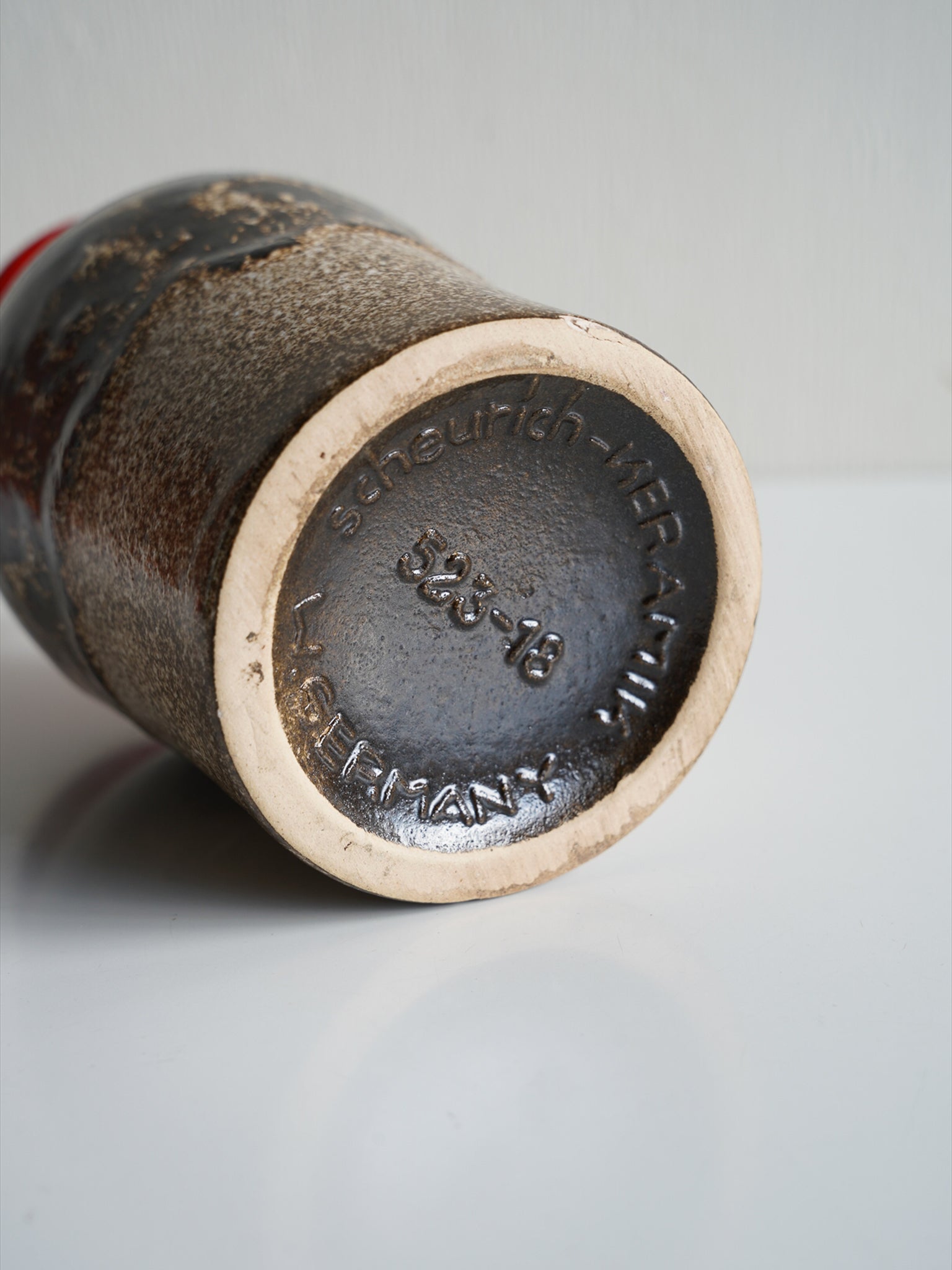 1970年代、西ドイツ陶器のトップブランド Scheurich社が製造したこのフラワーベースは、胴体が三つの異なる表情の釉薬で彩られた大胆なデザインが魅力です。