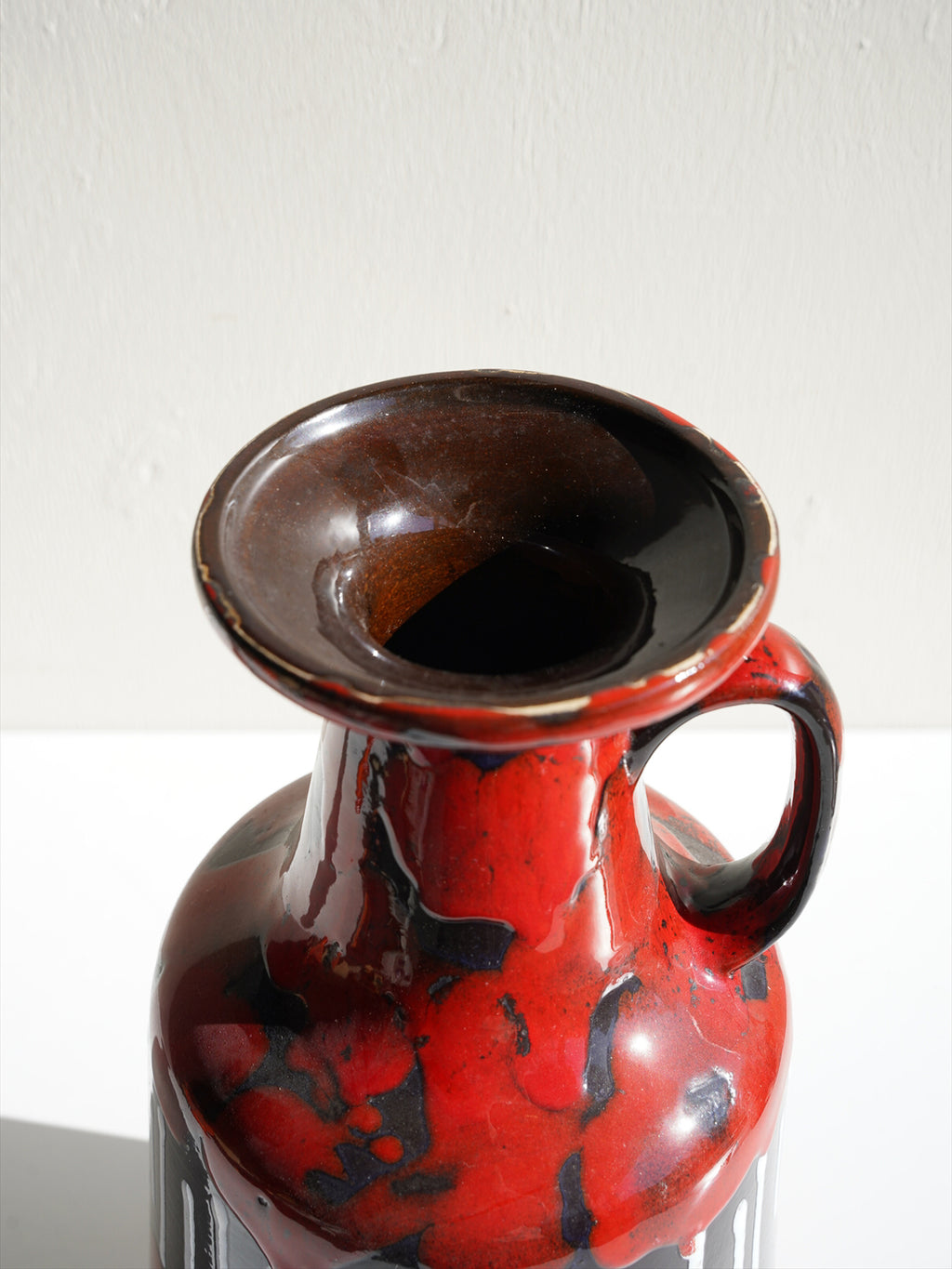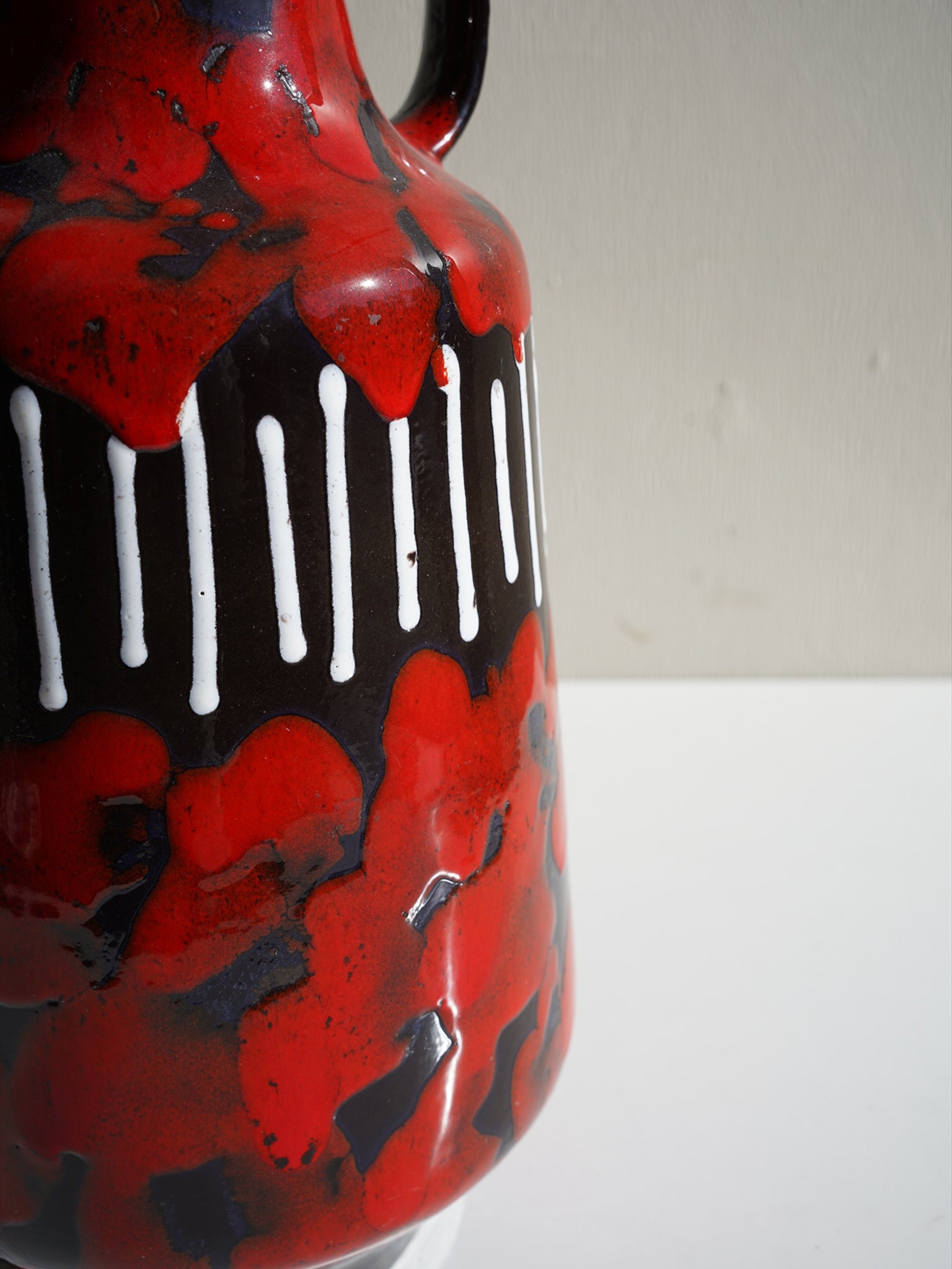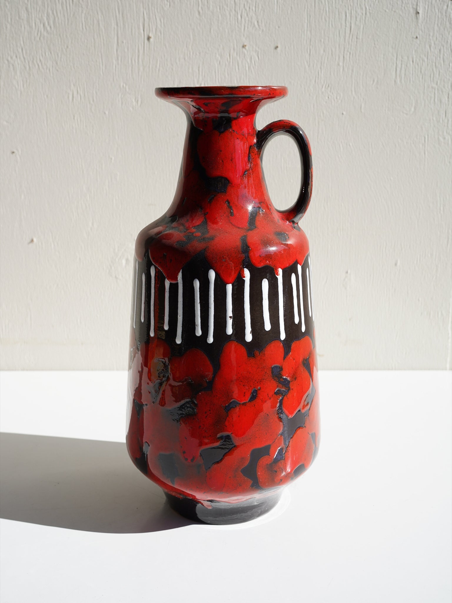 1940年代後半に西ドイツのバルトルフェルトで設立され、主に花器や装飾陶器を製造していました。 特に1960年代後半から70年代初頭にかけて、大胆なFat Lava釉と鮮やかな色彩を組み合わせたデザインで知られます。 赤と黒の激しい釉薬に白いストライプなどのグラフィカルな装飾を施す、視覚的にインパクトの強いスタイルを得意としました。 同社は比較的小規模ながら、その実験的で力強いデザインにより、現在も世界中のコレクターから高い評価を得ています。