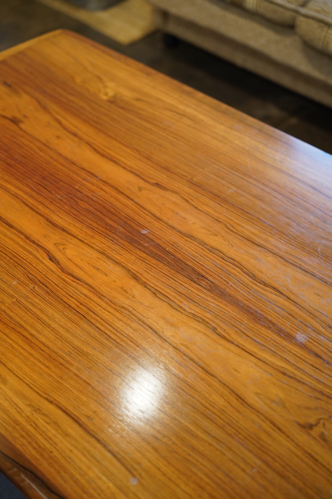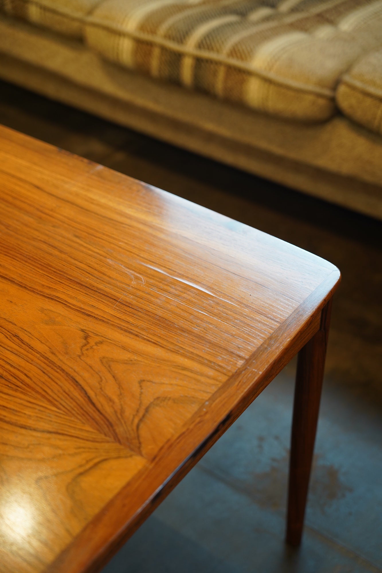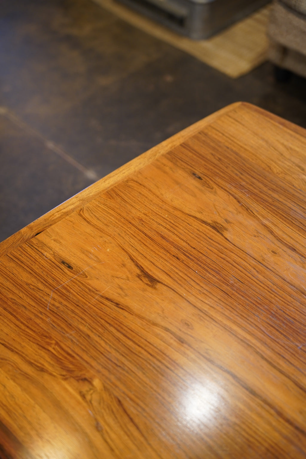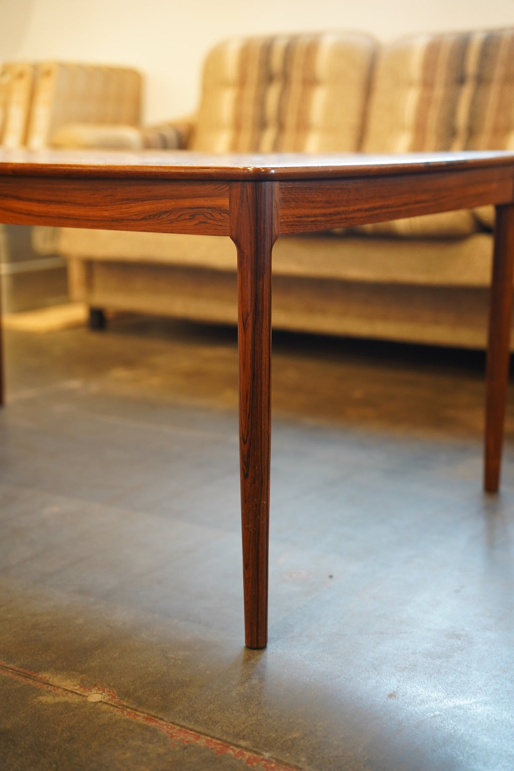 世界三大銘木の一つであるローズウッドが贅沢に使用されており、流れるような美しい木目と、深みのある色合いが特徴です。シンプルで洗練されたフォルムは、ミッドセンチュリーモダンデザインの真骨頂といえるでしょう。