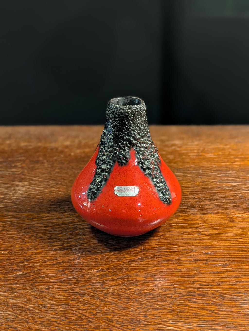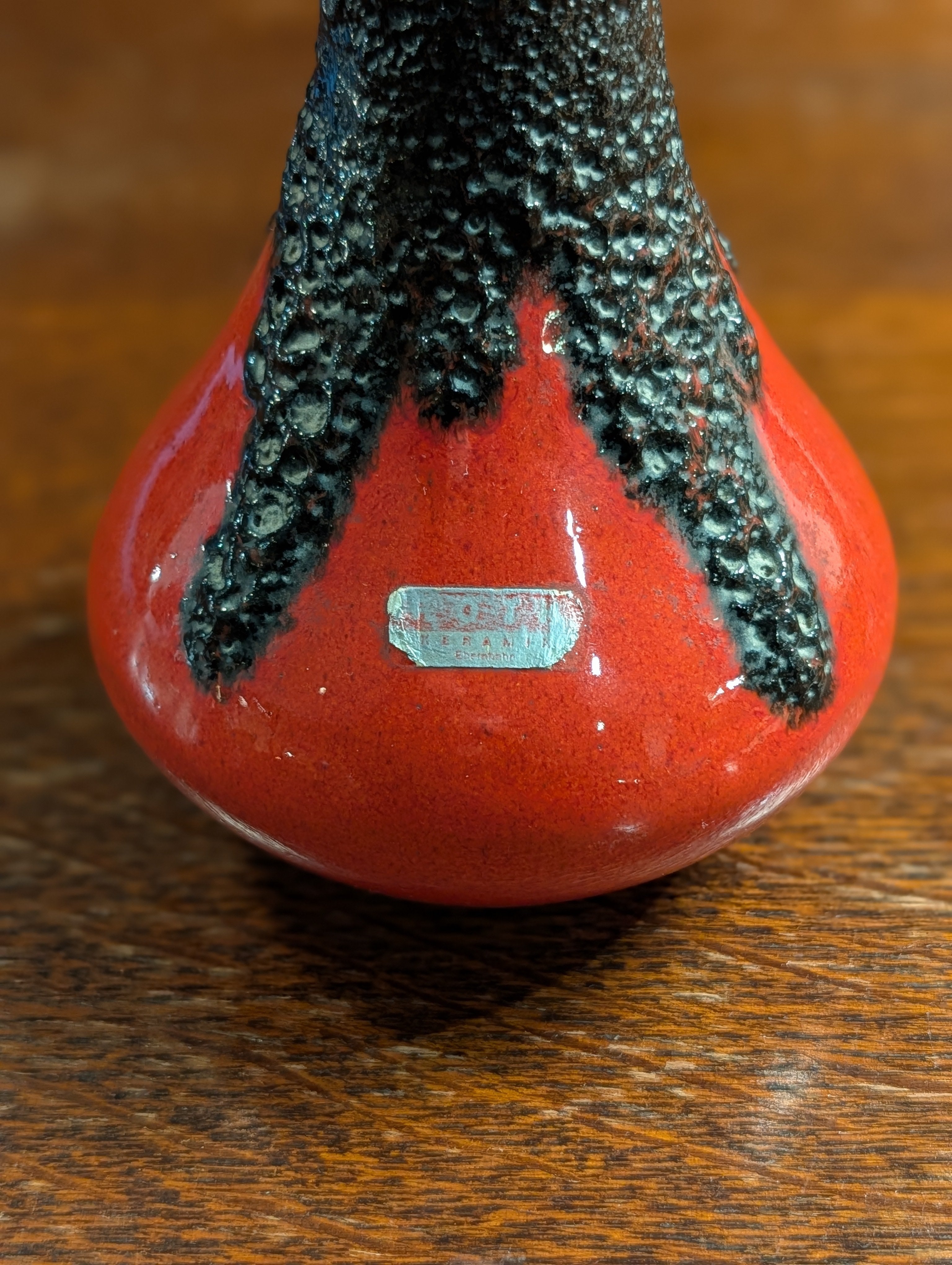 鮮やかな釉薬と上部の荒々しいテクスチャのコントラストが際立つセラミックフラワーベース。