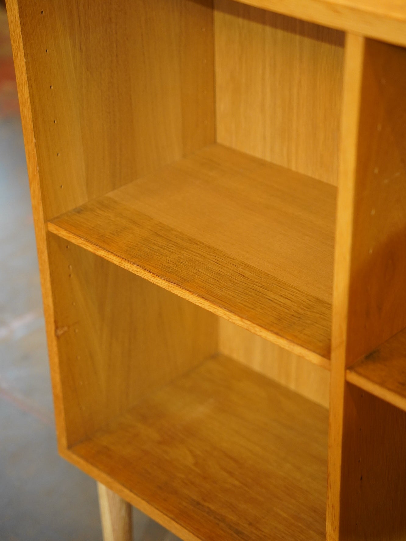 左右・上下に仕切られた4つの収納スペースは、お気に入りの本やレコード、小物を飾るディスプレイ棚として最適です。圧迫感のないデザインで、お部屋に開放感を与えます。