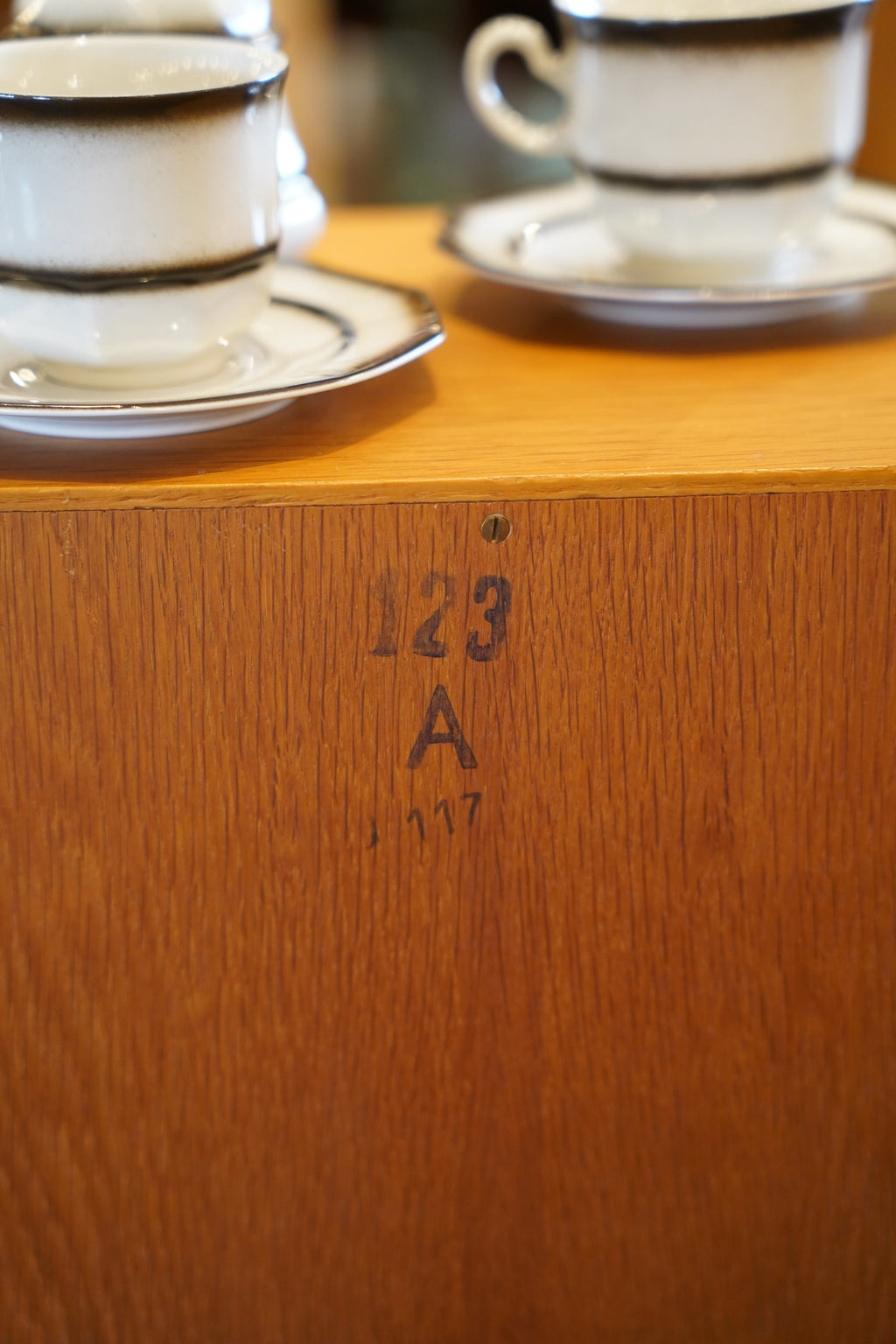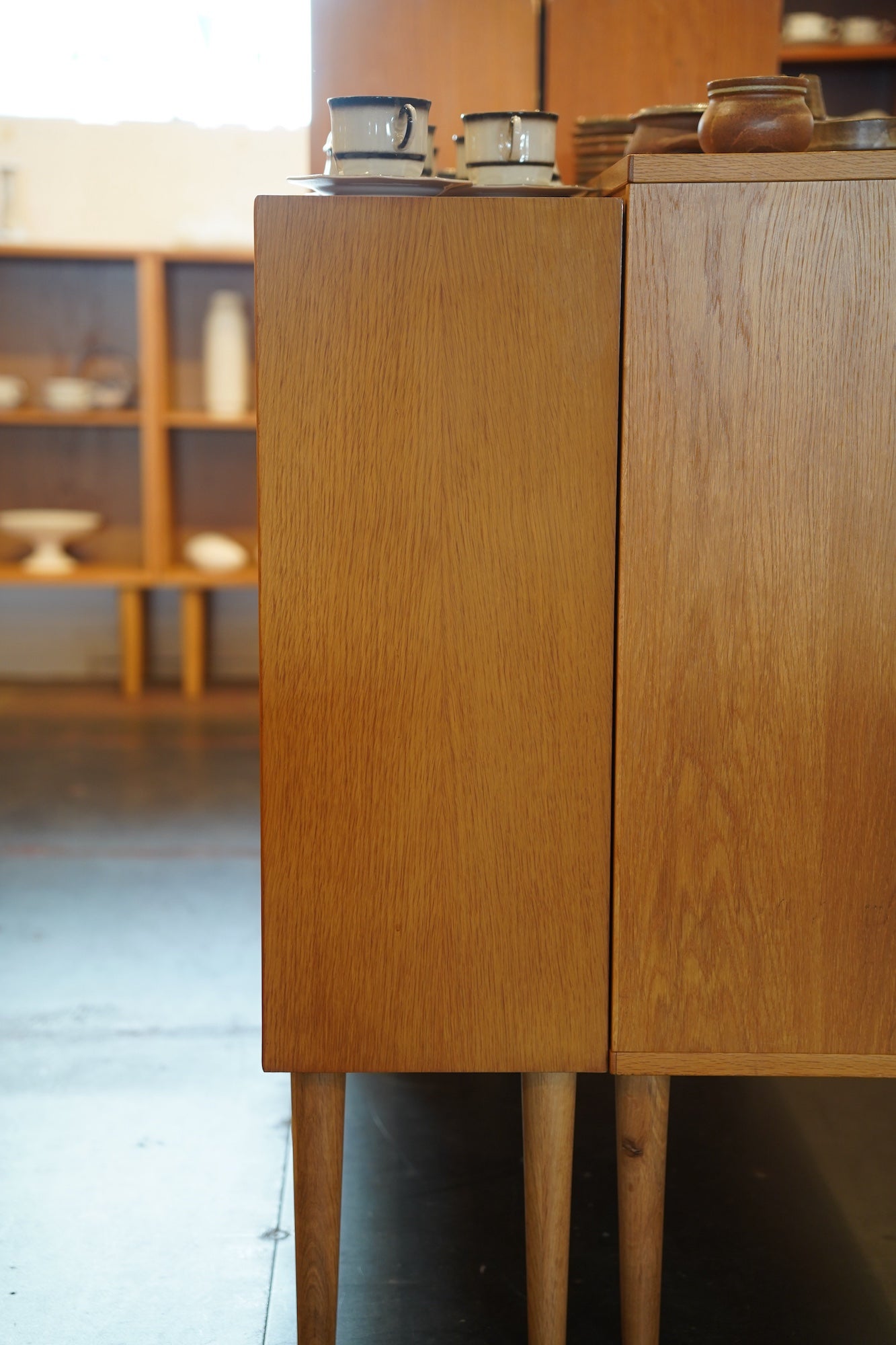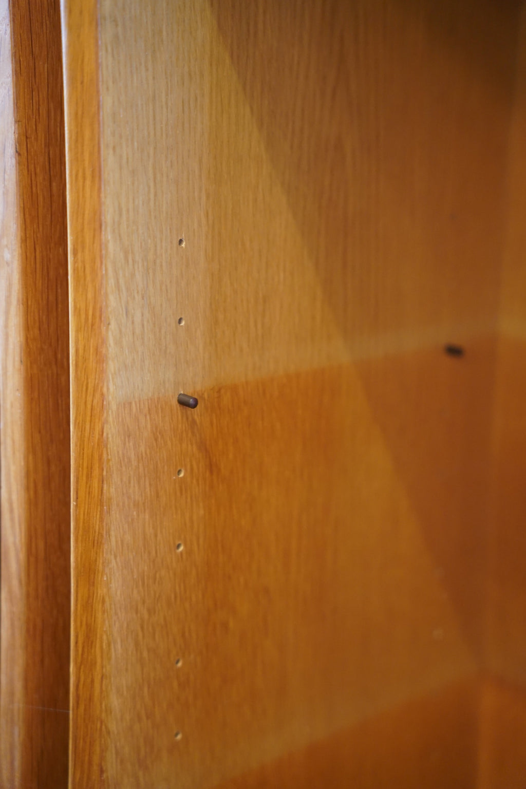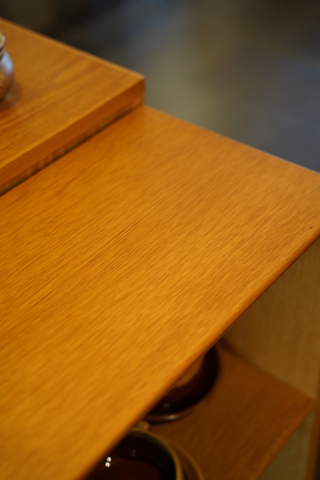 シンプルで洗練されたデザインが、空間に温もりと個性を加えるオーク材ディスプレイキャビネット