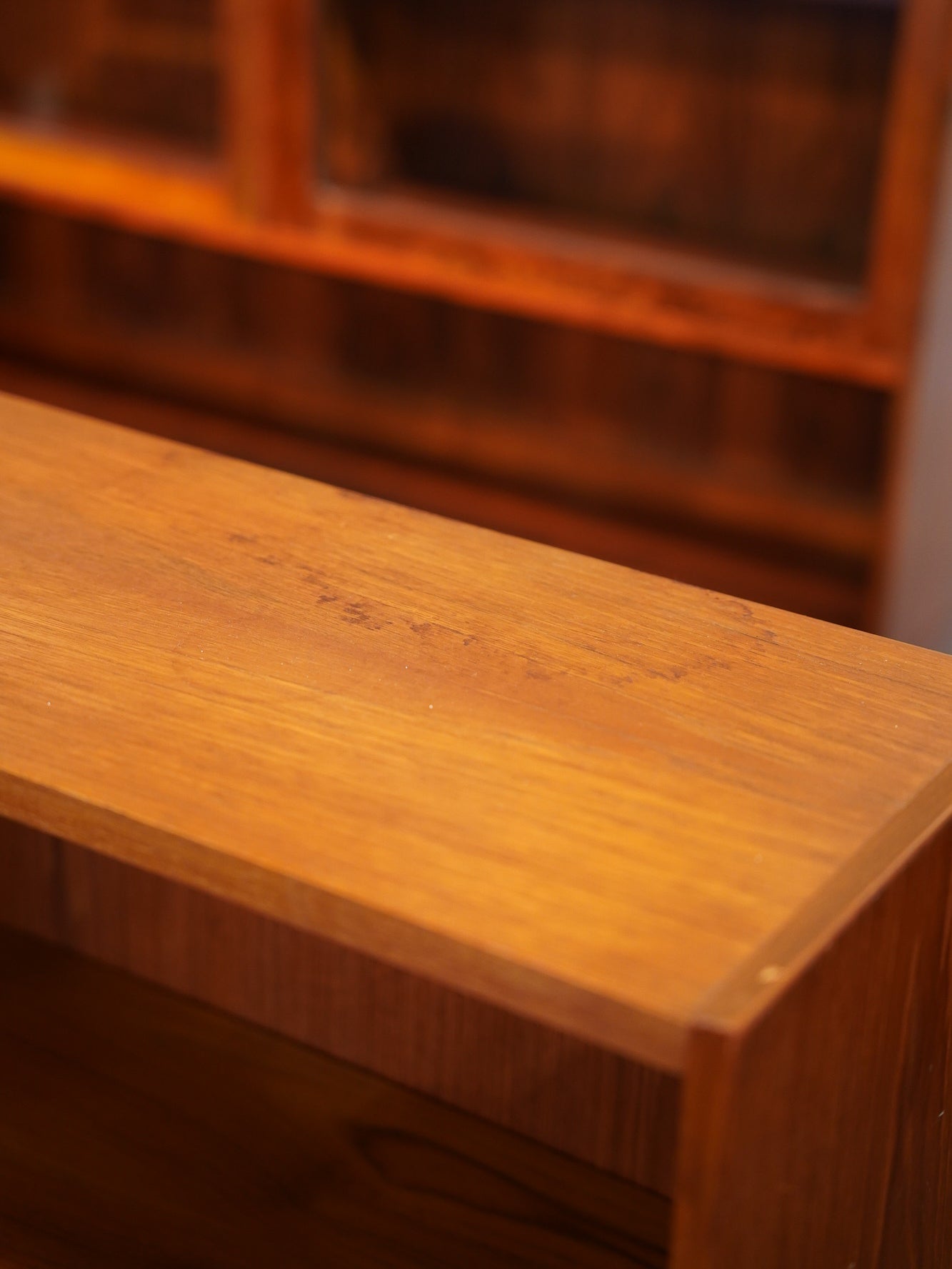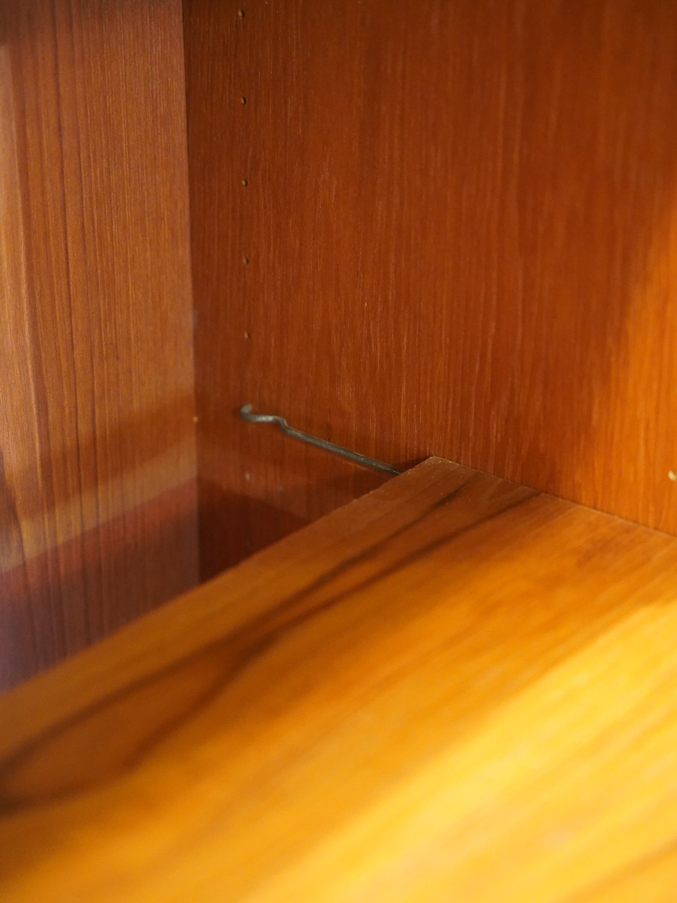 主材には、経年変化により深い味わいを増したチーク材が使用されています。チーク材特有の美しい木目と、赤みのある暖かな色合いが、お部屋に落ち着きと心地よさをもたらします。
