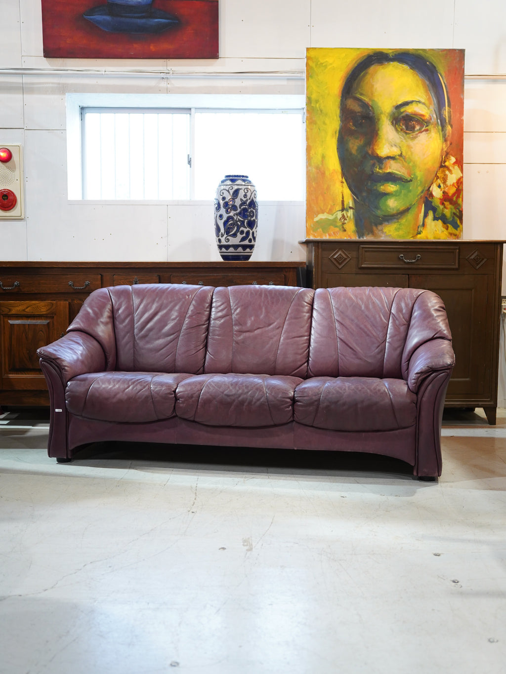 豪華な寛ぎを提供する、本革3人掛けソファ