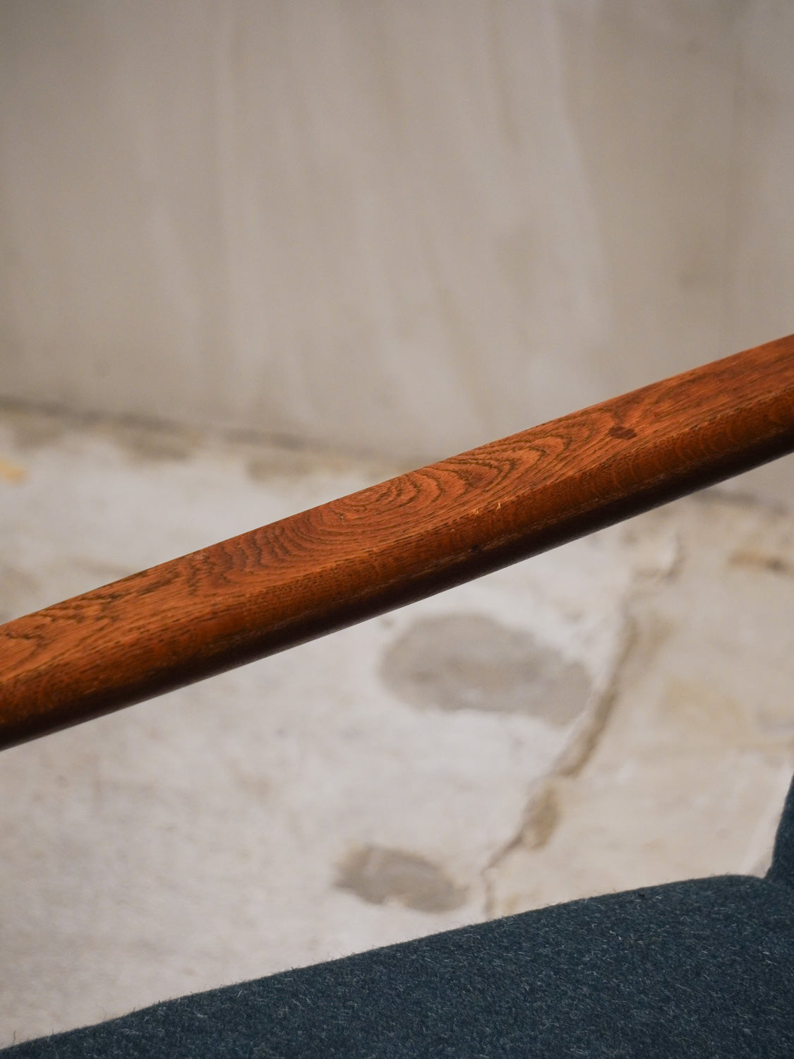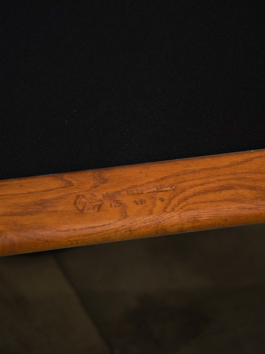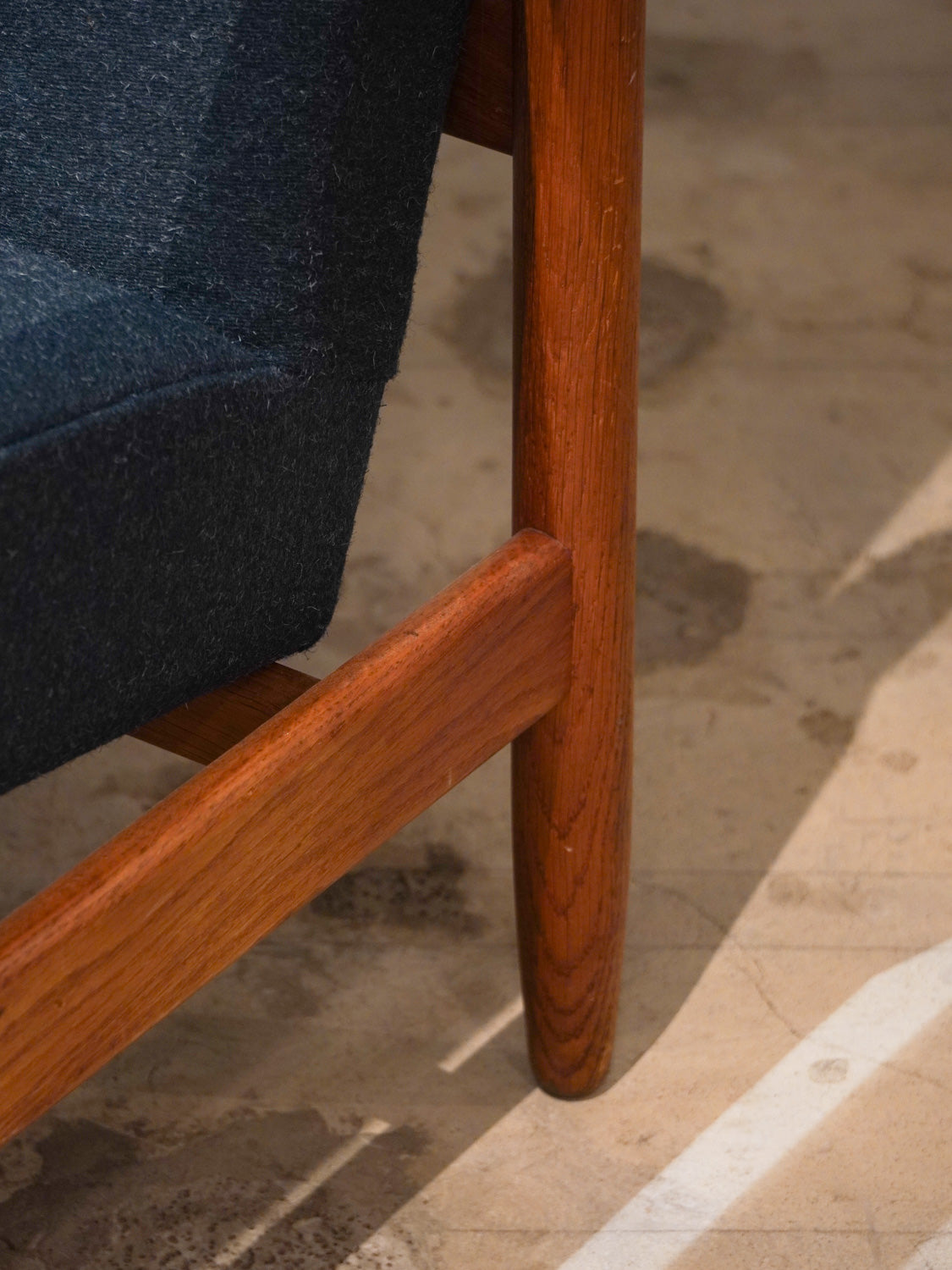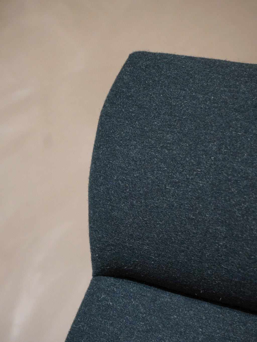 温かみのあるオーク材のフレームと、深みのあるグリーンのファブリックが見事に調和した、北欧ヴィンテージらしい逸品です。