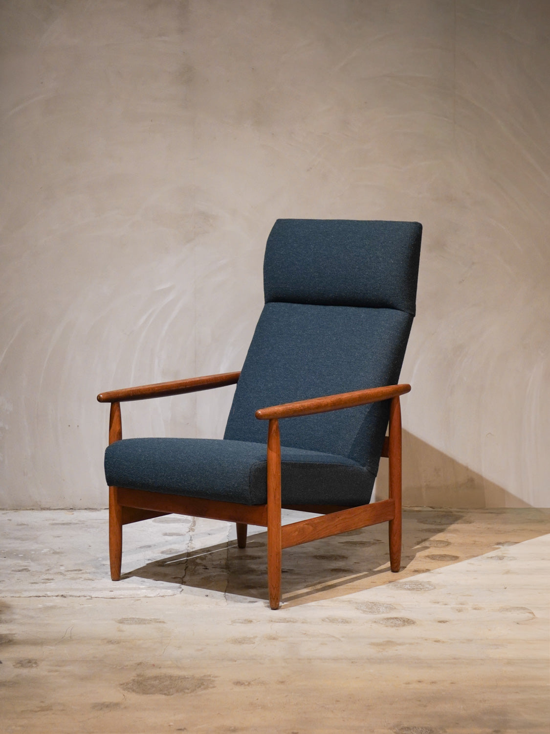 デンマークの著名なデザイナー、アイヴィン・A・ヨハンソンがFDBモブラーのためにデザインしたハイバックチェア「Model J65」。