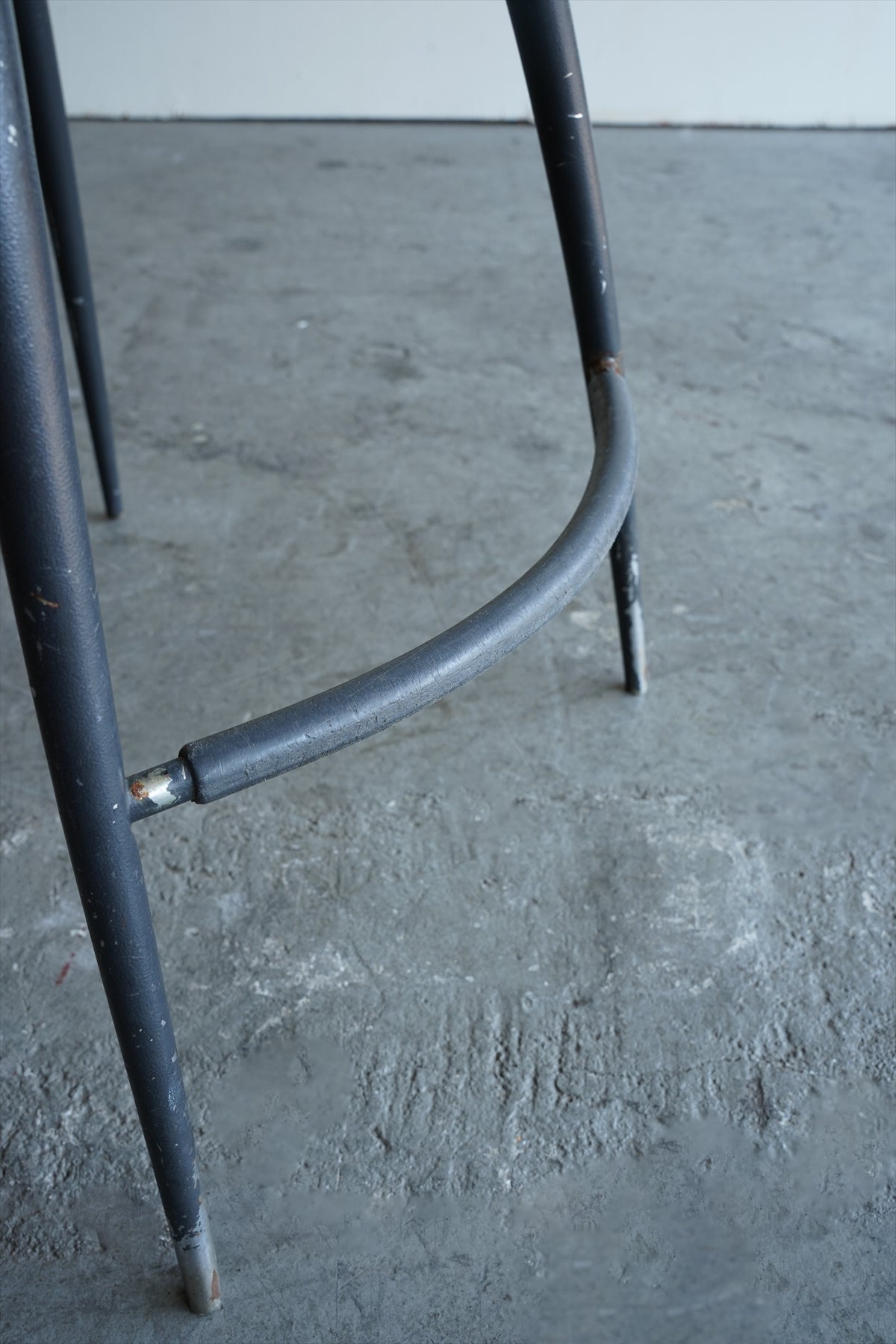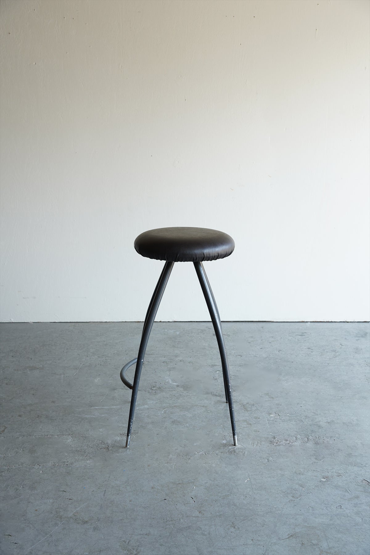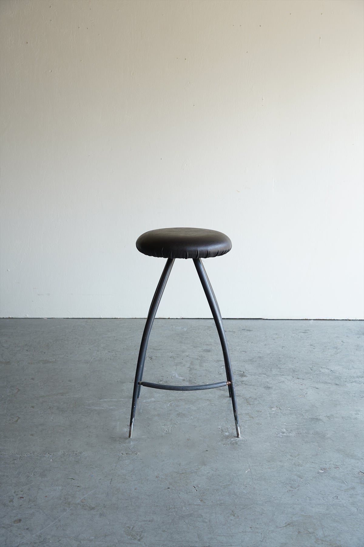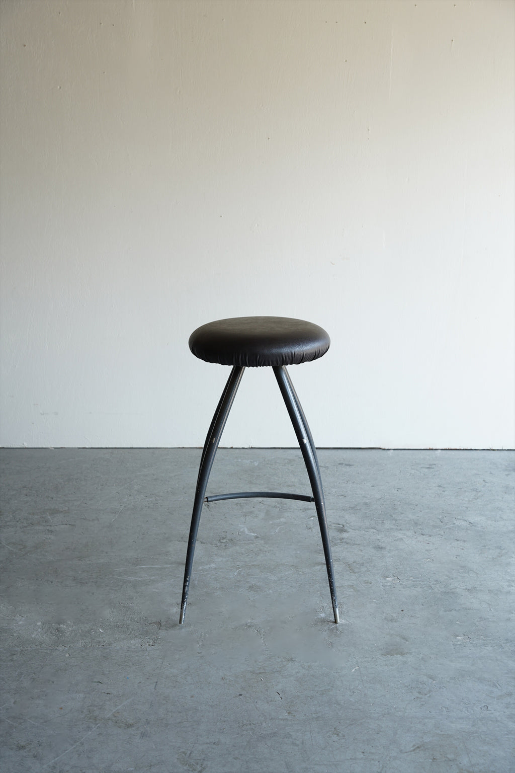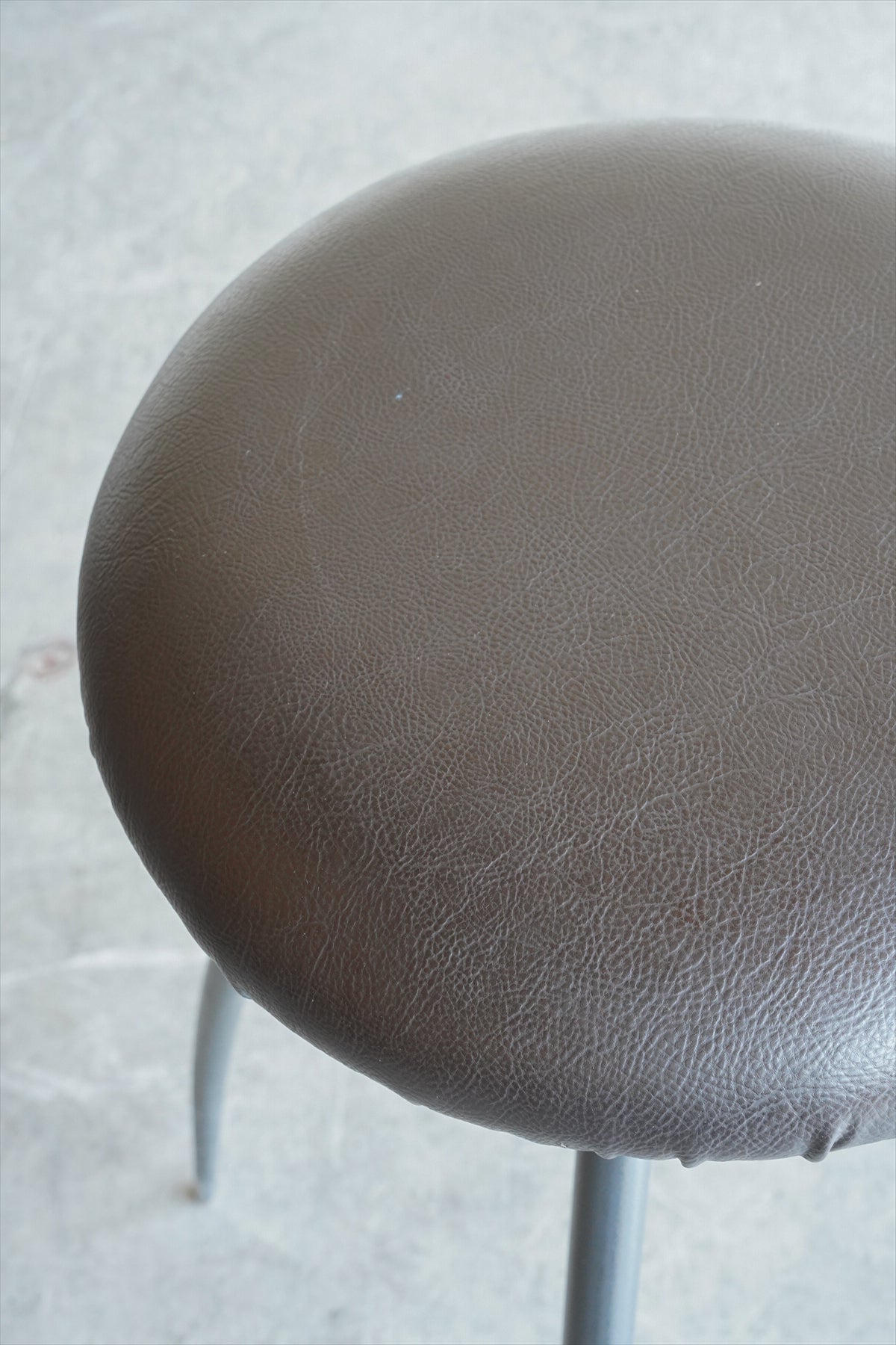 座面にはクッション性のあるブラックレザーが張られており、硬質なスチールのフレームとのコントラストが、デザインの完成度を一層高めています。素材の持つ質感が際立つこのスツールは、カウンターやバーテーブルに合わせるだけでなく、リビングや書斎で、オブジェのように飾っても絵になる一脚です。