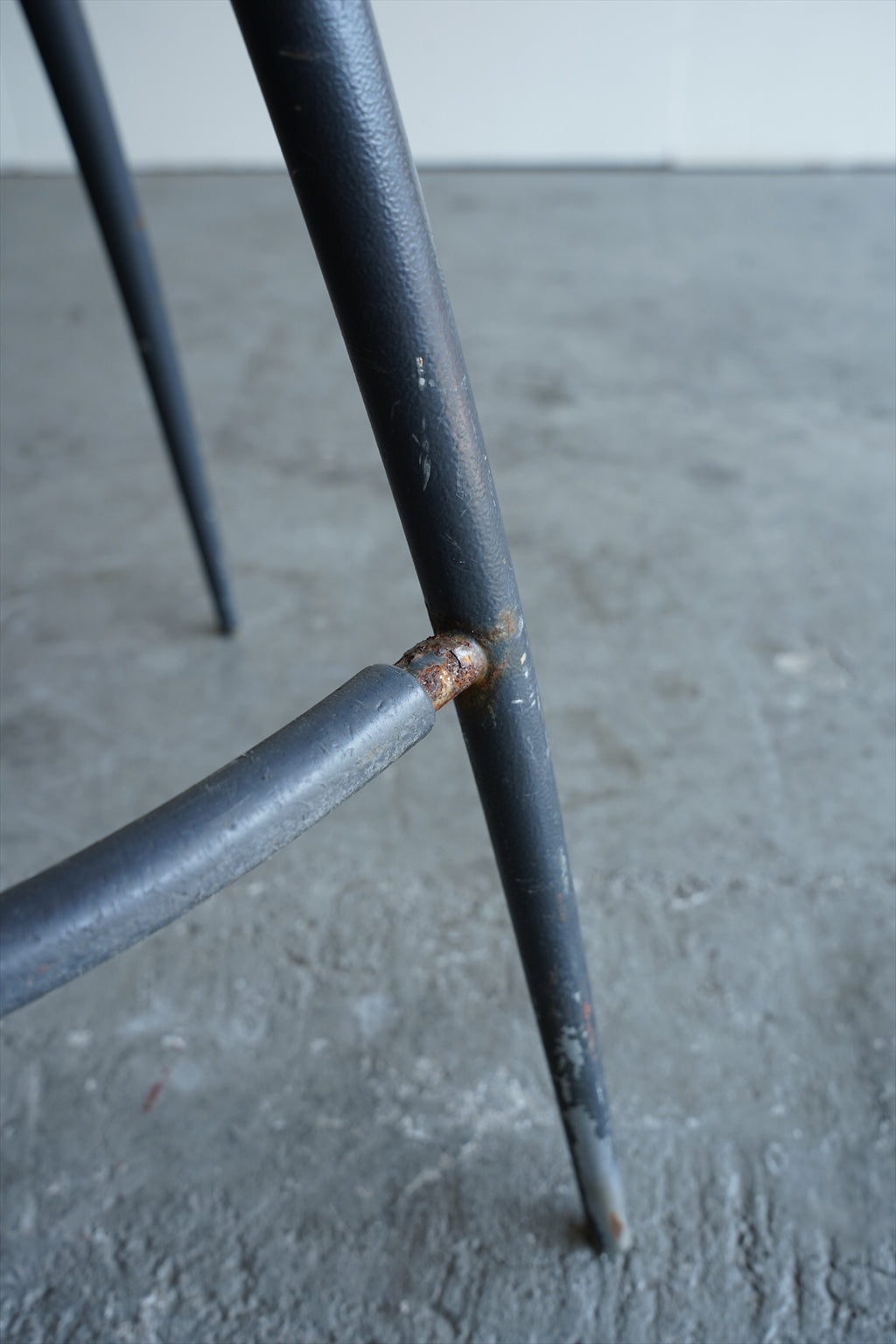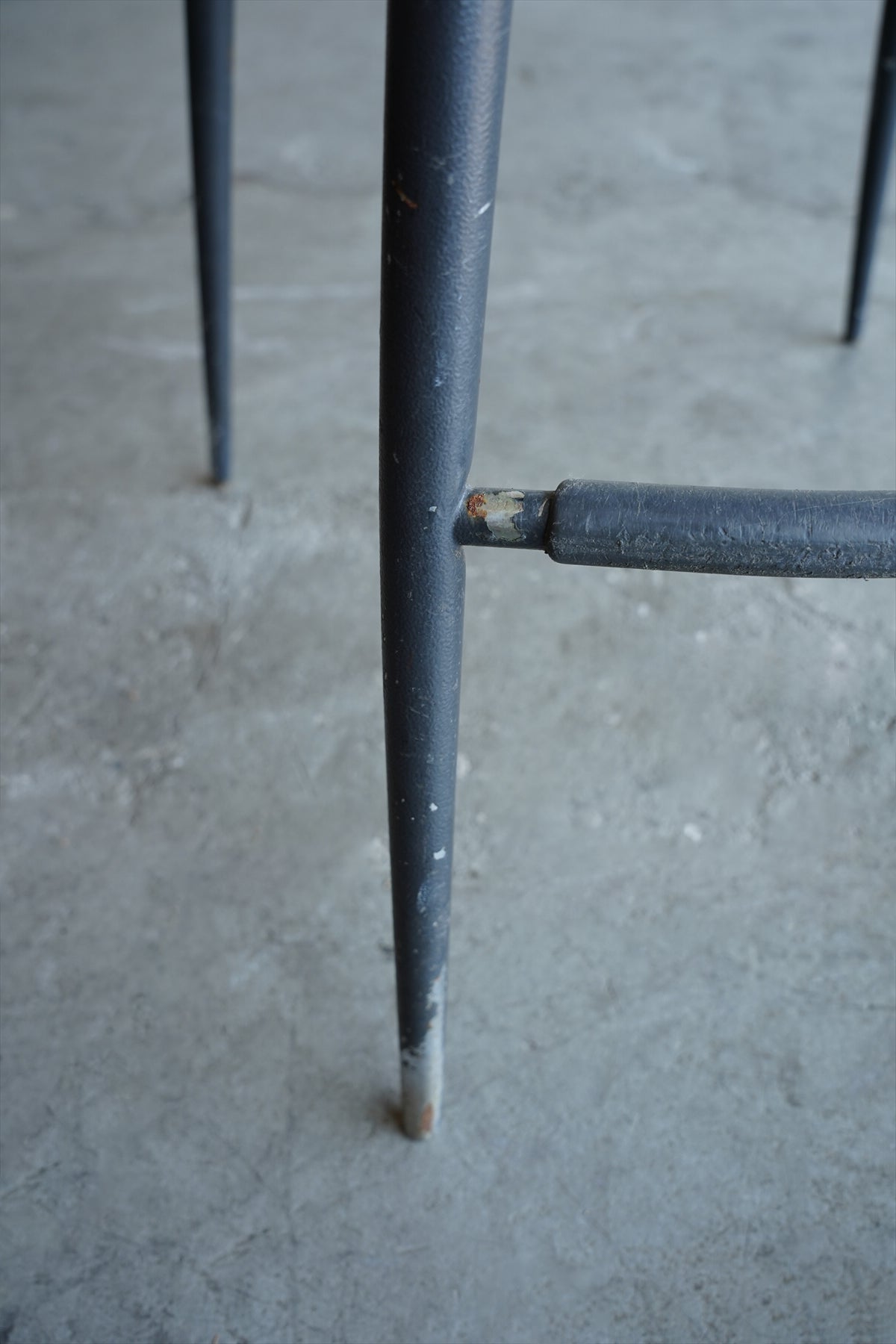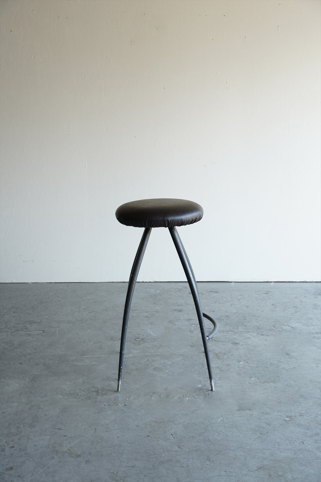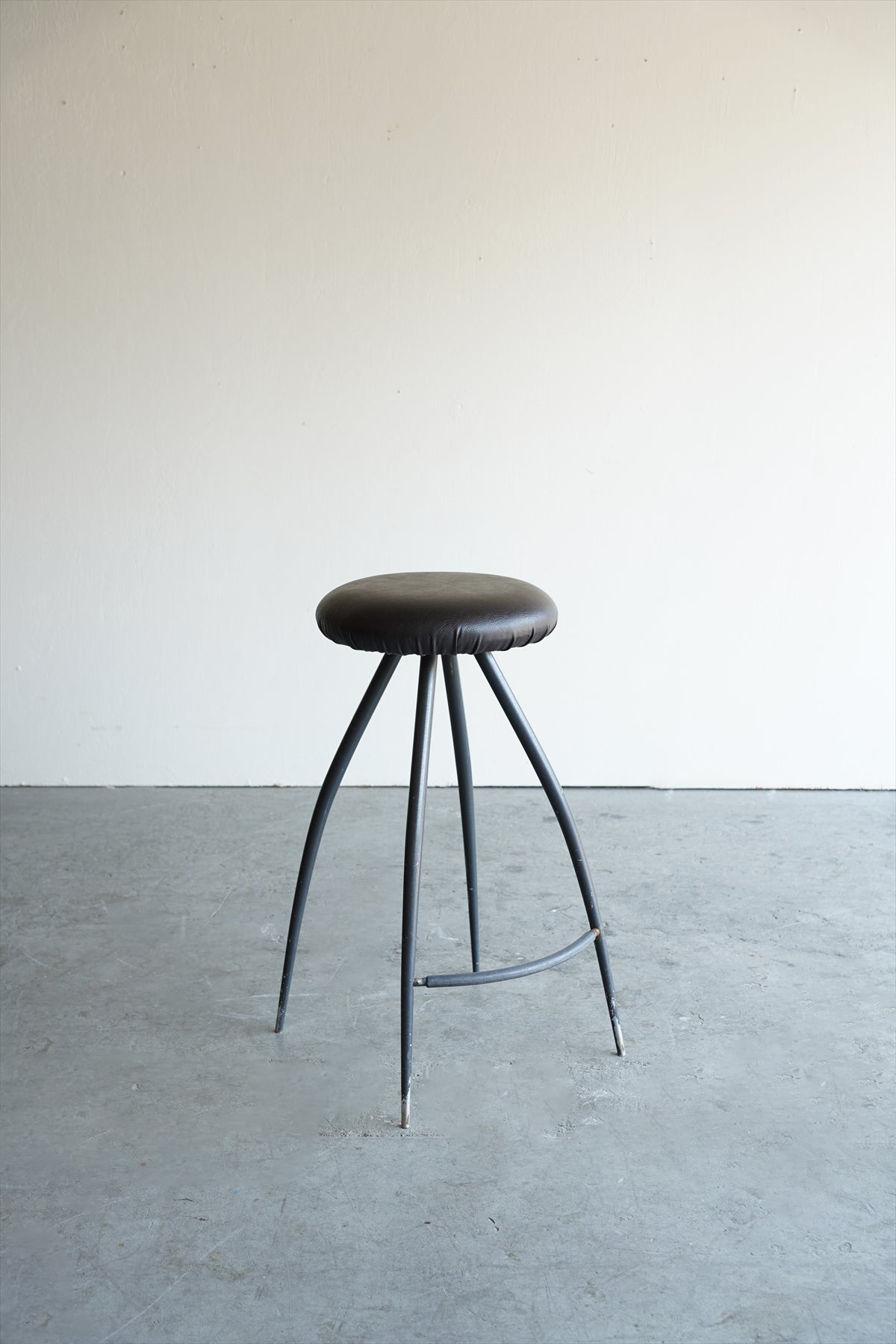 座面にはクッション性のあるブラックレザーが張られており、硬質なスチールのフレームとのコントラストが、デザインの完成度を一層高めています。素材の持つ質感が際立つこのスツールは、カウンターやバーテーブルに合わせるだけでなく、リビングや書斎で、オブジェのように飾っても絵になる一脚です。