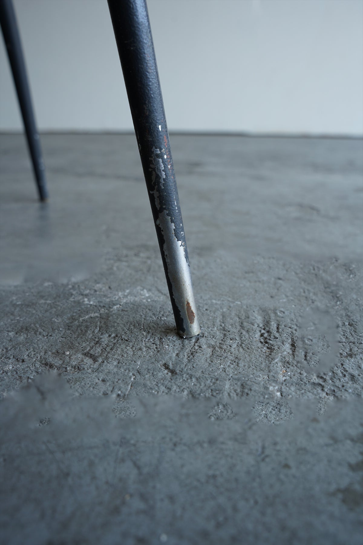 この椅子の最大の魅力は、流れるような曲線を描く4本のスチール製レッグです。中央に向かって絞られ、足元で緩やかに広がるその造形は、見る角度によって様々な表情を見せ、空間に軽やかさとアート性を与えます。