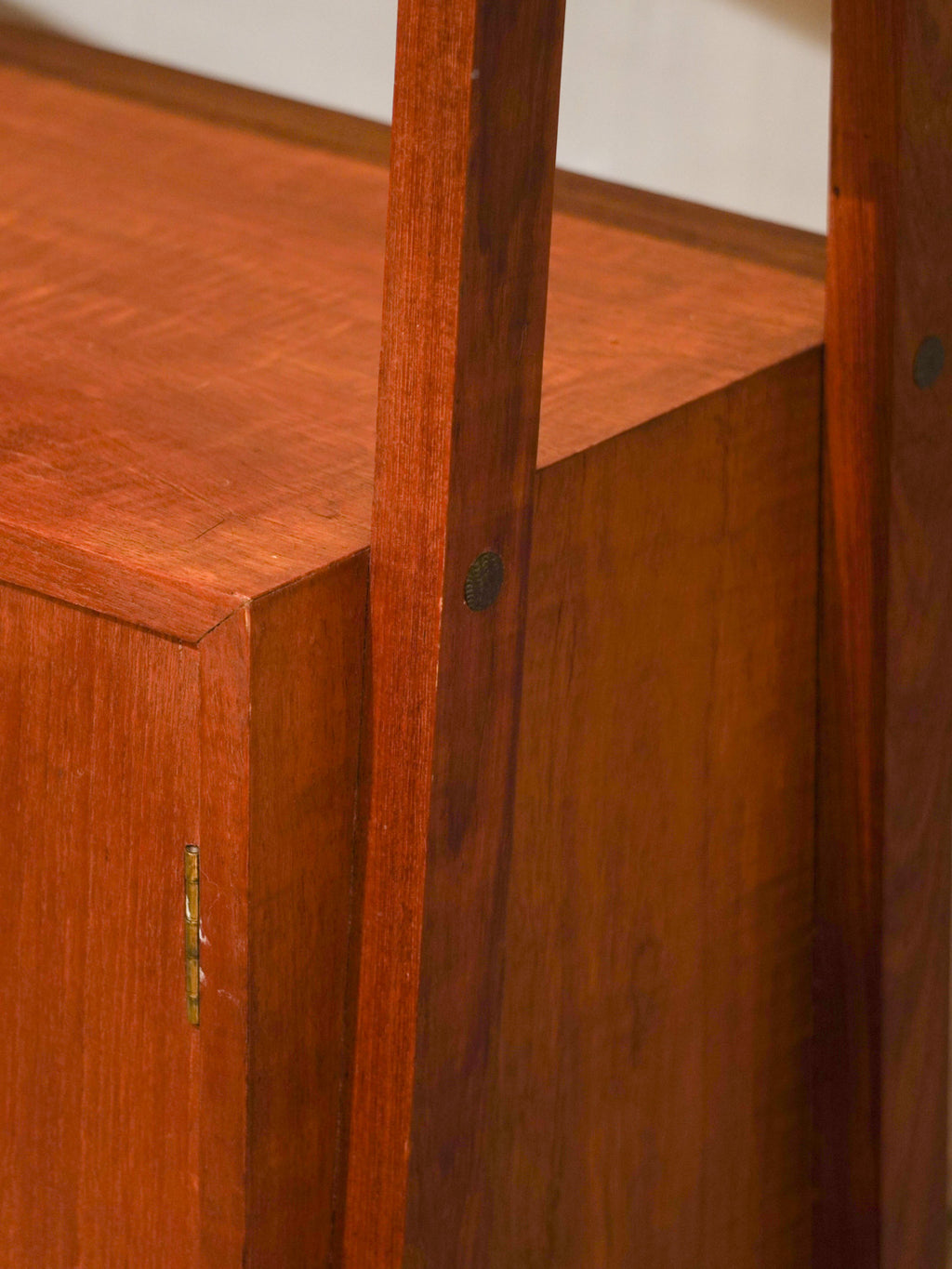 全体は直線的で端正な構成ですが、フレームや棚板、脚部にかけてのアプローチなど単なる収納家具に留まらない造形的な魅力を感じさせます。
