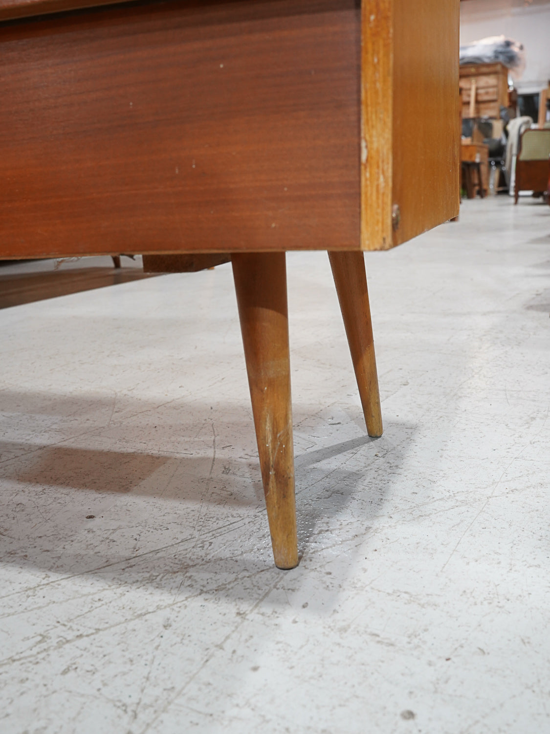 長めのテーパードレッグを採用することで、重厚な収納家具に抜け感をプラス。