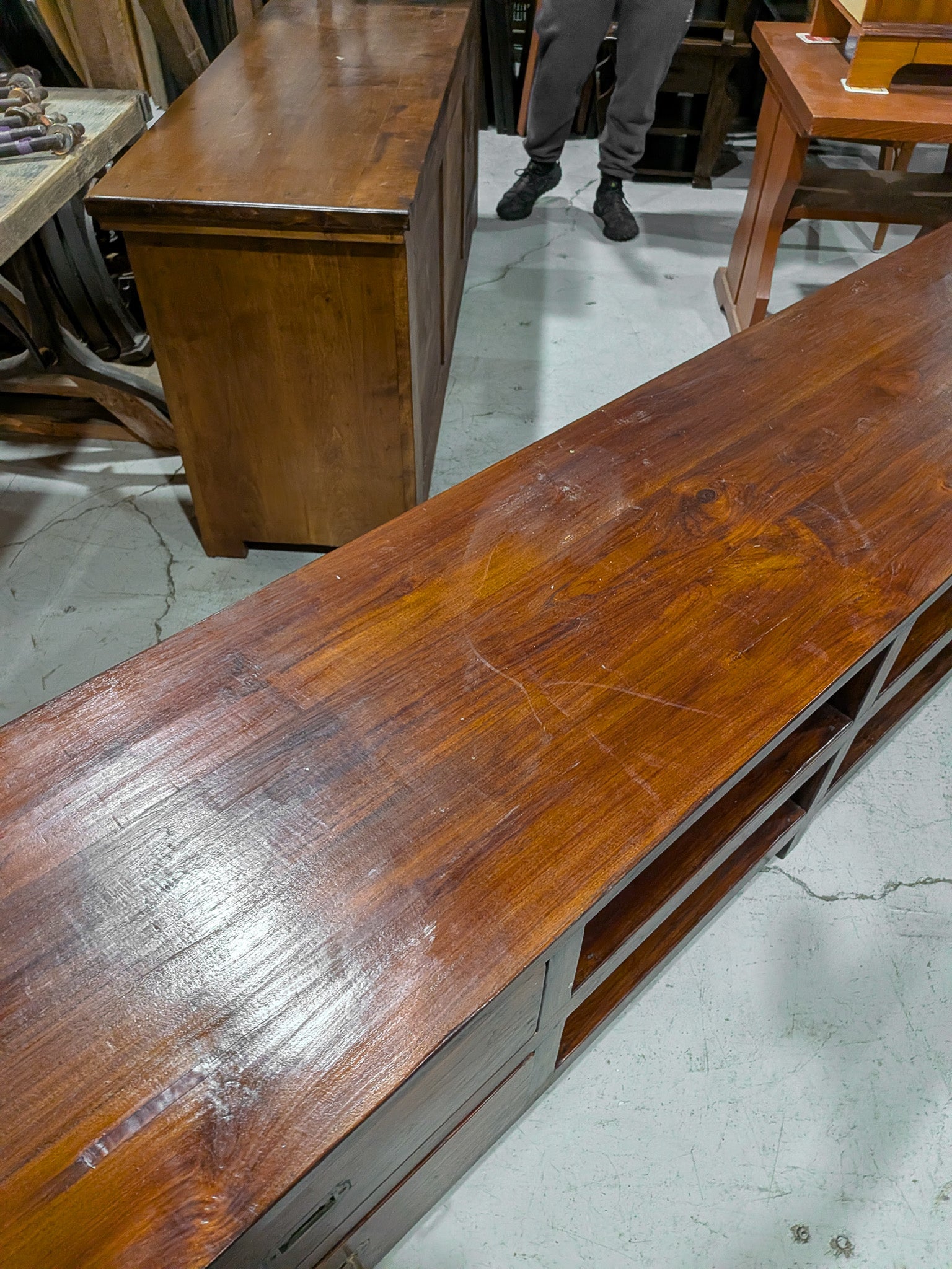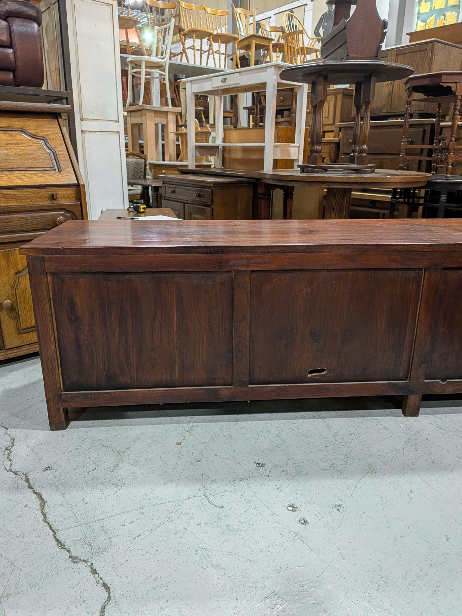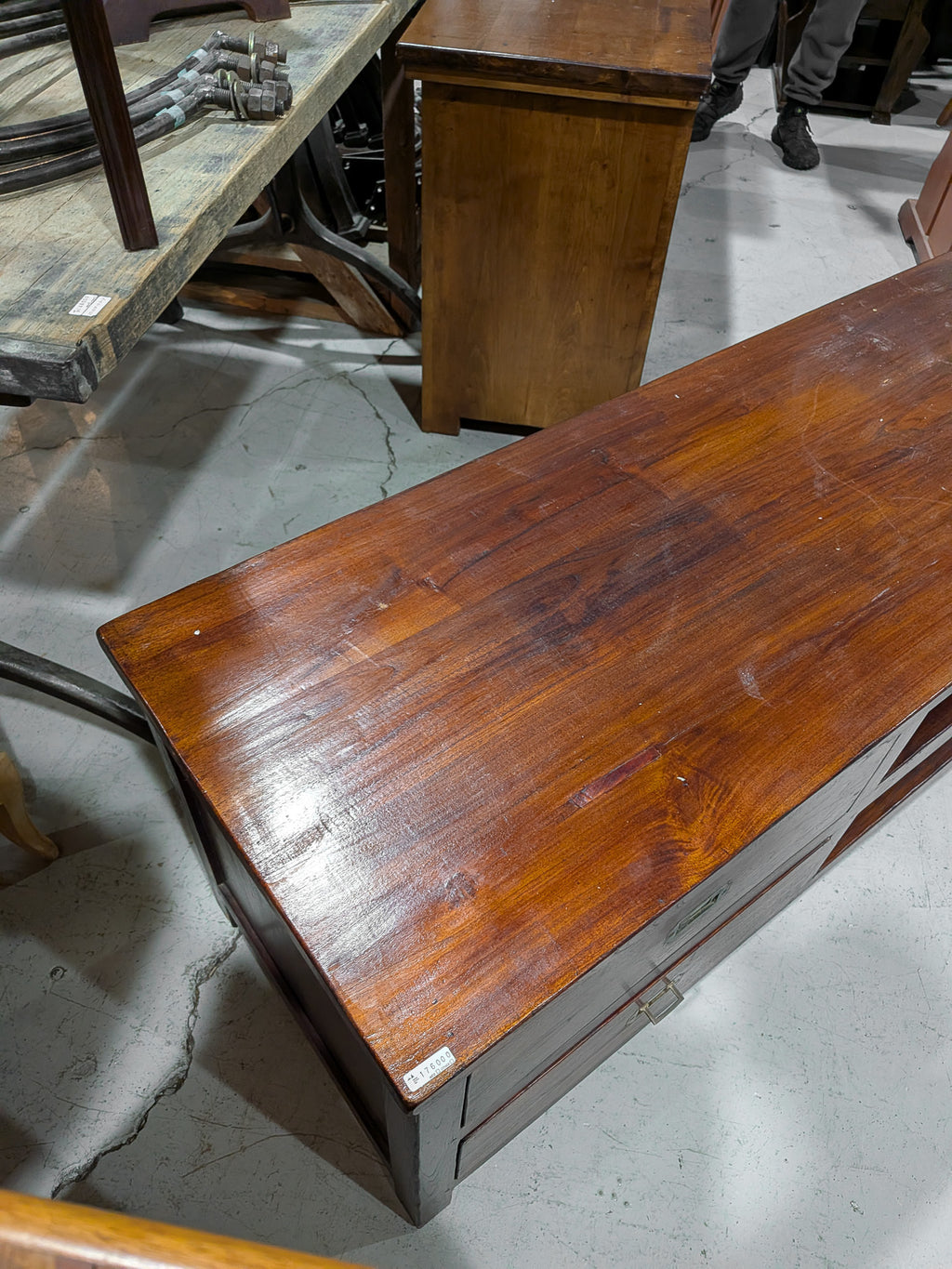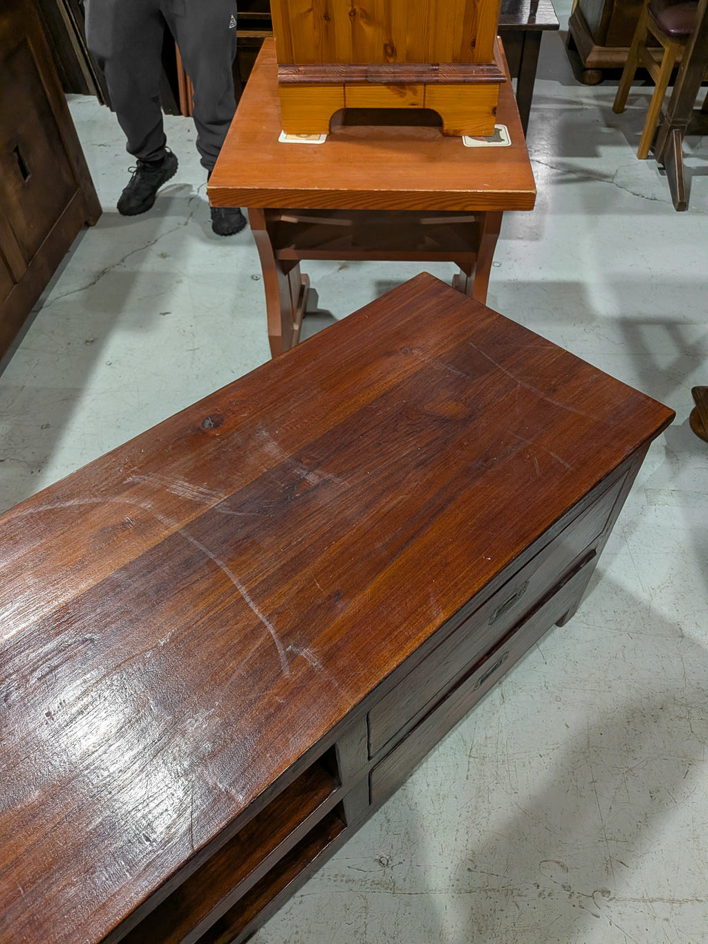 横幅があり、重厚な木肌の風合いが魅力のヴィンテージローボードです。